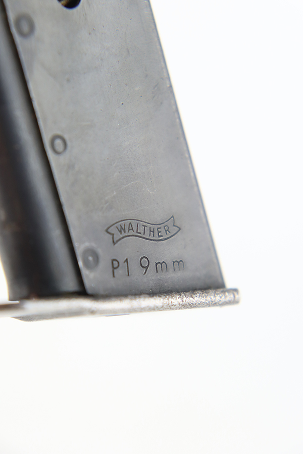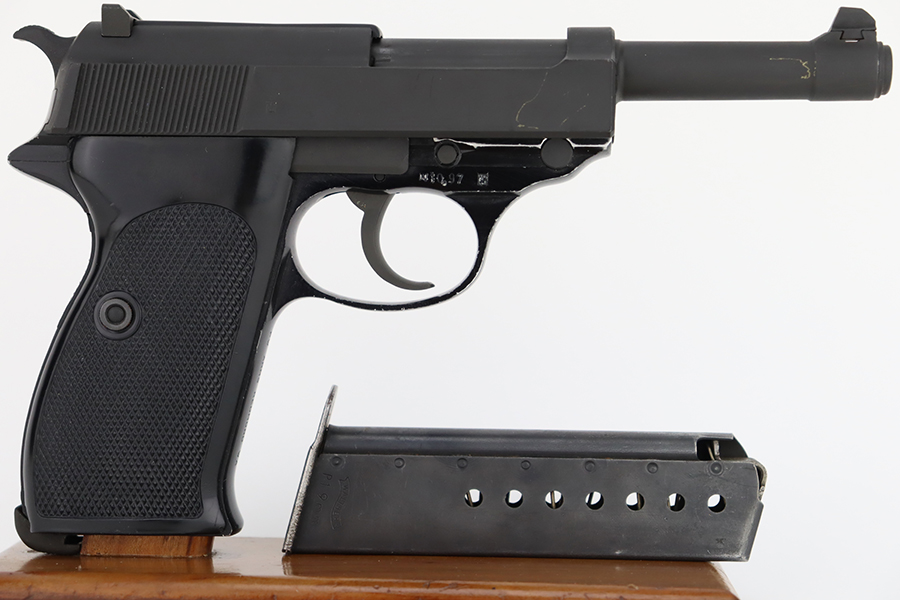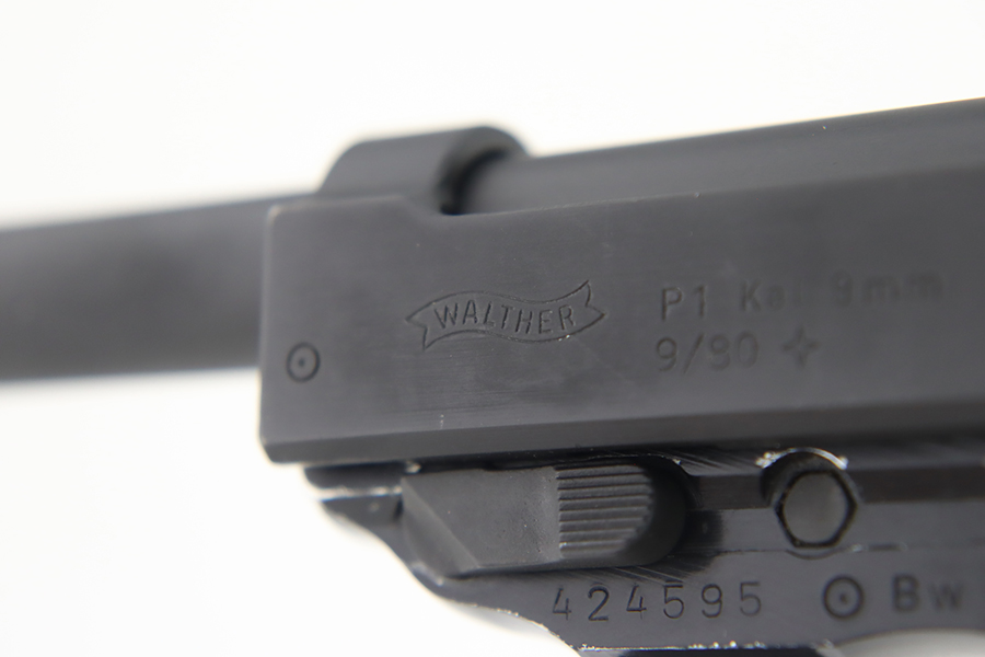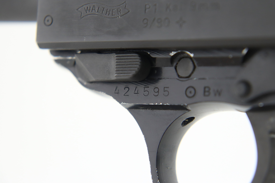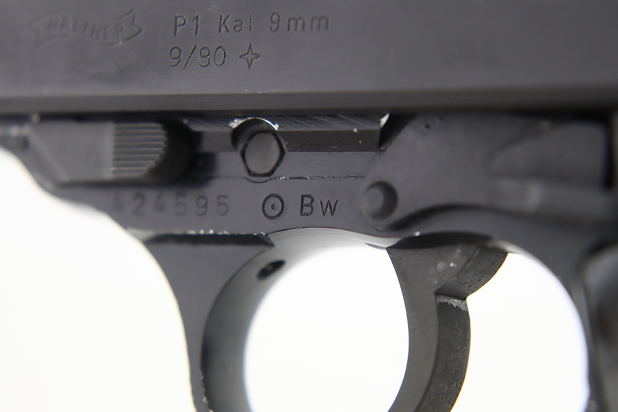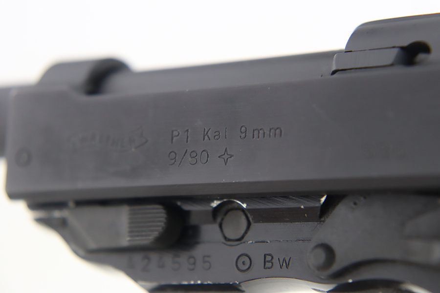 1/31/24 – This is a near-mint example of a Walther P1 manufactured in September of 1980. It is all matching and has the proper West German proofs throughout. There is also a “BW” marking on the left side of the frame, indicating this was issued to the Bundeswehr or West German military. Import mark on the front strap. It has retained nearly all of its finish with just hints of high edge wear on the frame. Excellent black plastic grips – some tiny scratches on the left side. Comes with one proper P1 magazine. Mint bore. De-cocker is functional.