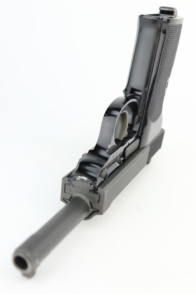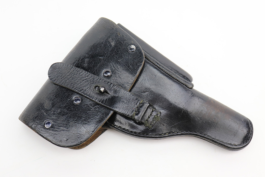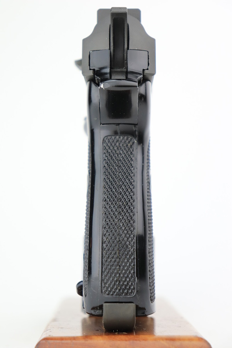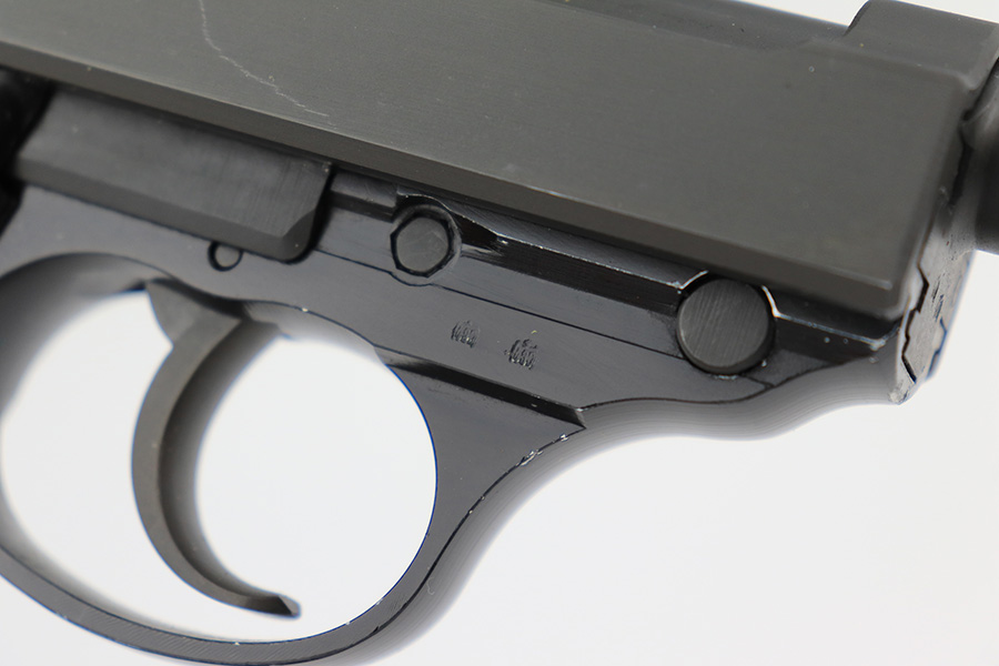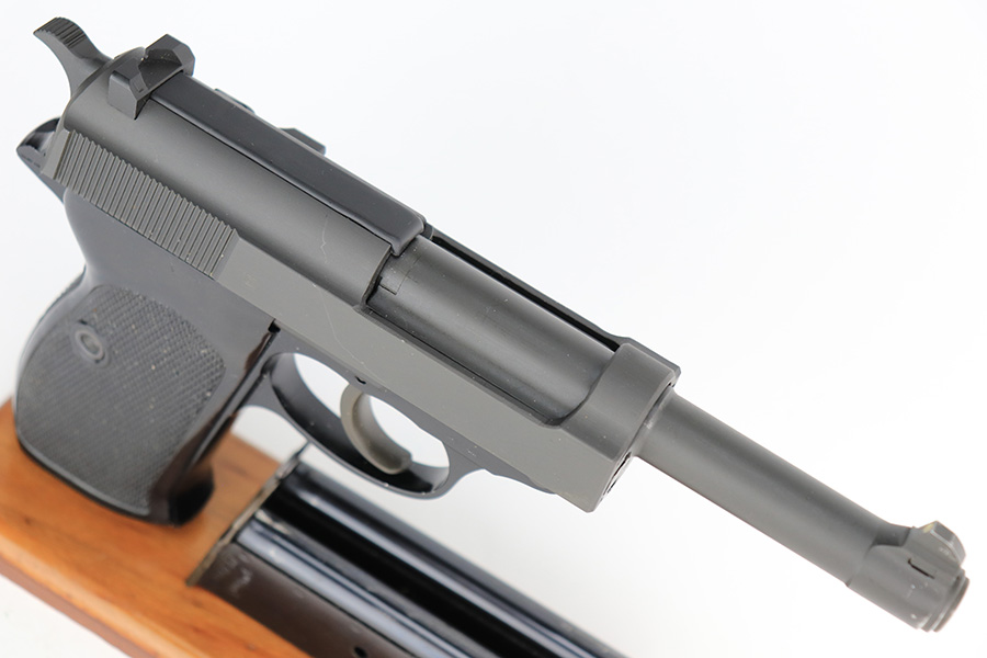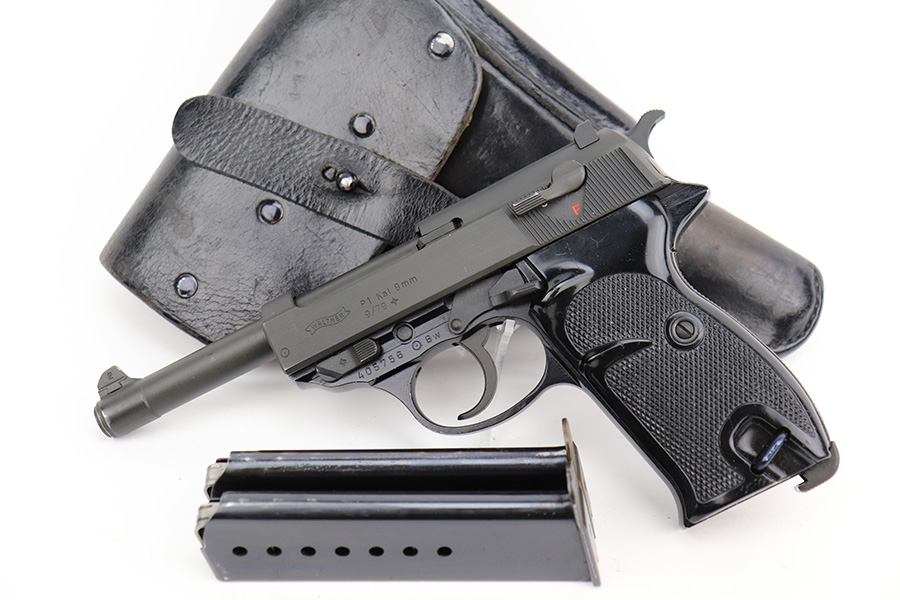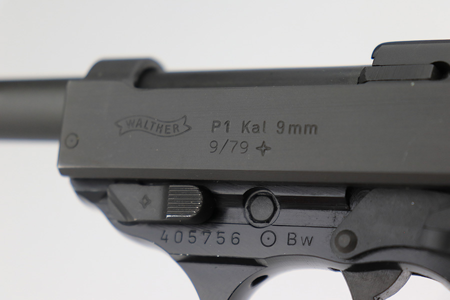 4/24/23 – This is a near-mint example of a Walther P1 manufactured in September of 1979. It is all matching and has the proper West German proofs throughout. There is also a “BW” marking on the left side of the frame, indicating this was issued to the Bundeswehr or West German military. No import marks. It comes as a rig with an excellent 1961-dated holster and two P1 magazines. The gun itself has retained nearly all of its finish with a couple of tiny handling marks on the underside of the frame and one very light scuff on the right side of the slide. Very nice black plastic grips. Mint bore. De-cocker is functional.