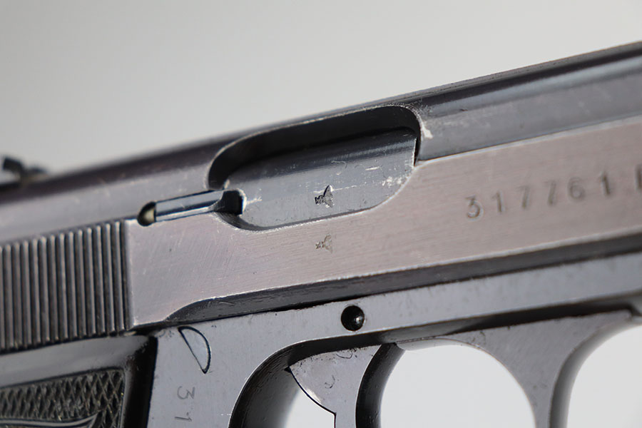 2/8/21 – This is a minty example of a late-war commercial Walther PP, made in about 1944. It is all matching and has the proper “Eagle N” proofs. It has retained about 98% of its original bluing. There is just some very light muzzle wear and light handling marks along the top edges of the slide. It comes with excellent grips and a Walther banner-only magazine. The bore is near-mint.