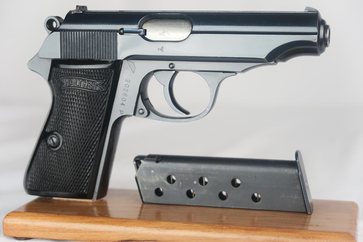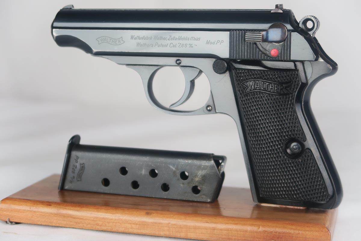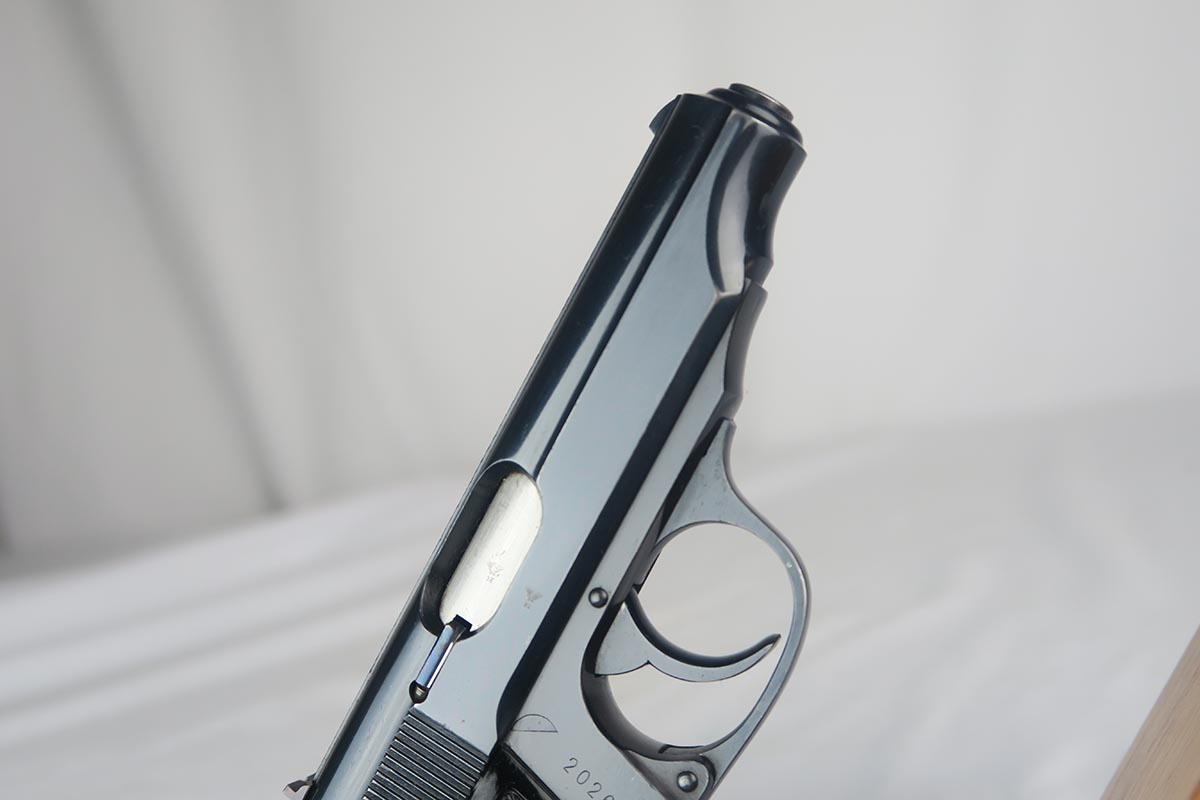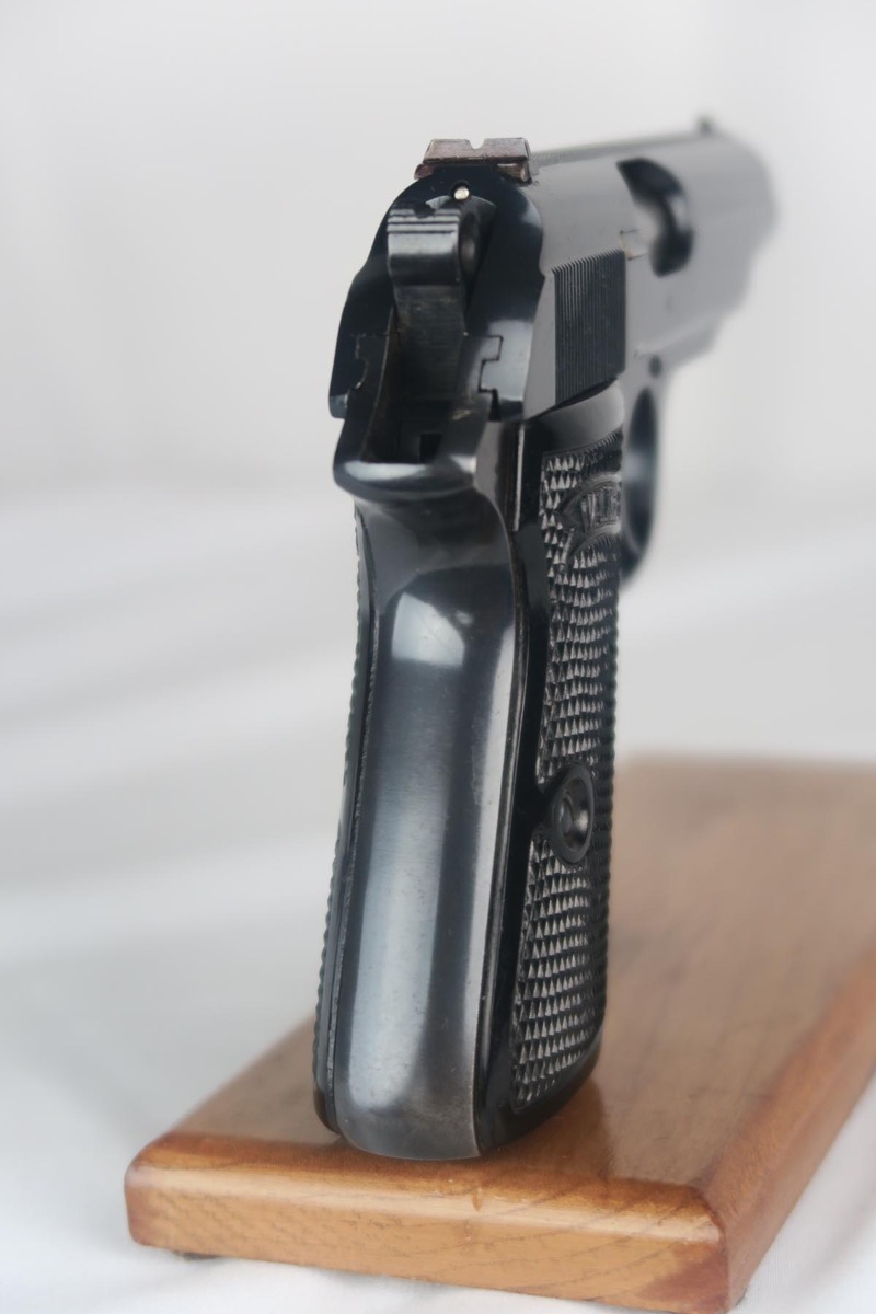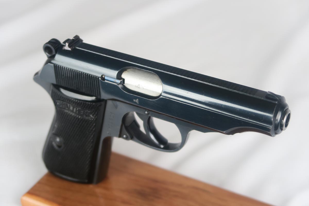 2/6/18 – This is a near-mint Walther PP, manufactured in 1940 with Eagle/N proofs.  The RJ on the front strap is the distinct characteristic and the marking is under the original bluing.  The original finish is about 98%, with some edge/muzzle wear on the slide, and some finish loss on the bottom of the back strap. Minty bore. It has the correct weighted grips and original magazine.  RJ PP’s were issued to the “Reichs Bureau of Justice”, or in other words, the courts, judges, guards, etc.   Probably rarely used other than annual “qualifying trials”.