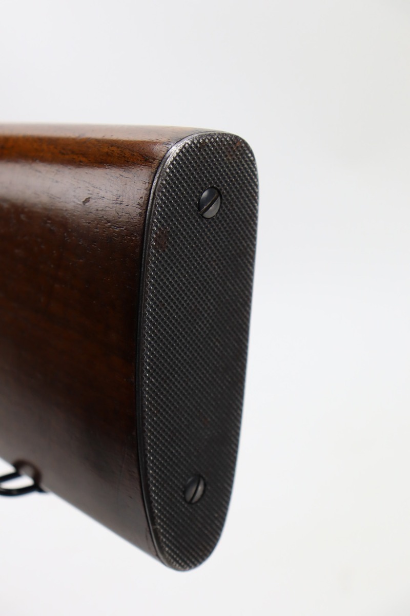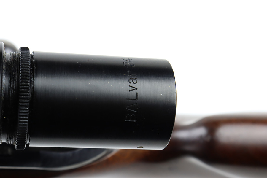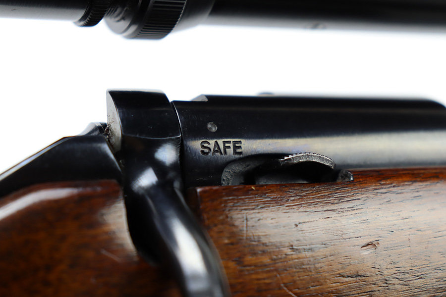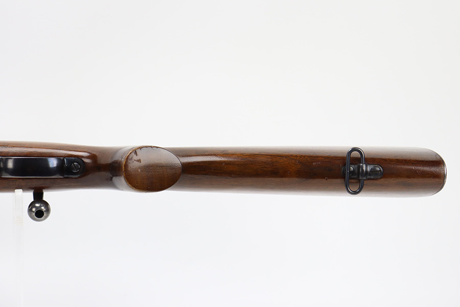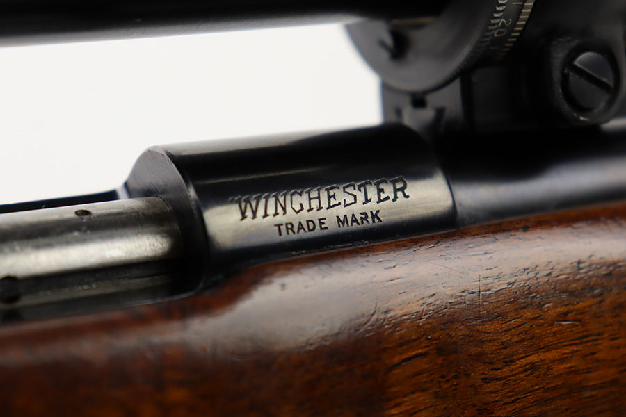 1/3/24 – This is a minty Winchester Model 52 bolt action rifle, manufactured in 1956 and chambered in .22 LR. It comes equipped with an excellent Bausch & Lomb rifle scope – excellent optics. The metal parts have retained virtually all of their finish with just some very light freckling on the trigger group. Very nice wood stock with just very light handling marks throughout. Mint bore.