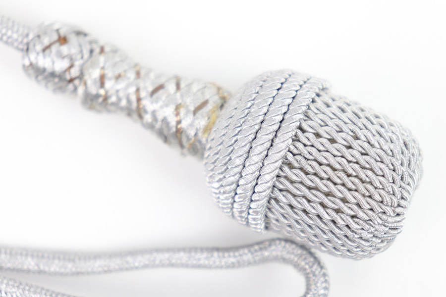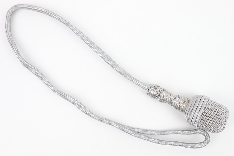 1/20/23 – This is an original WW2 German Dagger Portepee. The portepee has excellent silver colored finish throughout the chord. The base and beginning of the knot has some very mild surface wear and slight discoloration, but there’s almost no fraying whatsoever, and the knot is tight and clean throughout. A beautiful example perfect for a German Army Dagger.