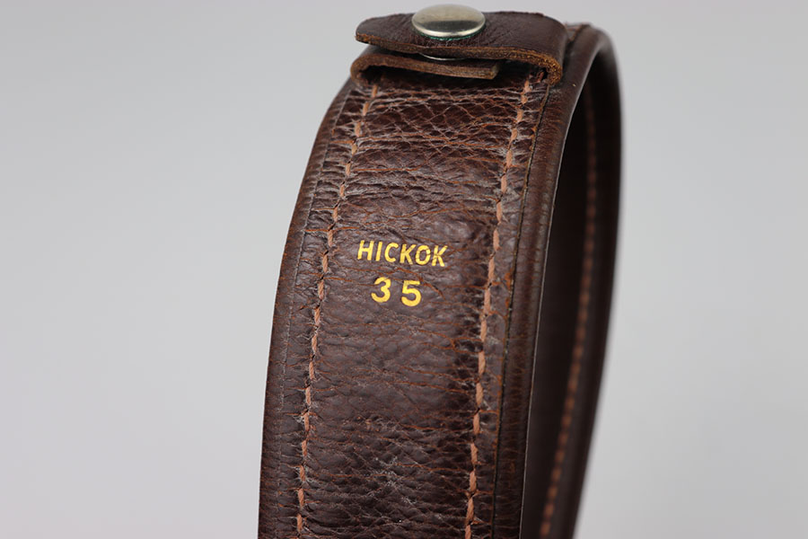 2/25/24 – This is an excellent example of a WW2 US General Officer’s Belt and Buckle. This belt and buckle set is in minty condition with minimal wear making this a rare find! The leather is maker marked “Hickok 35.” The buckle and all the buttons throughout are fully functional. 3 internal belt stays. This is an exceptional piece.