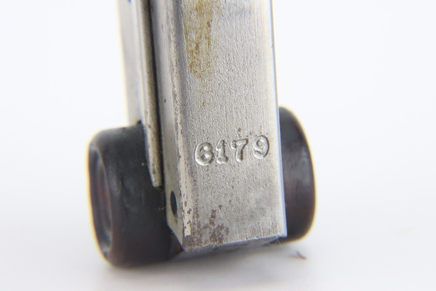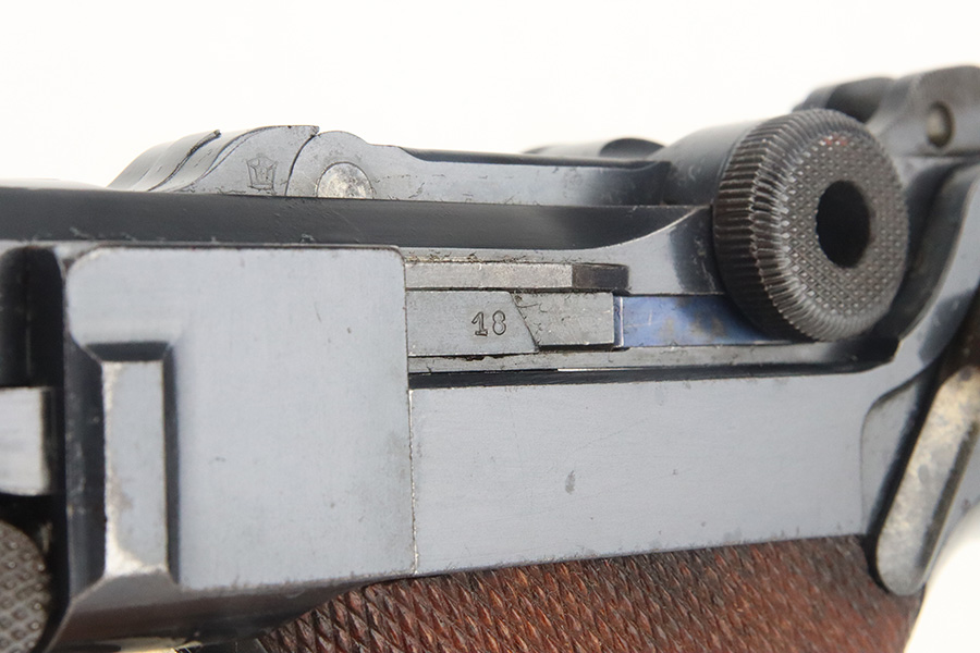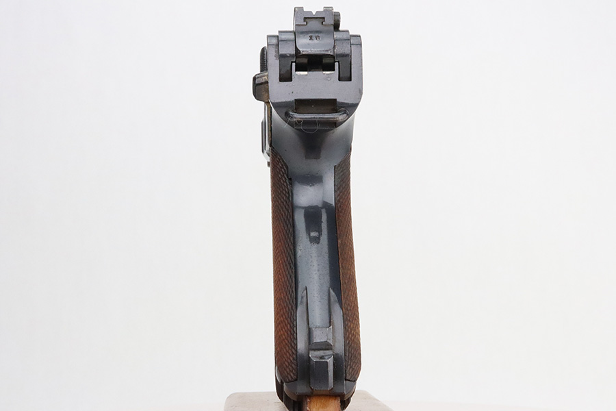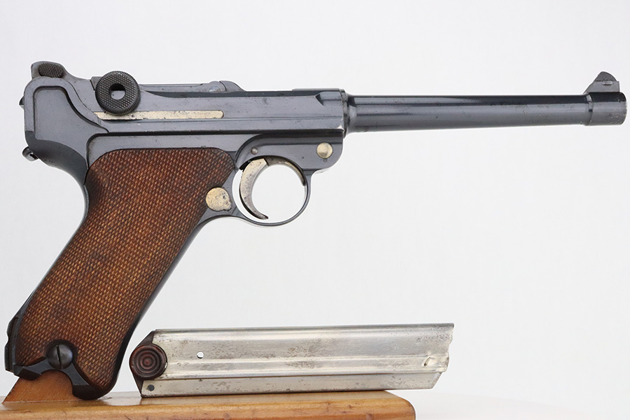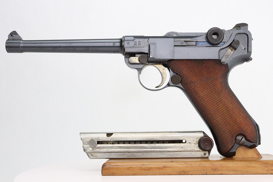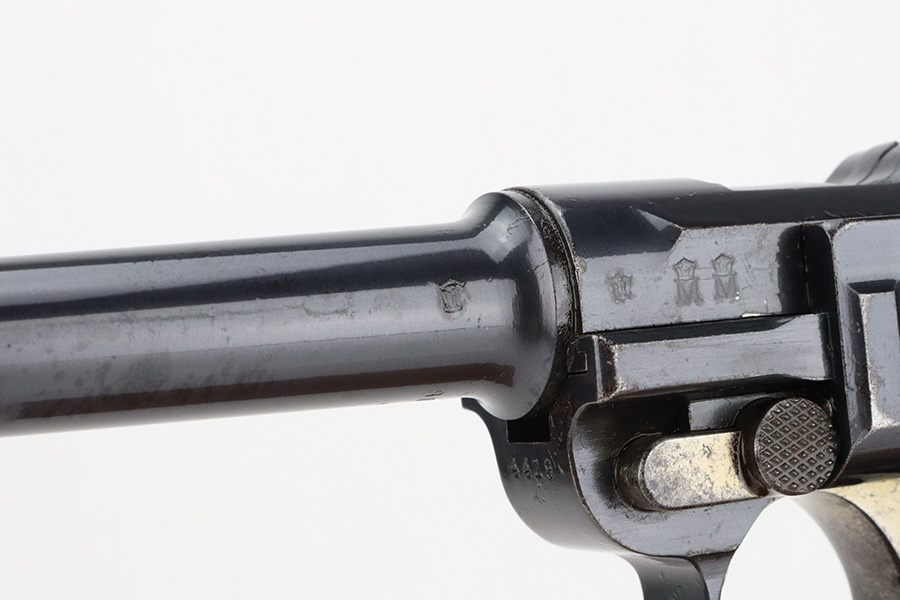 3/7/24 – This is a minty example of a DMM Navy Luger issued to the Imperial German Navy before WWI. It is all matching and has the proper “Crown M” Navy proofs. It has retained nearly all of its original finish, but there are some scratches around the muzzle and on the underside of the barrel and some areas of light freckling on the grip straps and on the underside of the barrel. Fitted with minty matching-numbered wood grips and comes with a mismatched Navy mag. Near-mint bore.