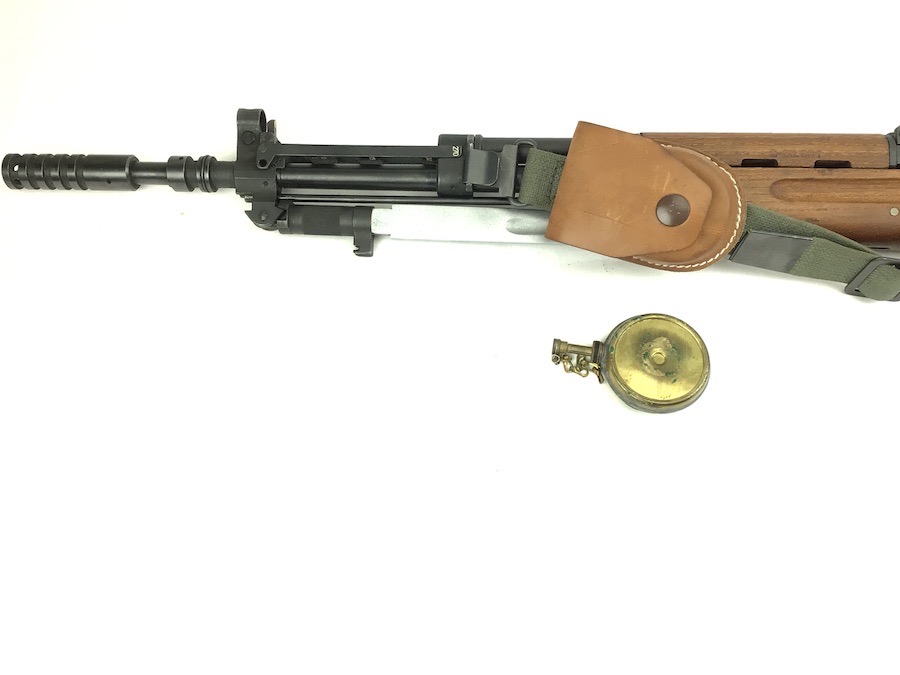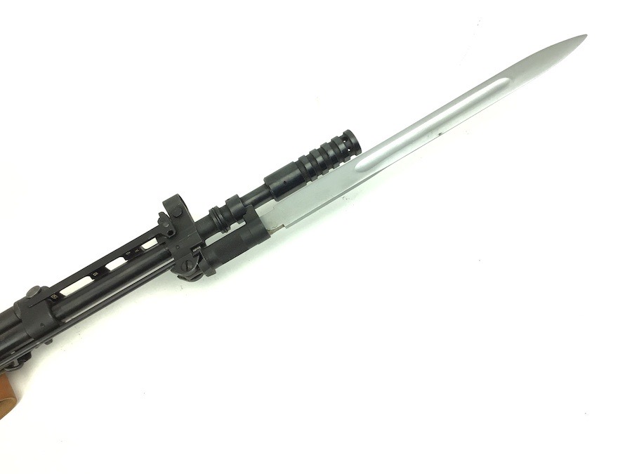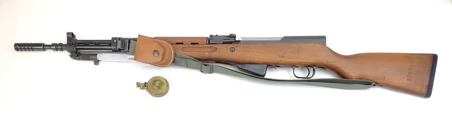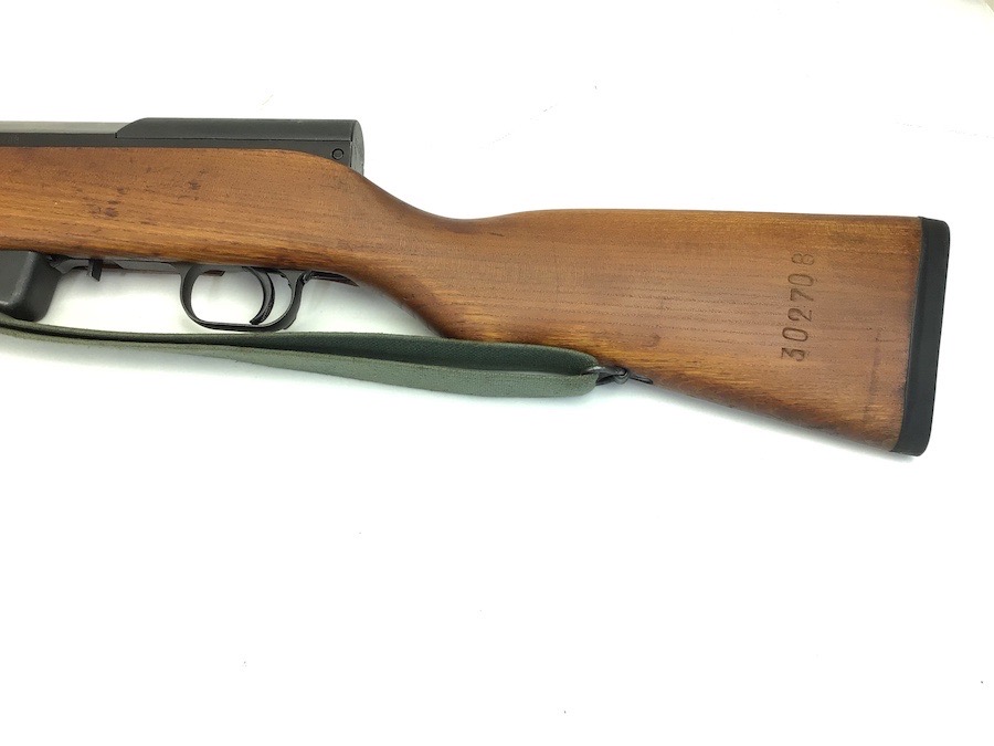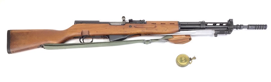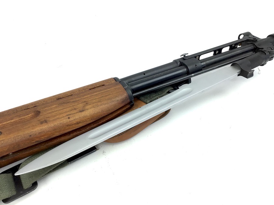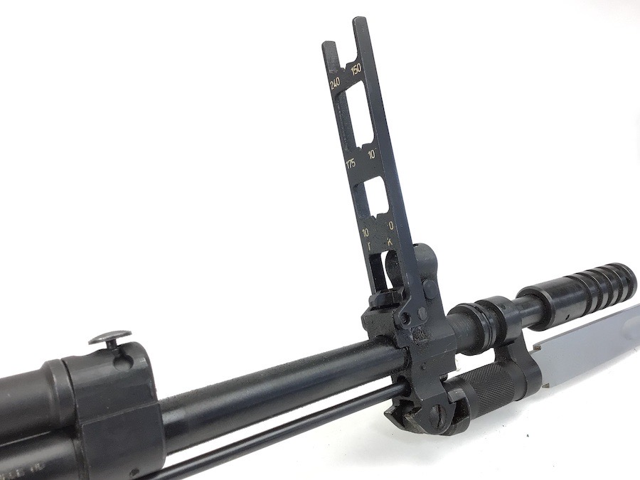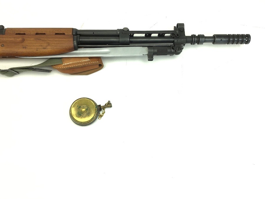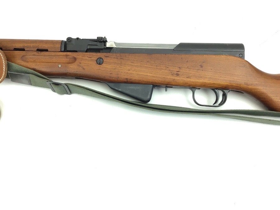 5/11/23 – This is a minty Yugo M59/66 SKS rifle. Matching numbers on magazine, stock, trigger guard, receiver, bolt, etc. Hardly any wear on the metal parts. Clean bore with only minor signs of use and strong rifling. Features a folding style bayonet, leather sling and attached tile with pouch. Also comes fitted with a grenade launcher and a folding, ladder style front sight for aiming and launching grenades. Import mark on the barrel. Excellent stock with no defects.