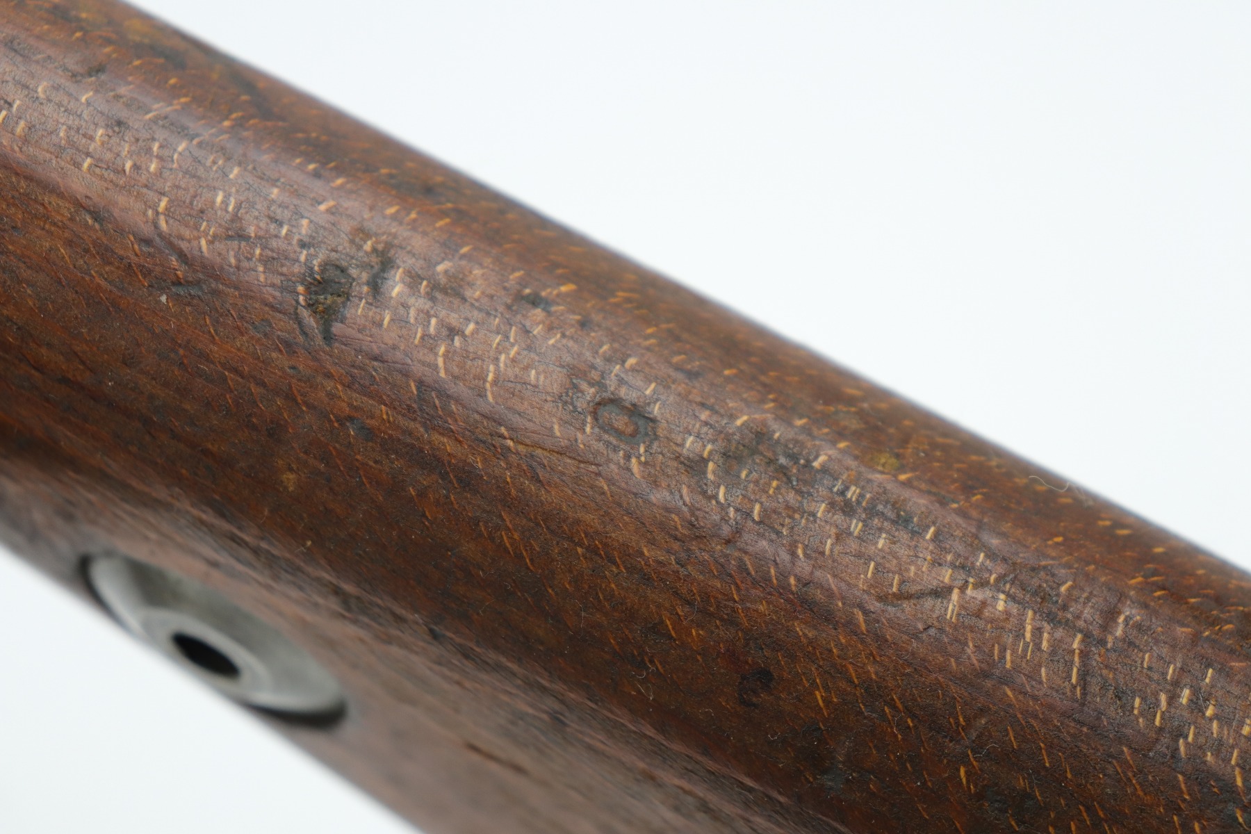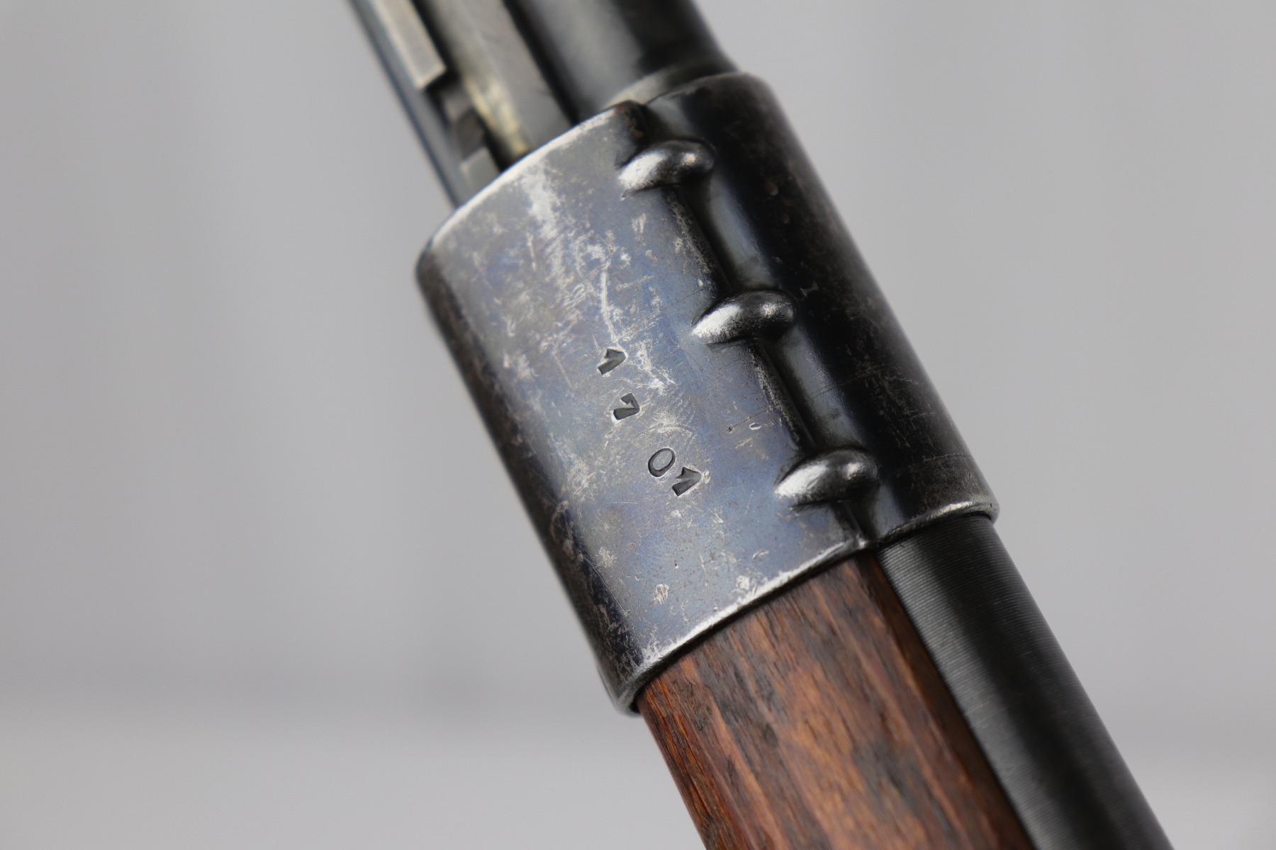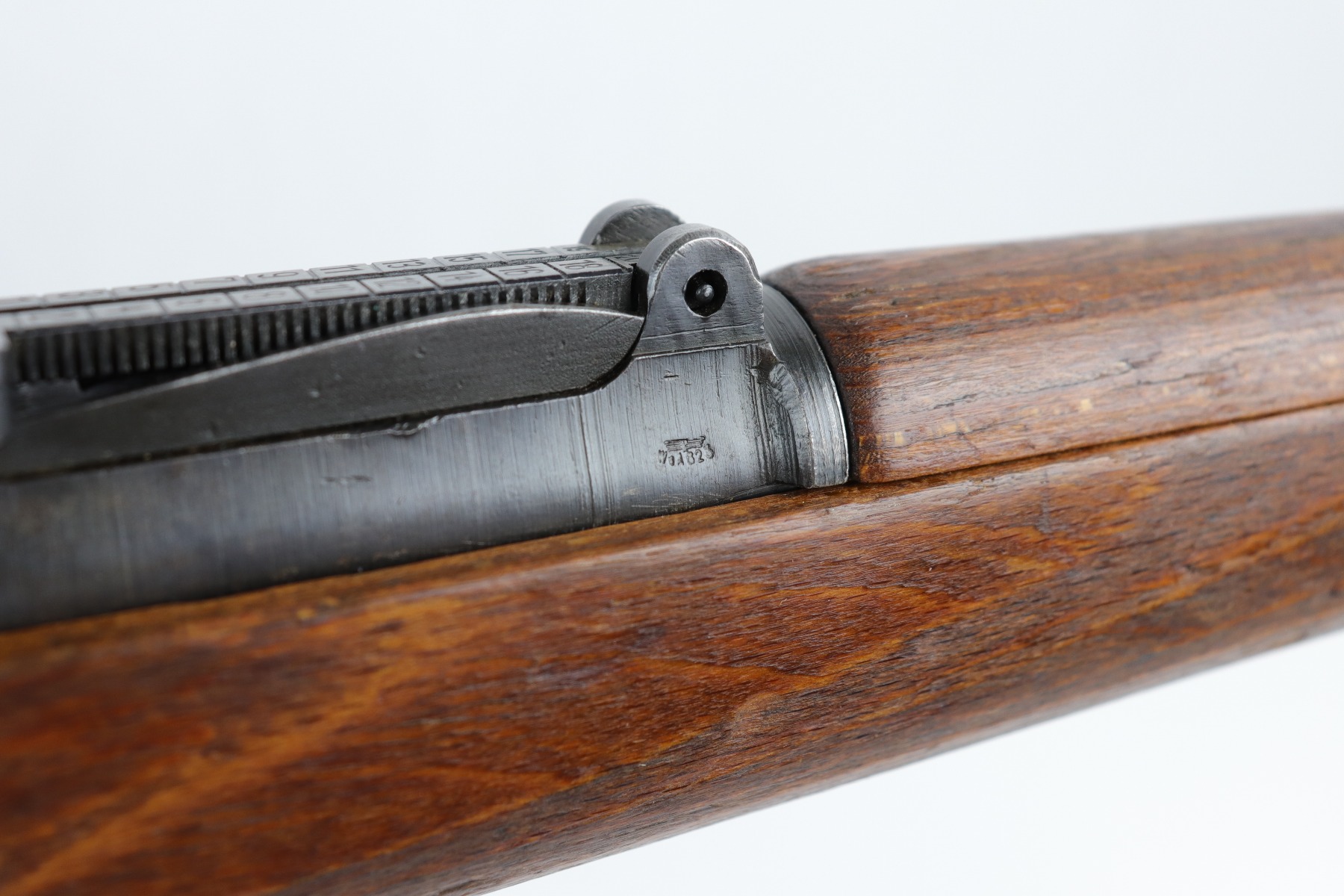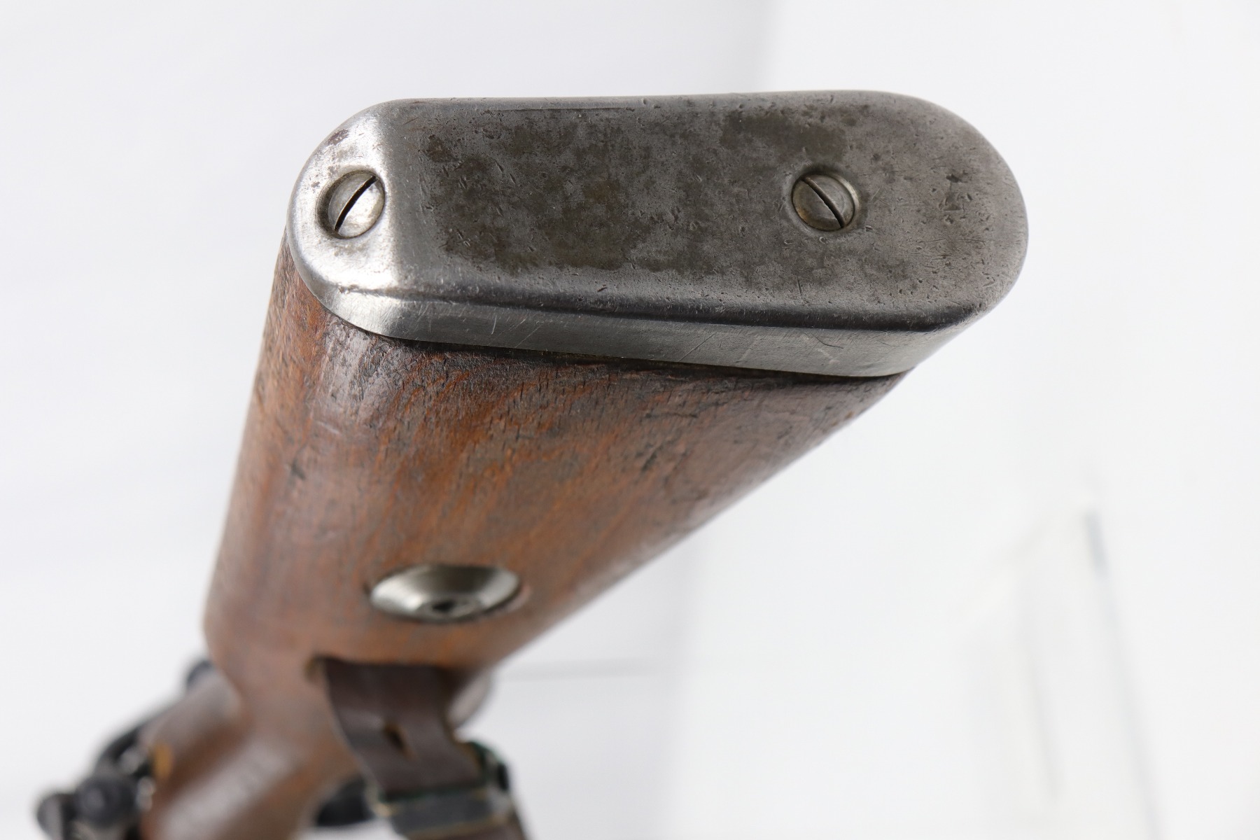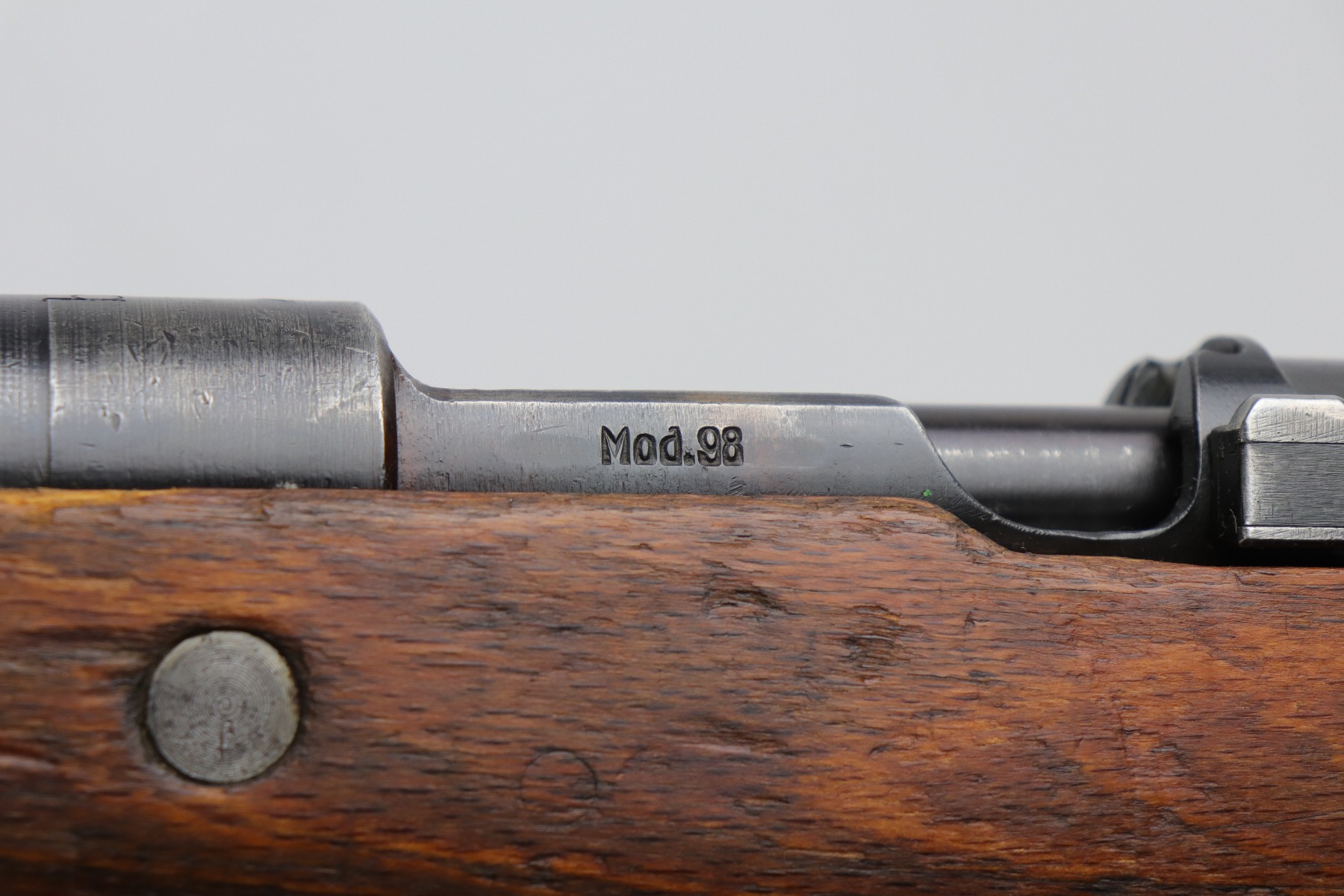 8/1/19 – This is an original BNZ 44 Steyr K98 made during WW2 with mismatched parts. The floorplate and barrel bands match each other, but none of the other parts. The bolt is also mismatched to the receiver. The parts are all WW2 original however, and in good condition. There’s some bluing loss on the metal as well as a few small areas of browning patina, but no excessive wear such as rust or pitting. Comes with an original cleaning rod and a leather strap. The strap looks aged but is not German, as the interior is numbered 2804 – 0252. The wood stock has a very faint waffen eagle stamped on the right side, but there are no other visible markings. Most likely due to sanding. Smooth action and an excellent, near mint bore shows minimal signs of use. Note that the cleaning rod doesn’t screw into place in the rifle, but does stay attached.