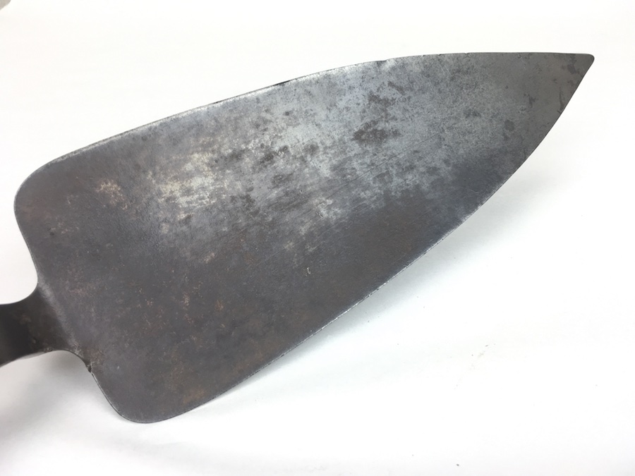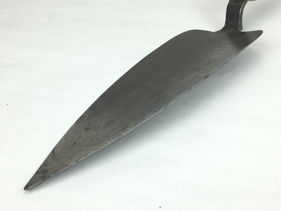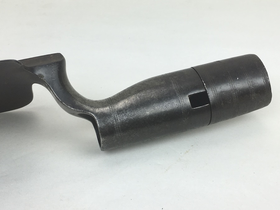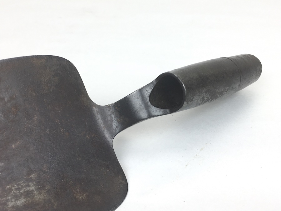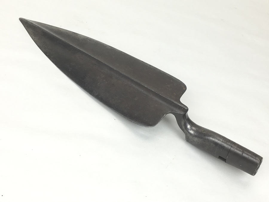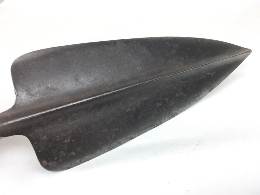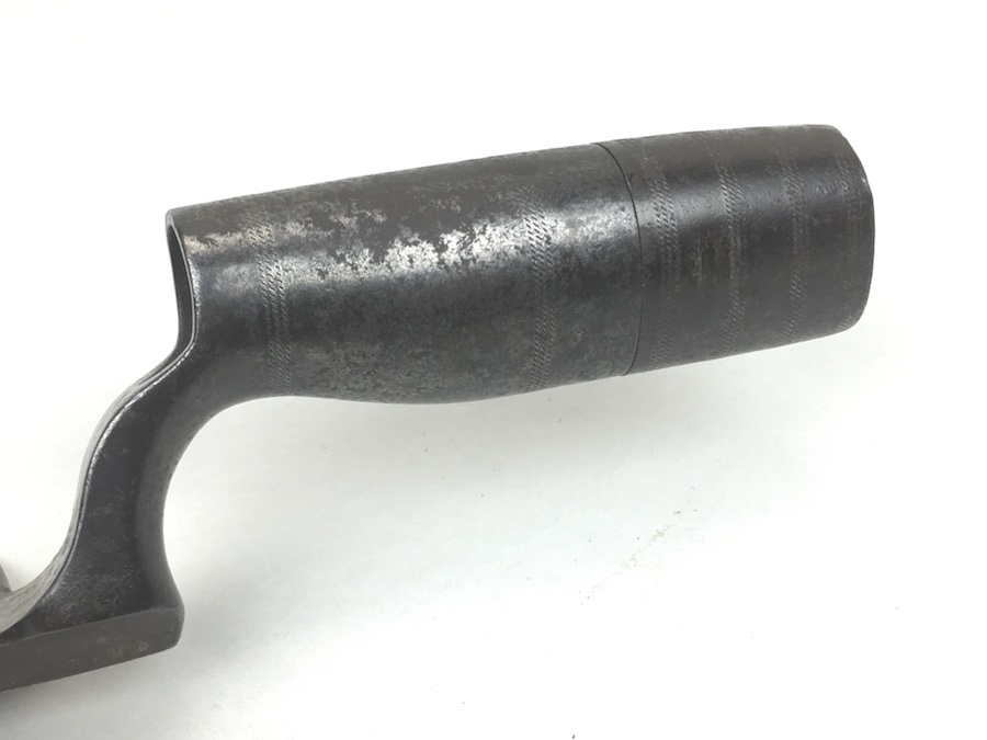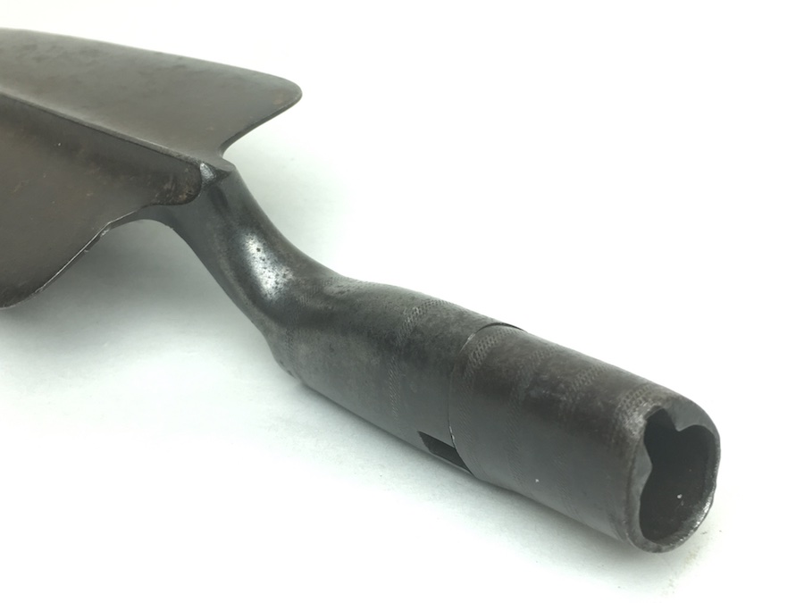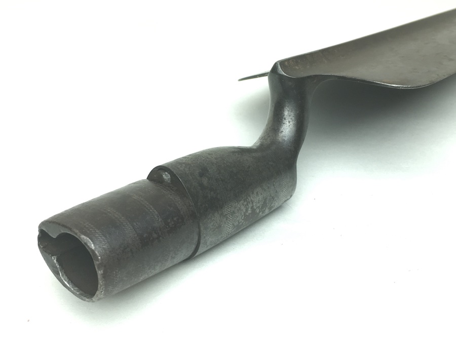 5/26/19 – Original Model 1873 Springfield Trowel Bayonet for the 45/70 Trapdoor Springfield Rifle. Constructed of 100% steel, this socket bayonet was developed to serve double duty as a combat bayonet and an entrenching tool. Nice looking patina throughout. Socket mechanism rotates properly. The blade is 10″ long and 3-3/8″ wide, with a reinforced spine.