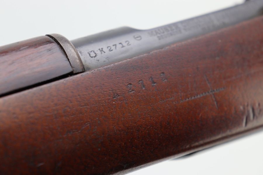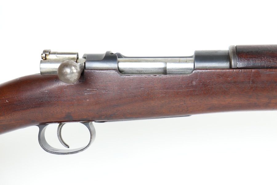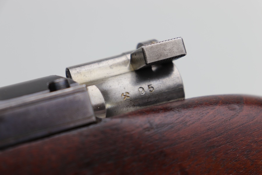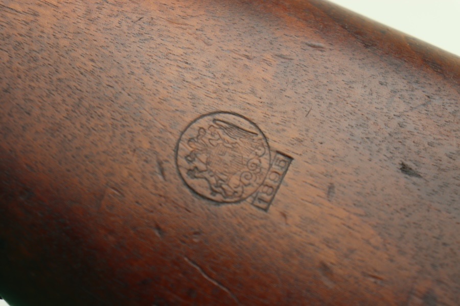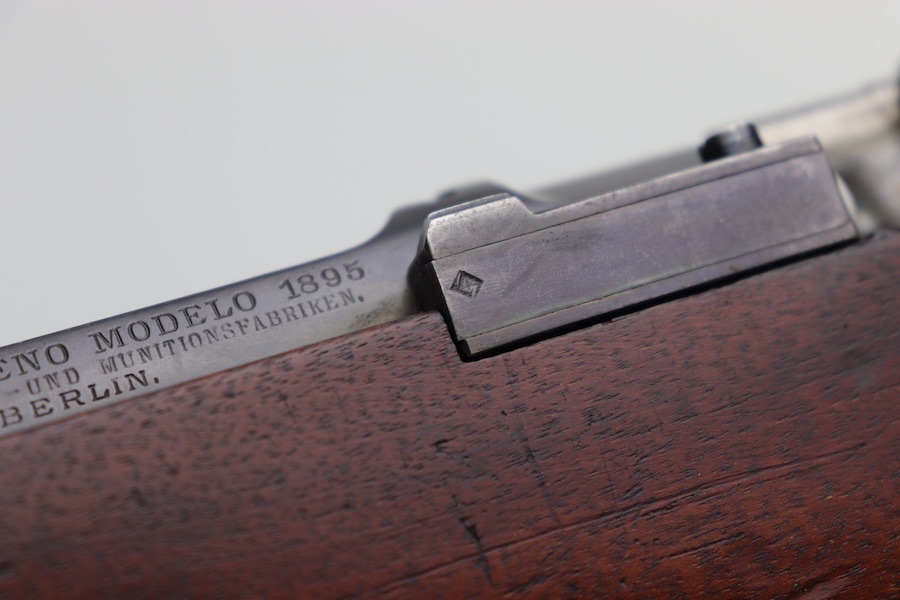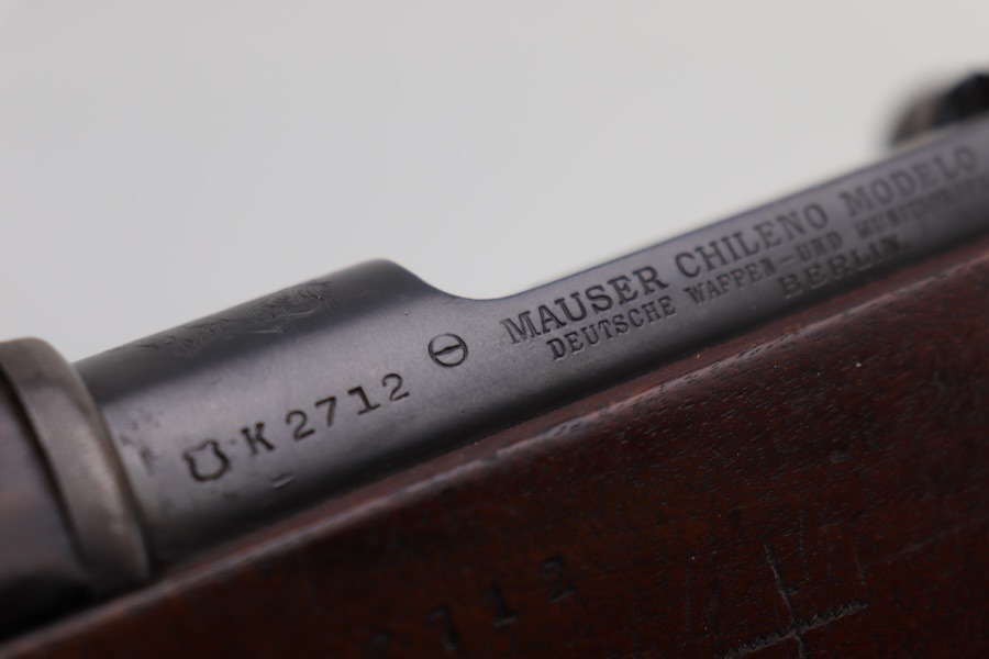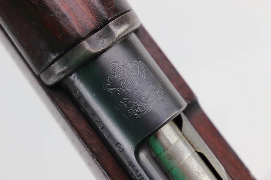 12/8/23 – This is a very nice example of a Chilean Mauser Model 1895 manufactured in the early 1900’s by DWM. The gun is all matching except for one small part at the back of the bolt. The stock is numbered and matching. Small import mark on the underside of the barrel. There are Chilean seals on the chamber and left side of the stock. It comes with a cleaning rod and a Chilean-issued bayonet with scabbard. The cleaning rod is original but not matching to the rifle. Overall, the gun is in very nice condition, retaining most of its finish. We rate around 90-95% overall condition. There is very minor wear around the muzzle. There are areas with tiny dots of oxidation here and there, most noticeable on the bolt. The wood stock is very nice, with only minor dings and scratches throughout. The bore has excellent rifling with minor pin-pricking in the grooves 8.5/10.