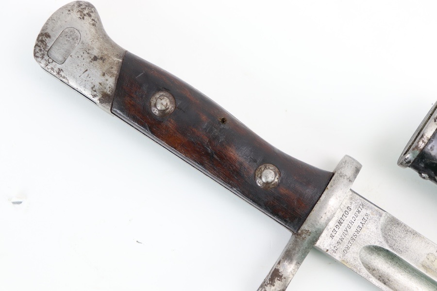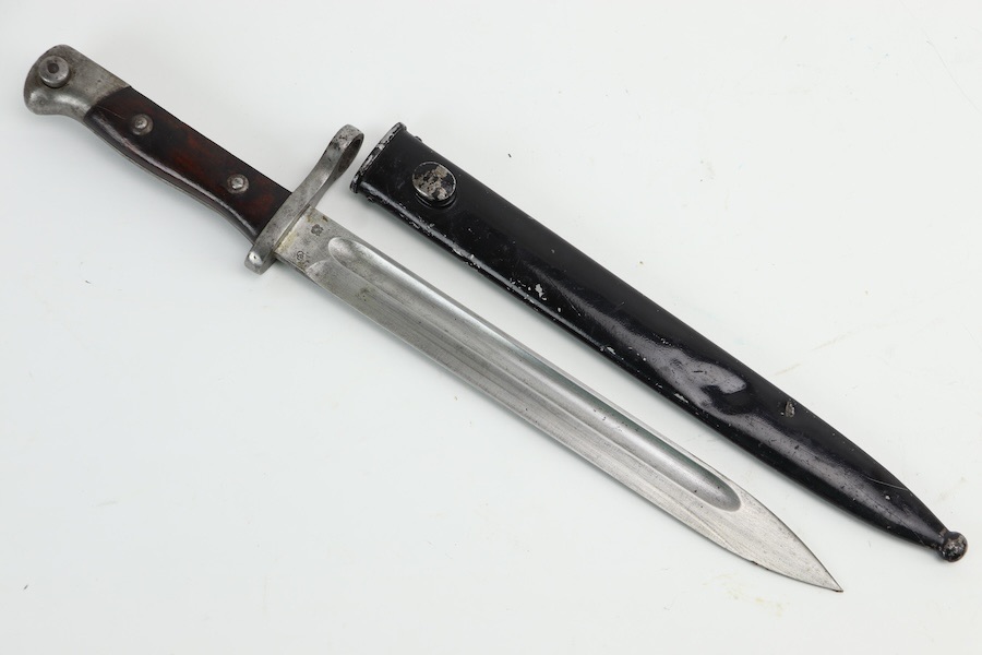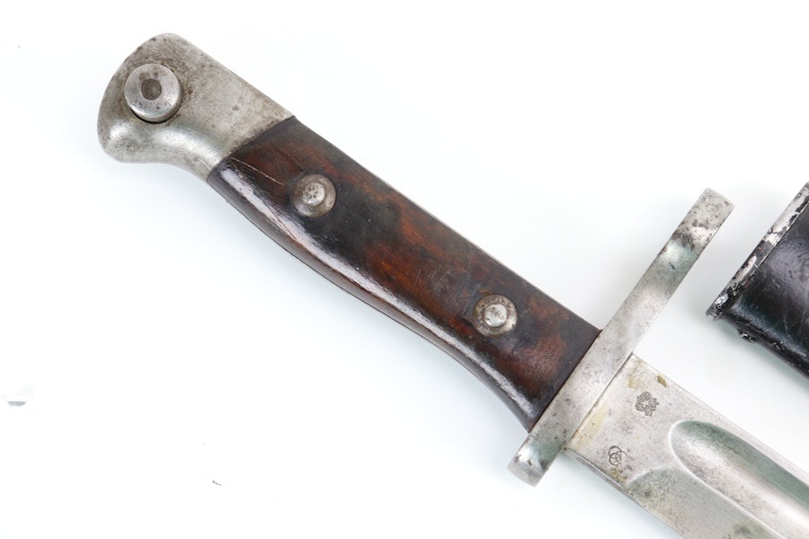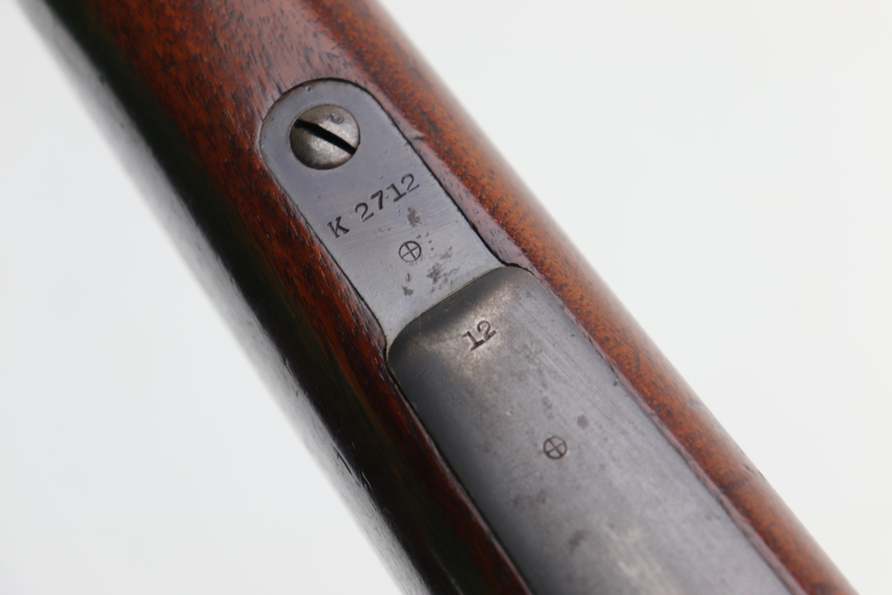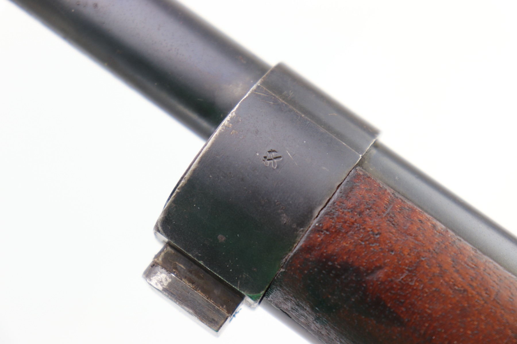 12/8/23 – This is a very nice example of a Chilean Mauser Model 1895 manufactured in the early 1900’s by DWM. The gun is all matching except for one small part at the back of the bolt. The stock is numbered and matching. Small import mark on the underside of the barrel. There are Chilean seals on the chamber and left side of the stock. It comes with a cleaning rod and a Chilean-issued bayonet with scabbard. The cleaning rod is original but not matching to the rifle. Overall, the gun is in very nice condition, retaining most of its finish. We rate around 90-95% overall condition. There is very minor wear around the muzzle. There are areas with tiny dots of oxidation here and there, most noticeable on the bolt. The wood stock is very nice, with only minor dings and scratches throughout. The bore has excellent rifling with minor pin-pricking in the grooves 8.5/10.