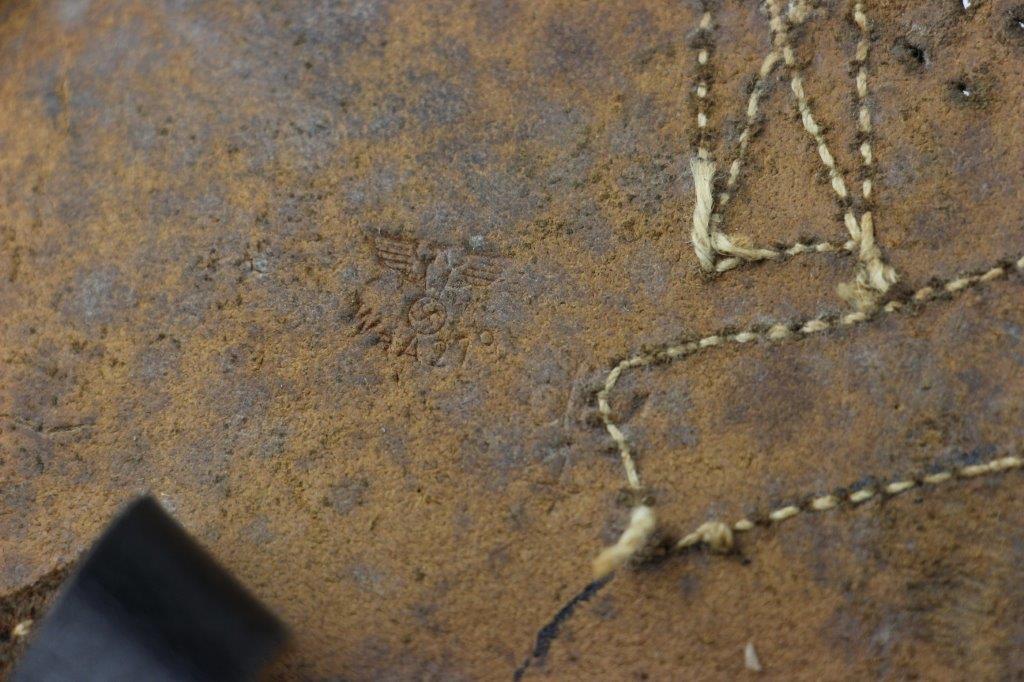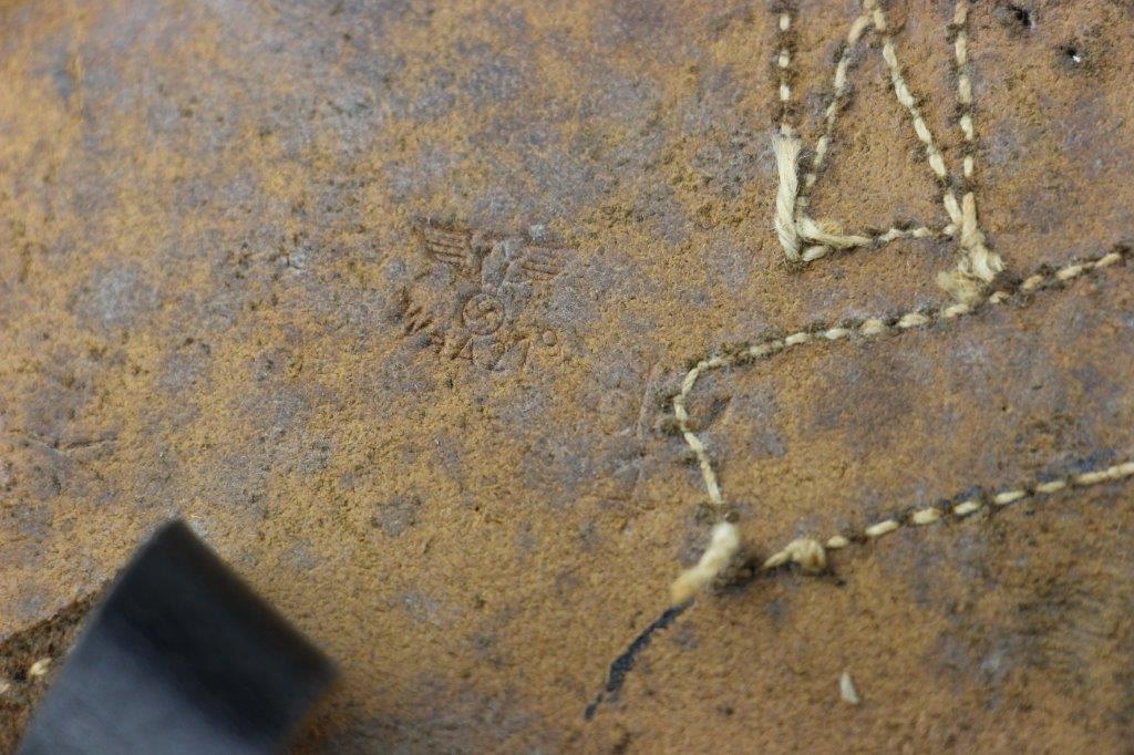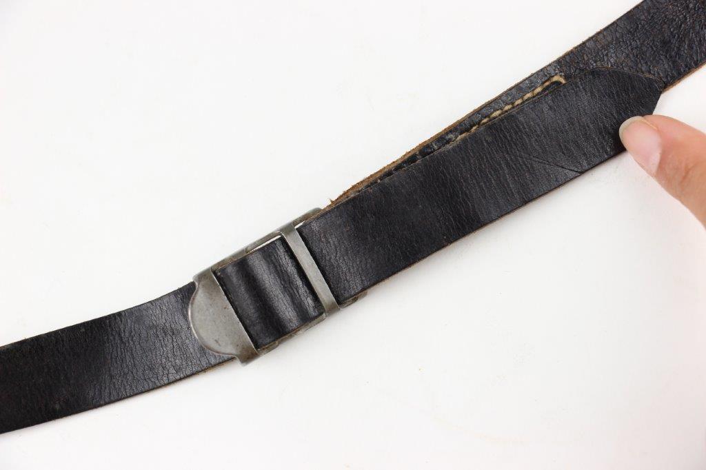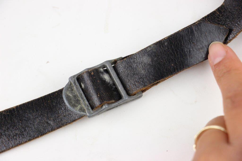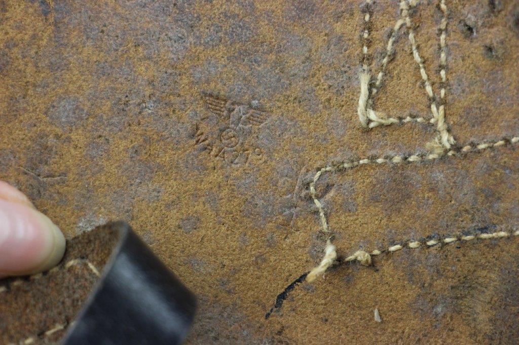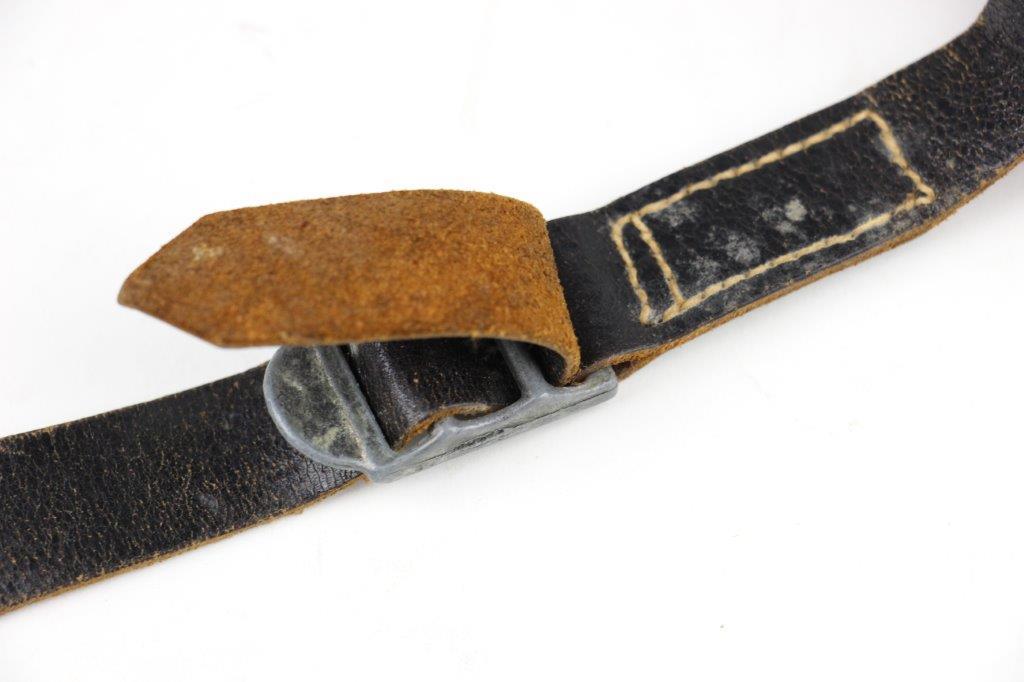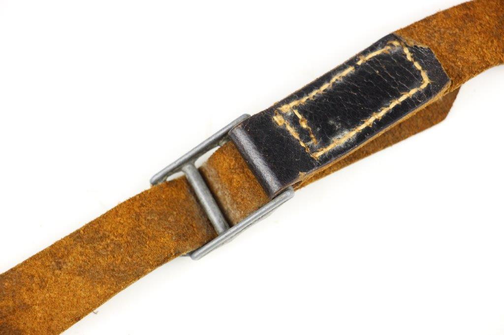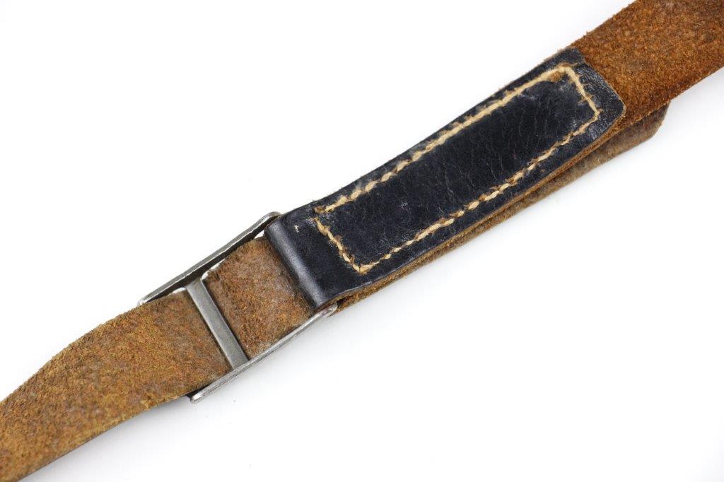 8/12/24 – This is a WW2 FN M1922 holster that was modified post-factory with added shoulder straps, an added closure strap (on the interior leather), and a removed magazine pouch. Despite these modifications, the holster is still in great overall condition with visible factory-original markings. There’s a visible waffen WaA279, and slightly visible maker and date stamp, “dtv 4” by C.O. Gehrckens. The pebble grain leather has normal pliability and light use wear. The shoulder straps and added closure strap appear to be period correct, but we can’t be sure. The added straps show light age and wrinkling but are in great condition. All added stitching doesn’t fluoresce, so again this could be period correct, but we’re not sure. Price reduced accordingly.