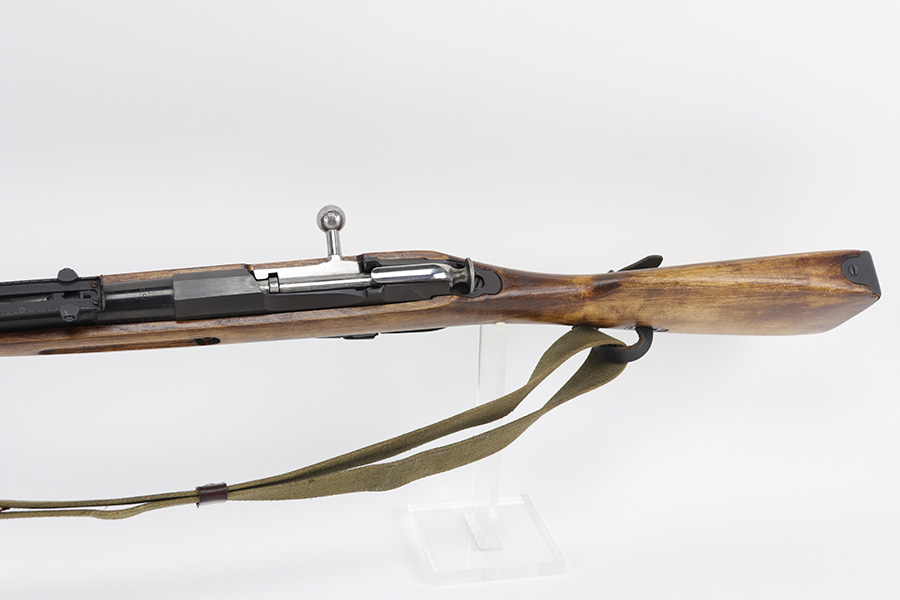 10/26/21 – This is a minty example of a Mosin Nagant Model 28 Rifle that was issued to the the Finnish Civil Guard in the 1930’s, as evidenced by the “SY” marking on the chamber. The gun has the proper “Square SA” Finnish proofs throughout. There is a very faint import mark on the barrel. The gun appears to have been completely reworked at some point. As a result, it is in minty condition. Most of the serial numbers do not match and have been crossed out, likely when it was reworked. The bolt and receiver do match each other. The gun has retained virtually all of its new bluing with an area of minor pitting and light rust around the front sight and a dot of light rust on the magazine. The stock is un-marked and in near mint condition. Comes with an excellent canvas sling and a cleaning rod. The bore is shining with strong rifling.