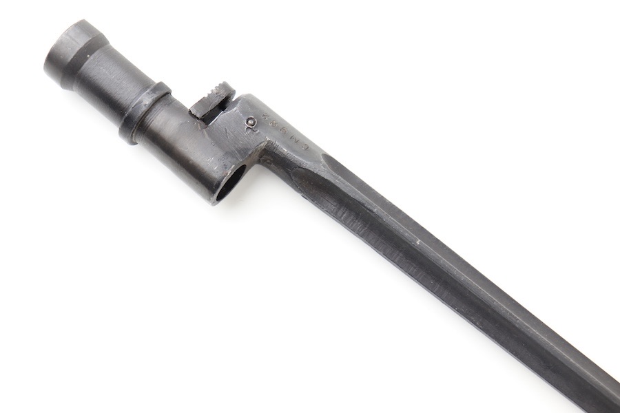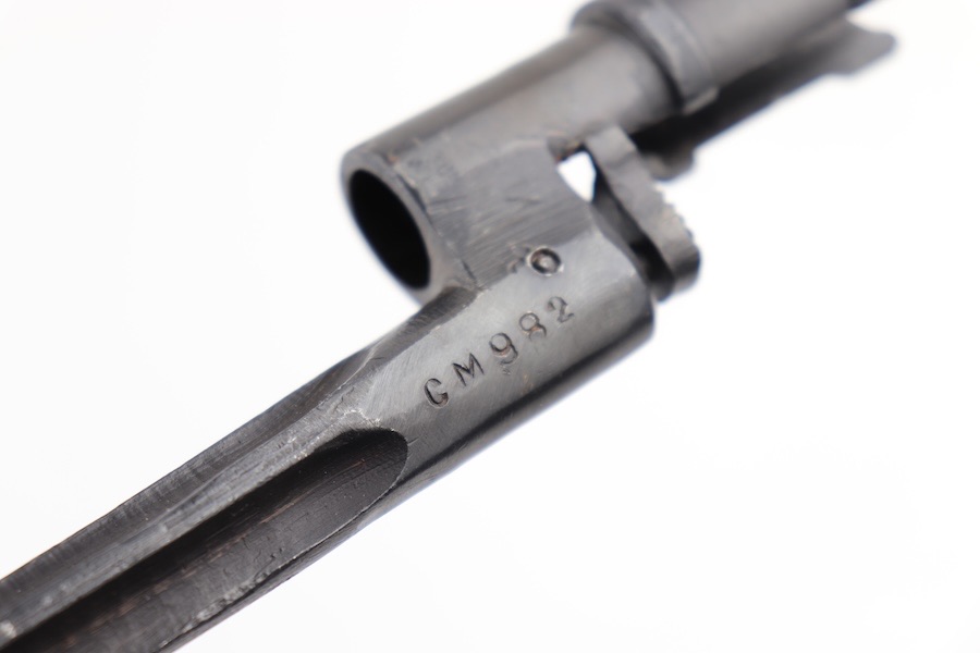 1/15/24 – Great and original condition Mosin Nagant spike bayonet. There is mild edge wear along the spike and socket with no rust or pitting. Serial number is GM982.
