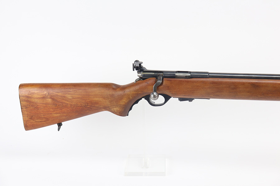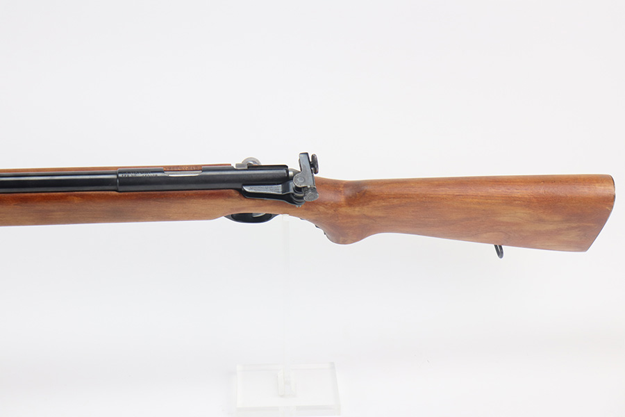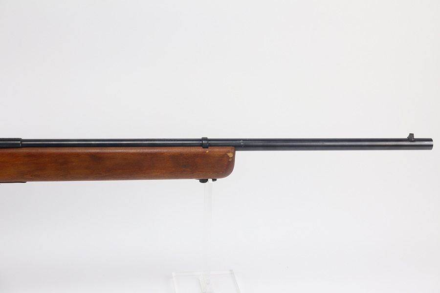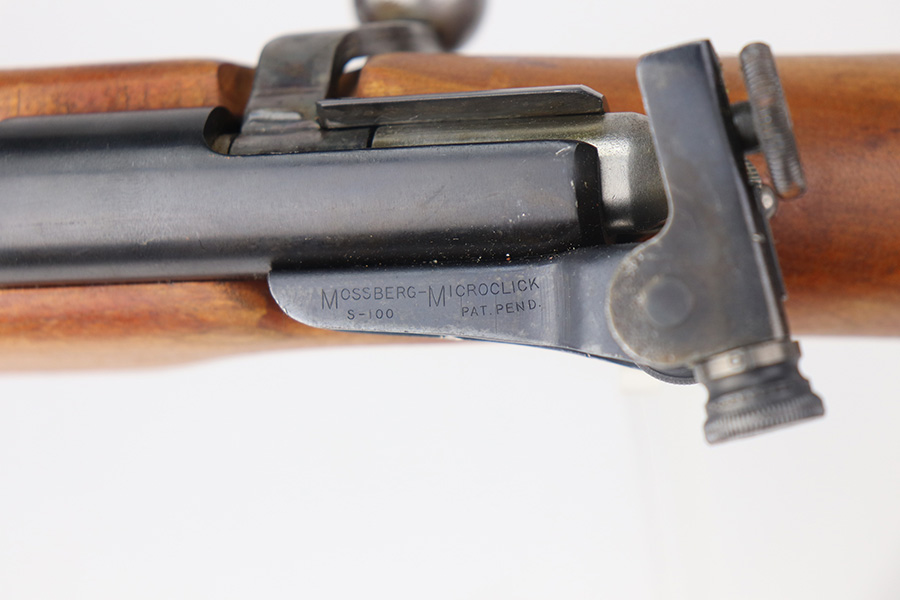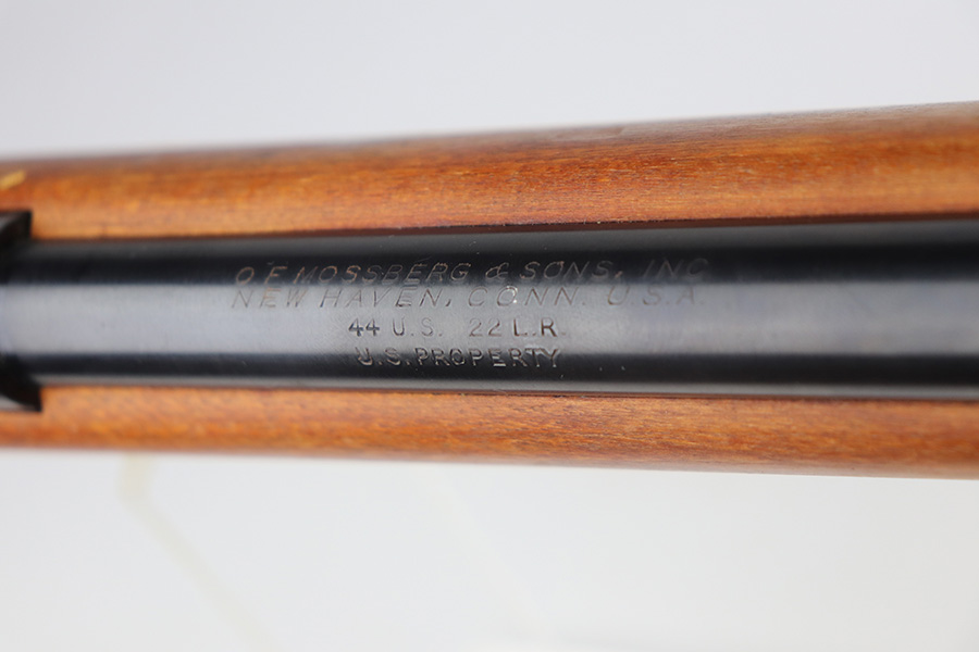 5/21/21 – This is a minty example of a Mossberg 44 that was issued to the U.S. Military as a training rifle. Produced from 1943-46. Receiver and barrel are ‘U.S. PROPERTY’ marked. Terrific blued finish with only minor hints of wear. Minty bore and stock. Aperture rear peep sight. Seven round magazine.
