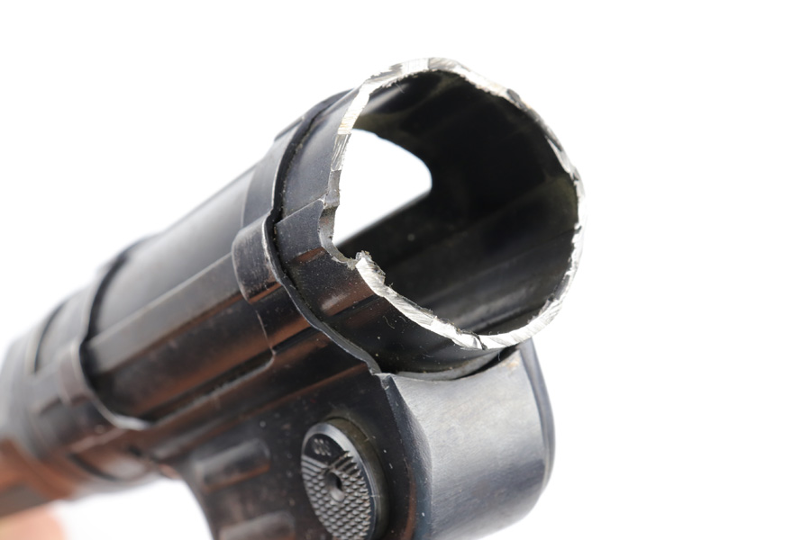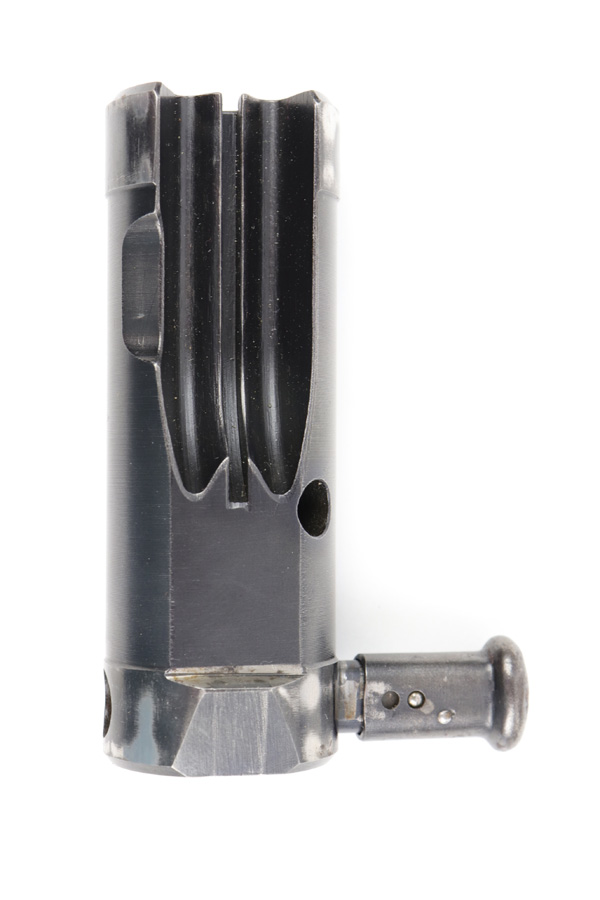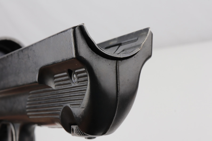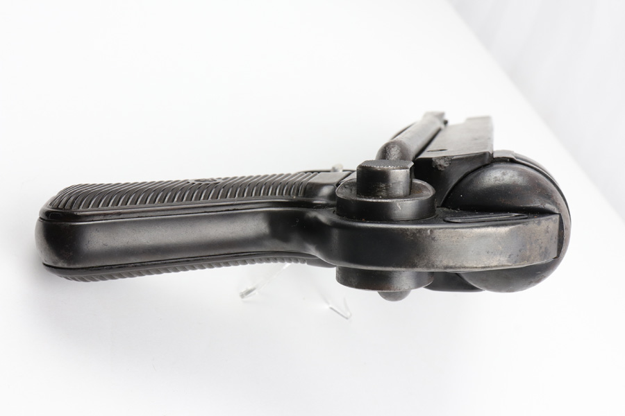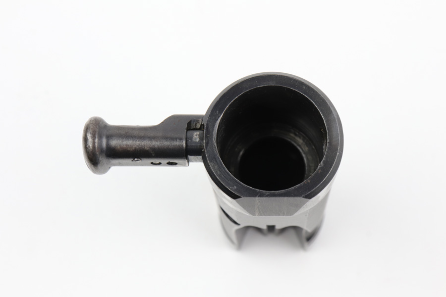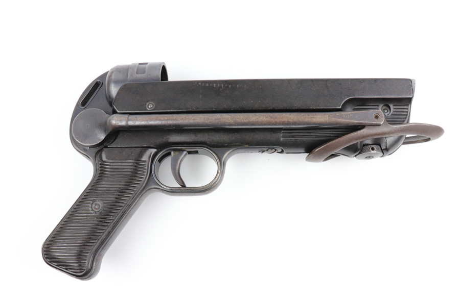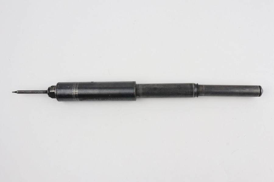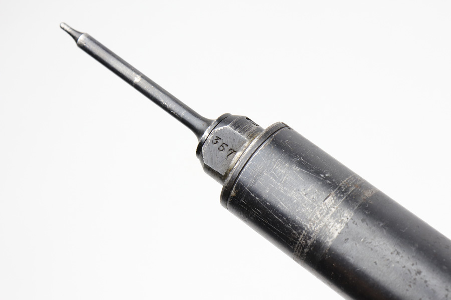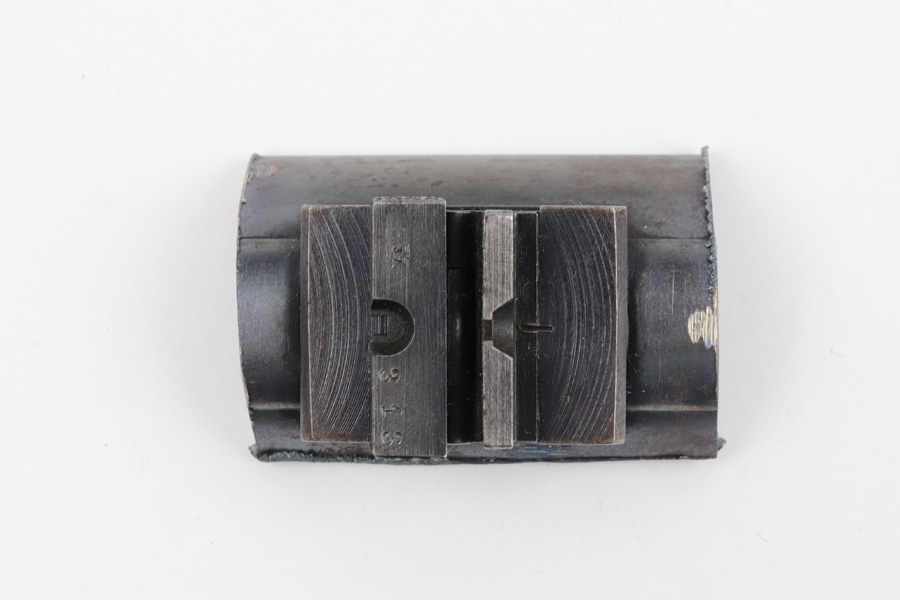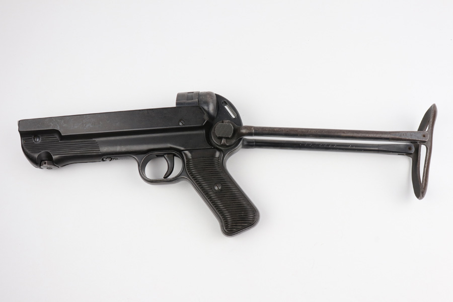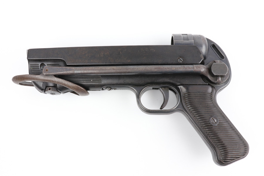 7/10/19 – This is an all original WW2 era MP 40 parts kit. The numbered parts are all matching and original, except for the firing pin (but these were commonly replaced during WW2). The receiver has been cut but all pieces shown are included. The biggest issue with this kit is that someone tried to weld the barrel shut, and then it appears someone else tried to punch through that weld. The result is a small hole so we can see down the barrel, but not big enough to let a round pass through. The parts are in very nice condition with normal aging and patina throughout the metal. The bore has strong rifling but there’s patina and some minor residue. All parts shown are included.