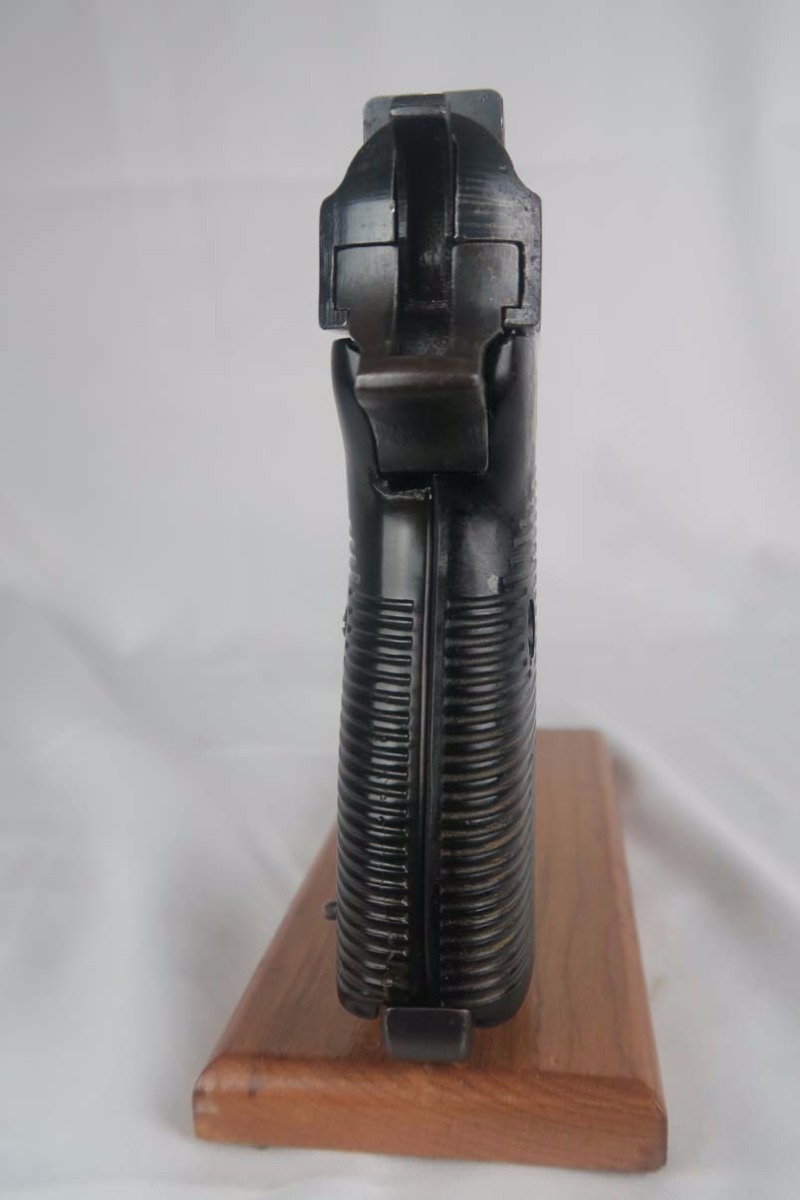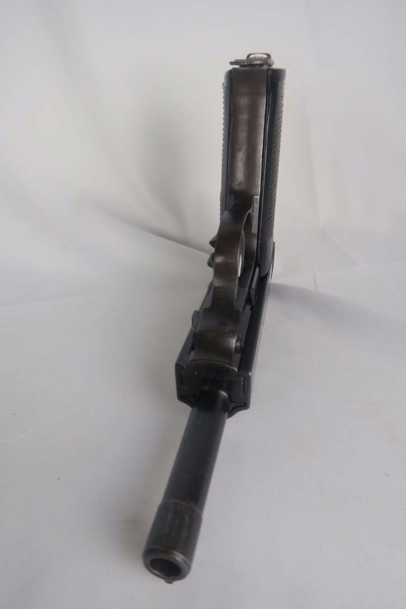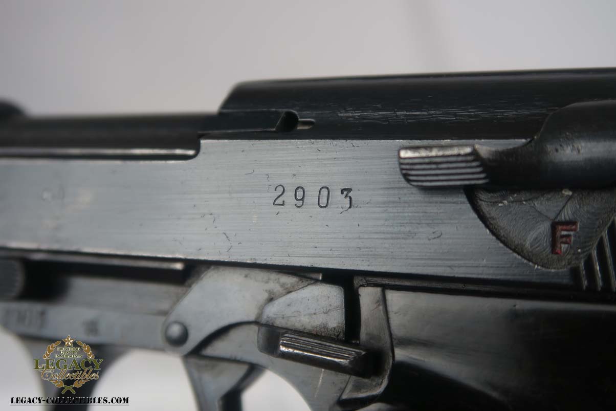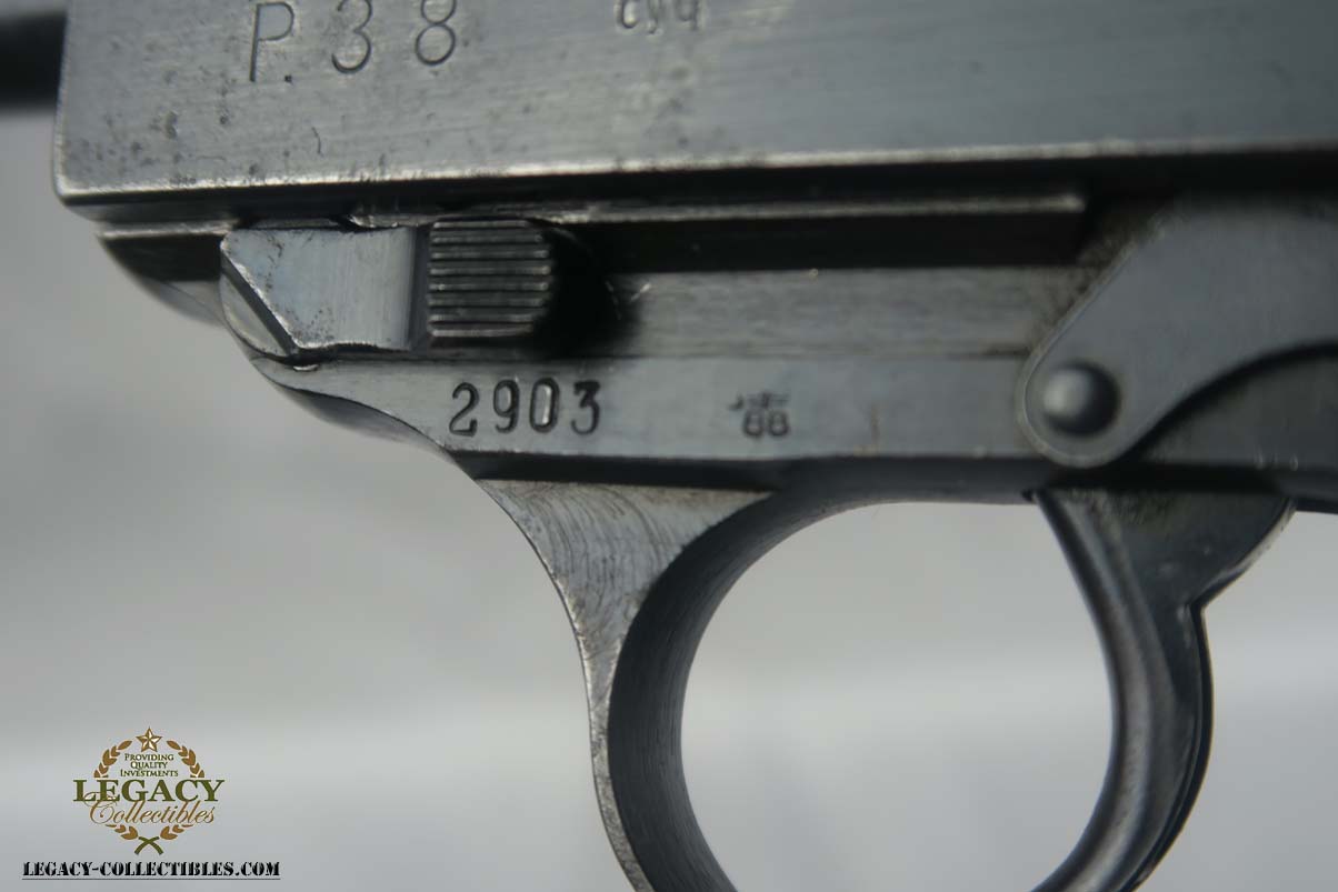 3/23/17 – This is one of the very early CYQ P.38’s with no letter suffix, made in the first month of production at Spreewerke plant. It has all original finish and would be a really nice gun but sat on something corrosive as can be seen as pitting on the back, right side. You will notice that even the top of the grip is corroded a bit. The gun is all matching, but the mystery on this gun is found on the locking block. It has an eagle 18 proof – very small. As reported on the P38 forum this is only found on 7 (now 8) reported guns. I would not have know to look for it except due to my reading about it on the forum. (thanks guys). They are all found in the early CYQ serial range. At this point I don’t think any one knows the meaning for origin of the Eagle 18 proof. Bore is a 6/10, with decent rifling but some frosting/freckling.