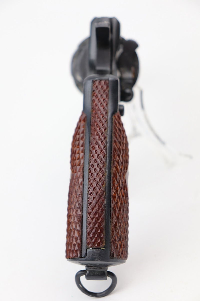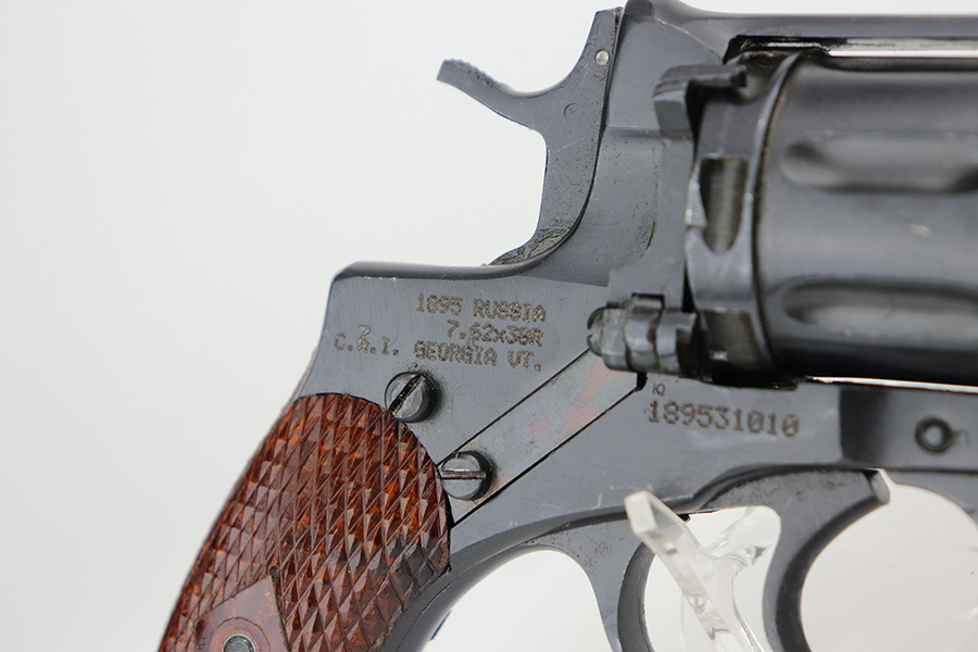 5/6/21 – This is a Russian Mosin-Nagant M1895 revolver rig that was made in 1936 at the Tula factory. The gun was redone at the arsenal before being exported as many of these were. The finish shows almost no wear as a result, and has an excellent bore. Import mark on right side of frame. Includes proper holster.