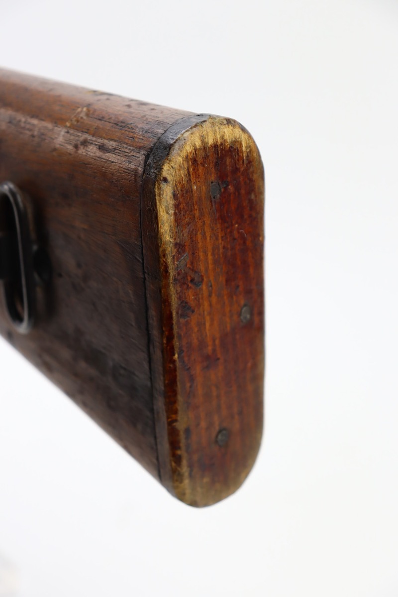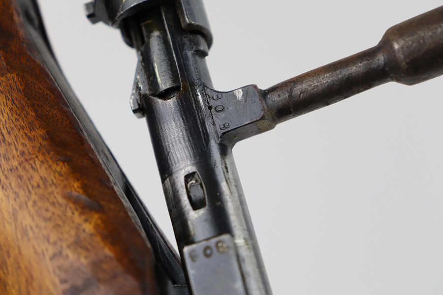 01/04/2024 – Up for sale is a Type 99 Arisaka made during WW2 at the Nagoya Arsenal. This rifle is an early production 8th series which started featuring more “Last Ditch” features at Nagoya. The rifle is in great condition with no major blemishes. The stock is sound and the finish on the metal is free of any rust. The mum is defaced and the rifle does not match. The bore is bright in the first half but gets darker closer to the muzzle.