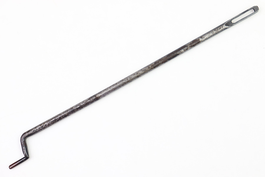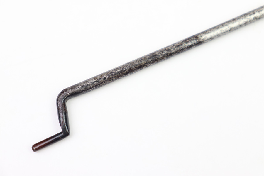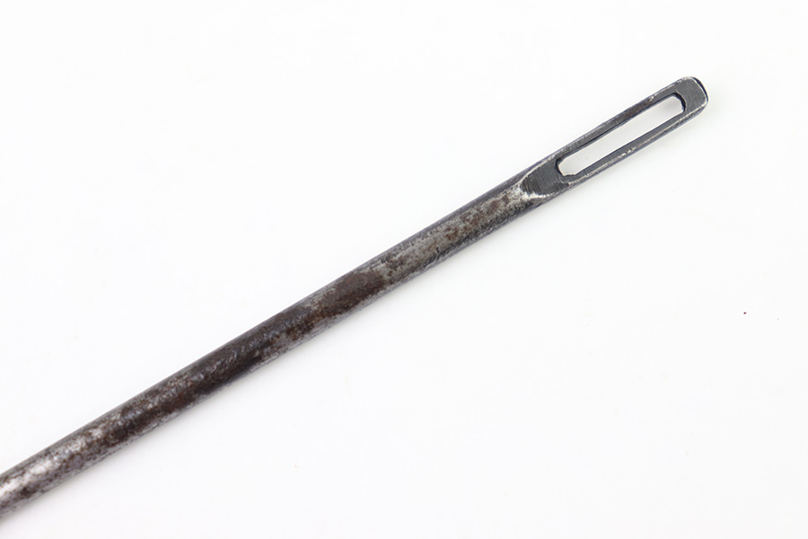 8/9/22 – This is a WW2 production Nambu cleaning rod for the Type 14 or Type 94 pistol. The rod is in good condition with natural aging and dark surface patina throughout. There is some of the original blued finish still present, but mostly worn. Measures about 6.5 inches long.