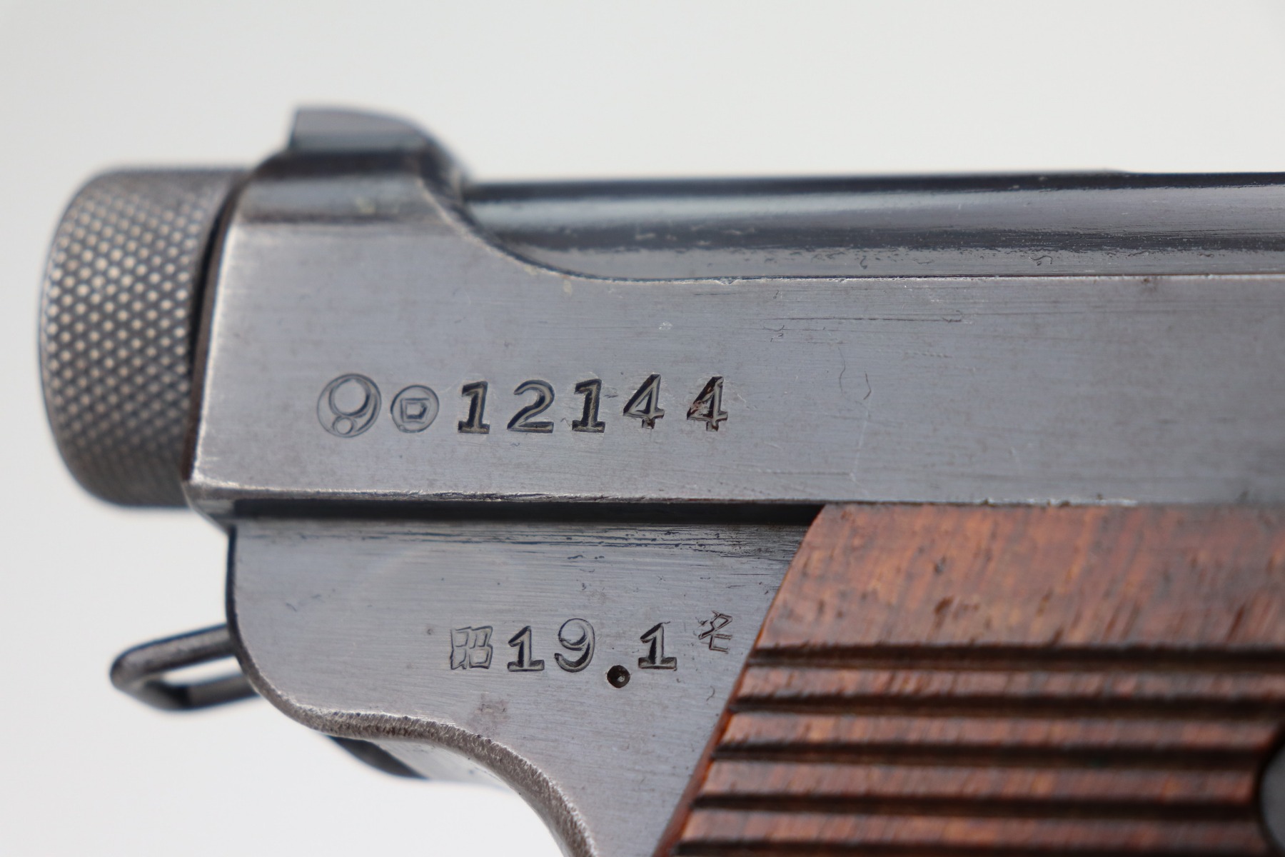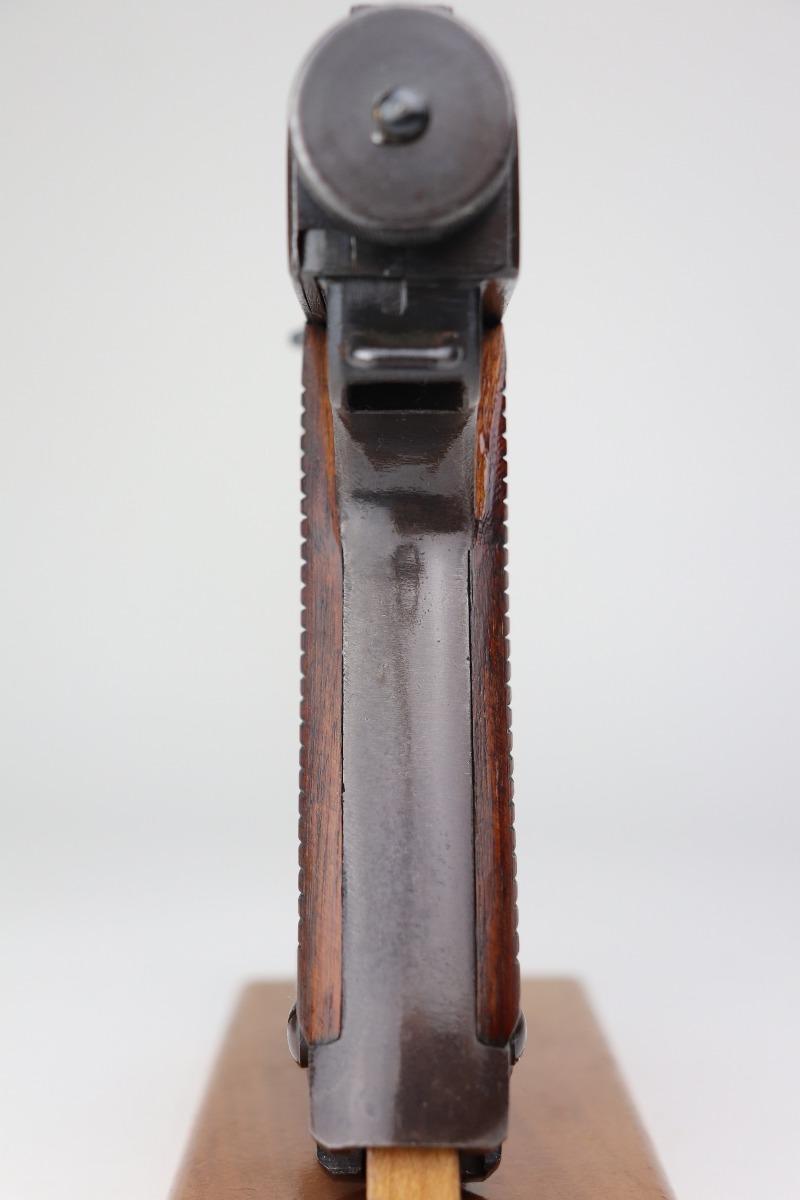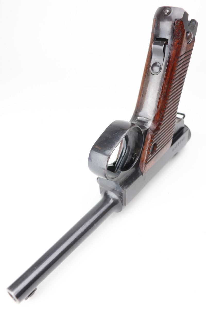 3/15/21 – This is a very nice example of a Nambu Type 14 issued to the Japanese military in January of 1944. It is all matching and comes with an original matching magazine. It has retained about 93-94% of its original finish. There is minor thinning and patina on the straps. It comes with excellent matching grips. The bore is mint.