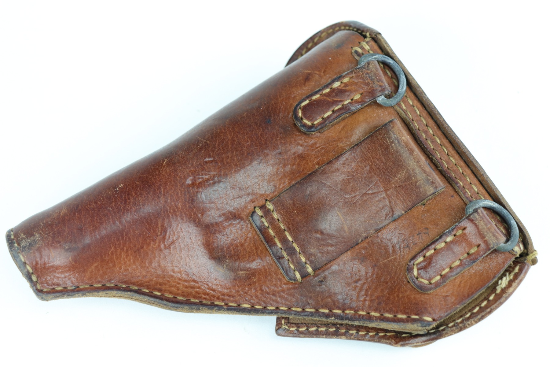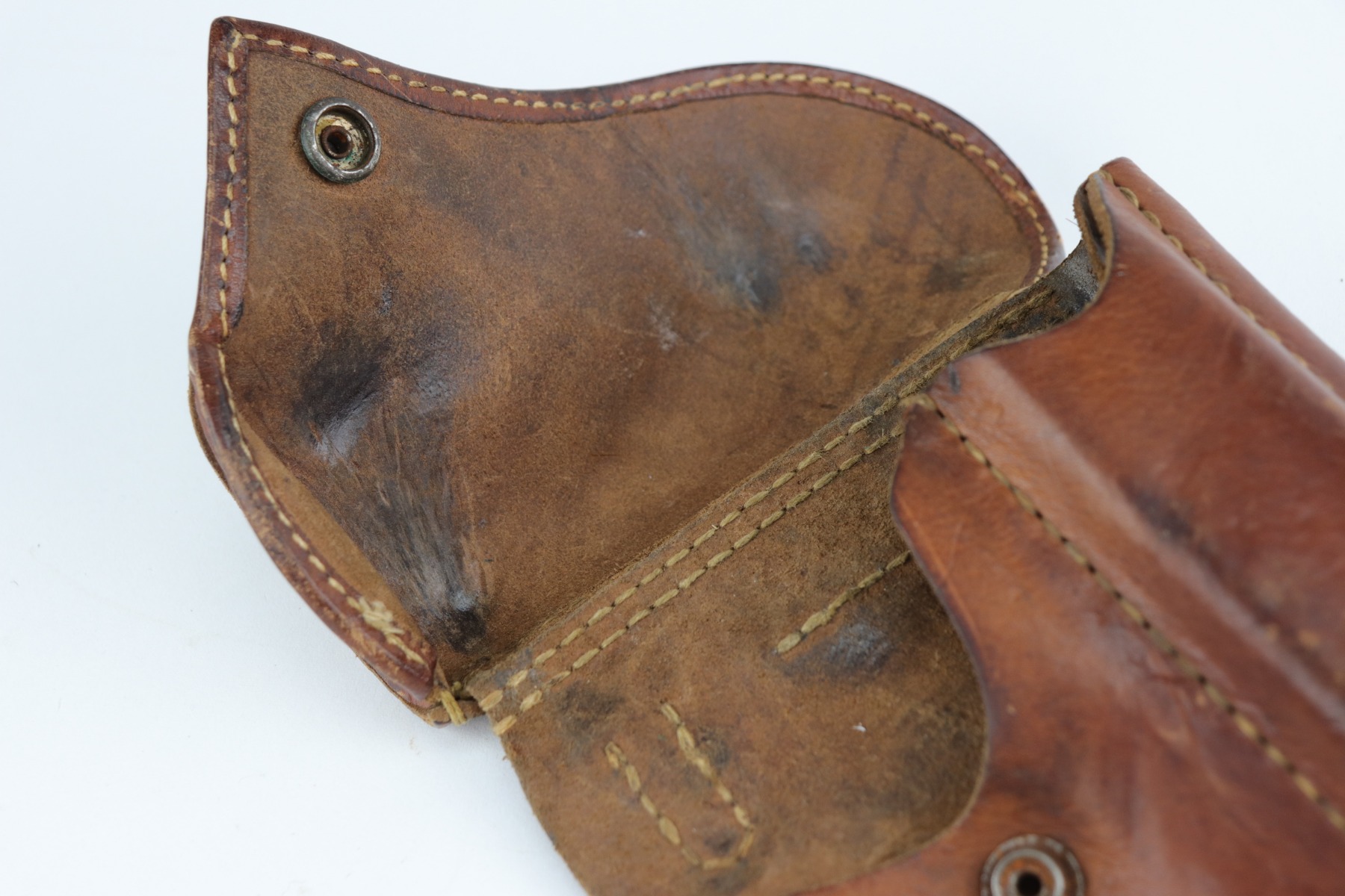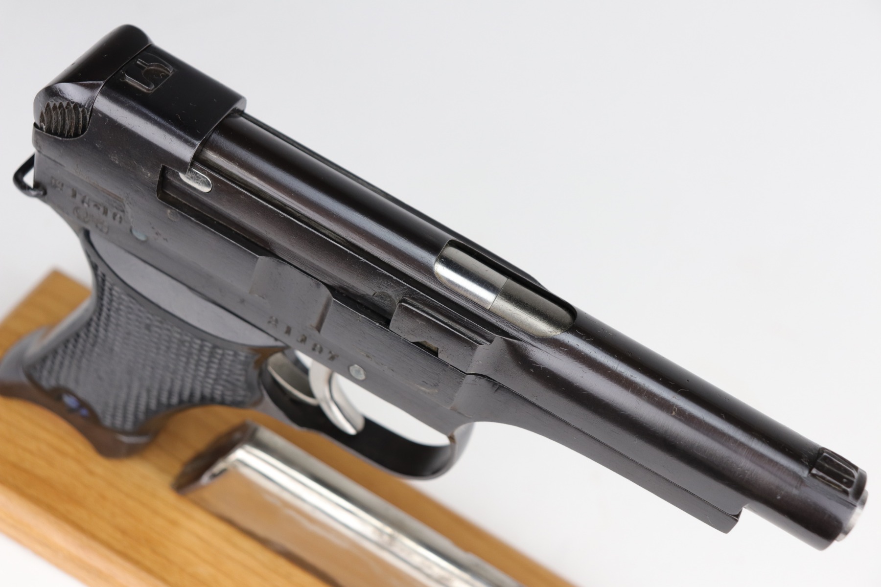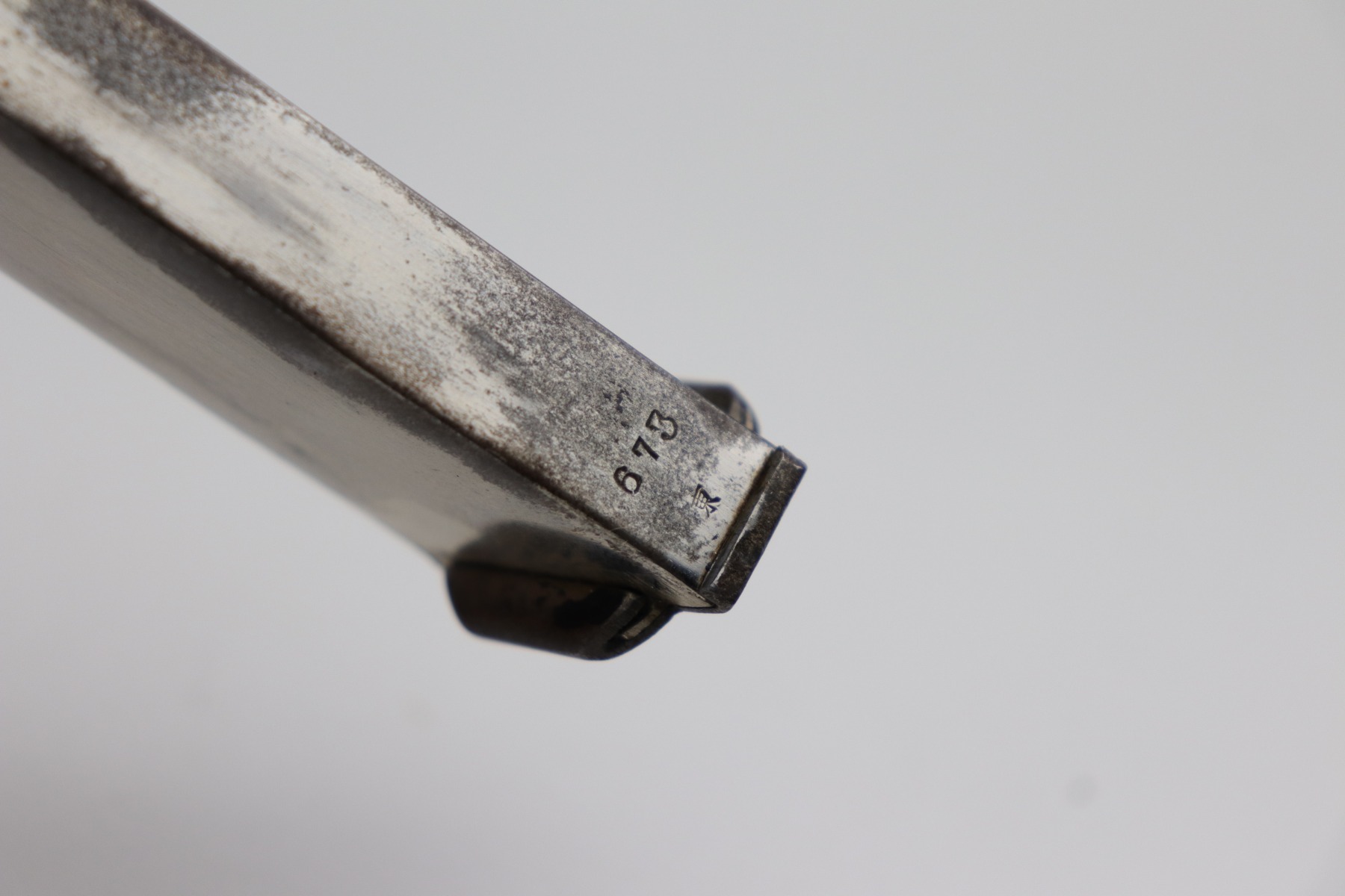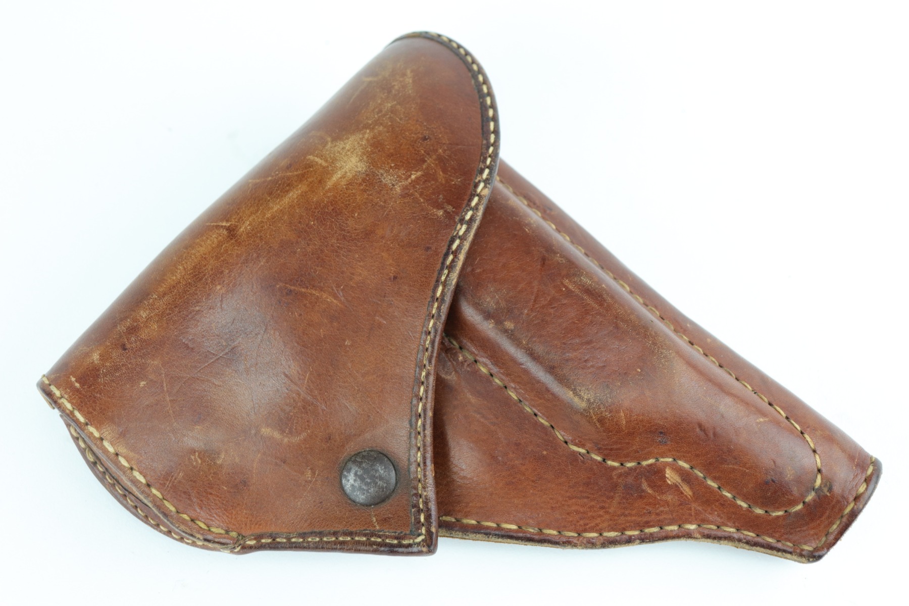 2/5/21 – This is an excellent example of a Nambu Type 94 Rig issued to the Japanese military in October of 1941. It is all matching, and from its appearance we believe it was arsenal re-blued. In any case, the gun has retained virtually all of its finish. There are a few sparse areas of very minor pitting that has been blued over. The gun comes with a period-correct holster and a mismatched period magazine. Very nice bore – shiny with strong rifling and just a few small areas of minor freckling.