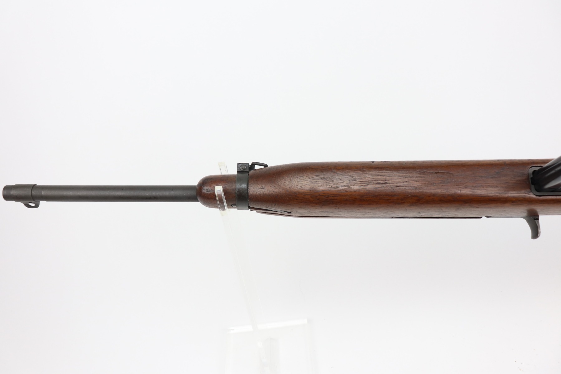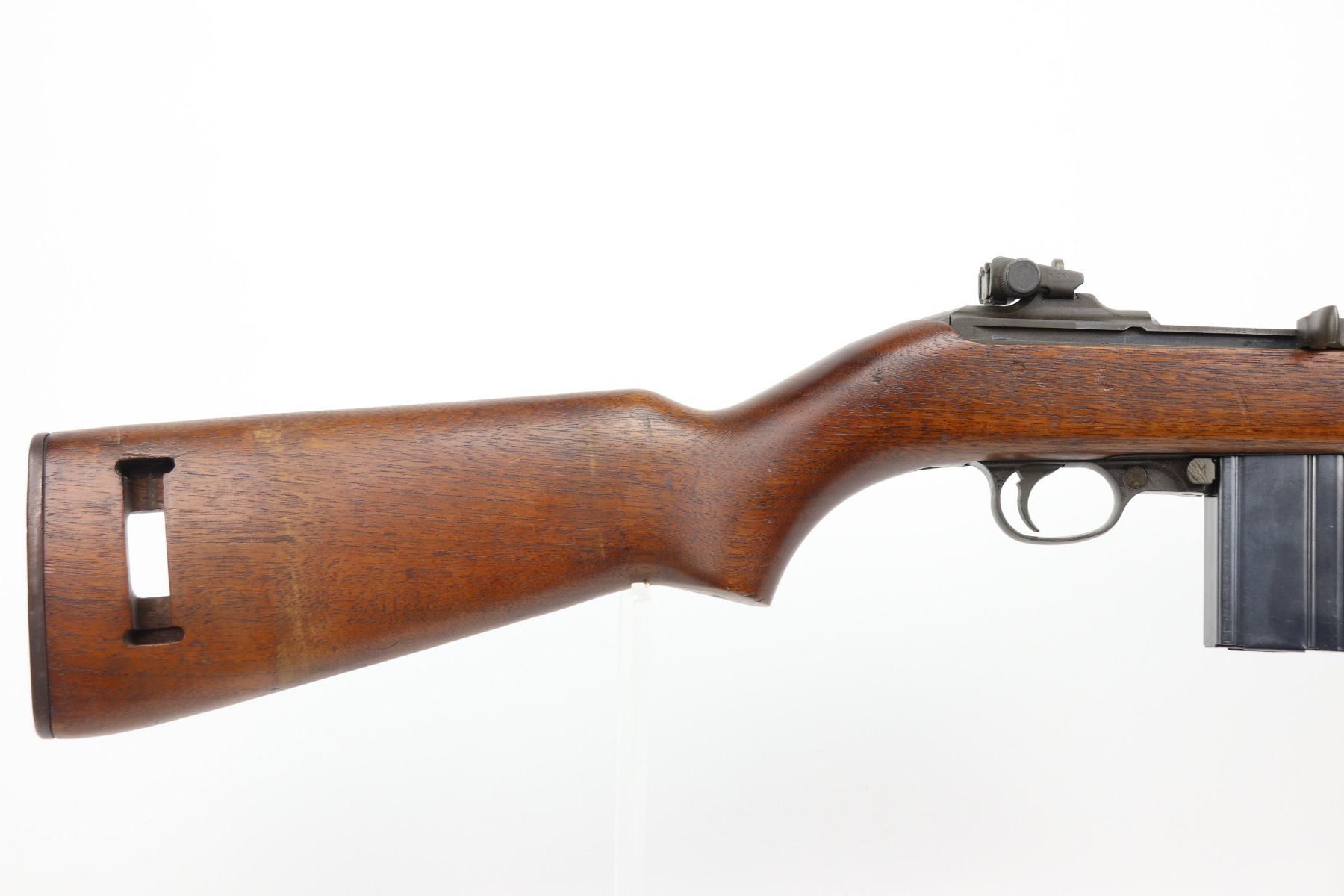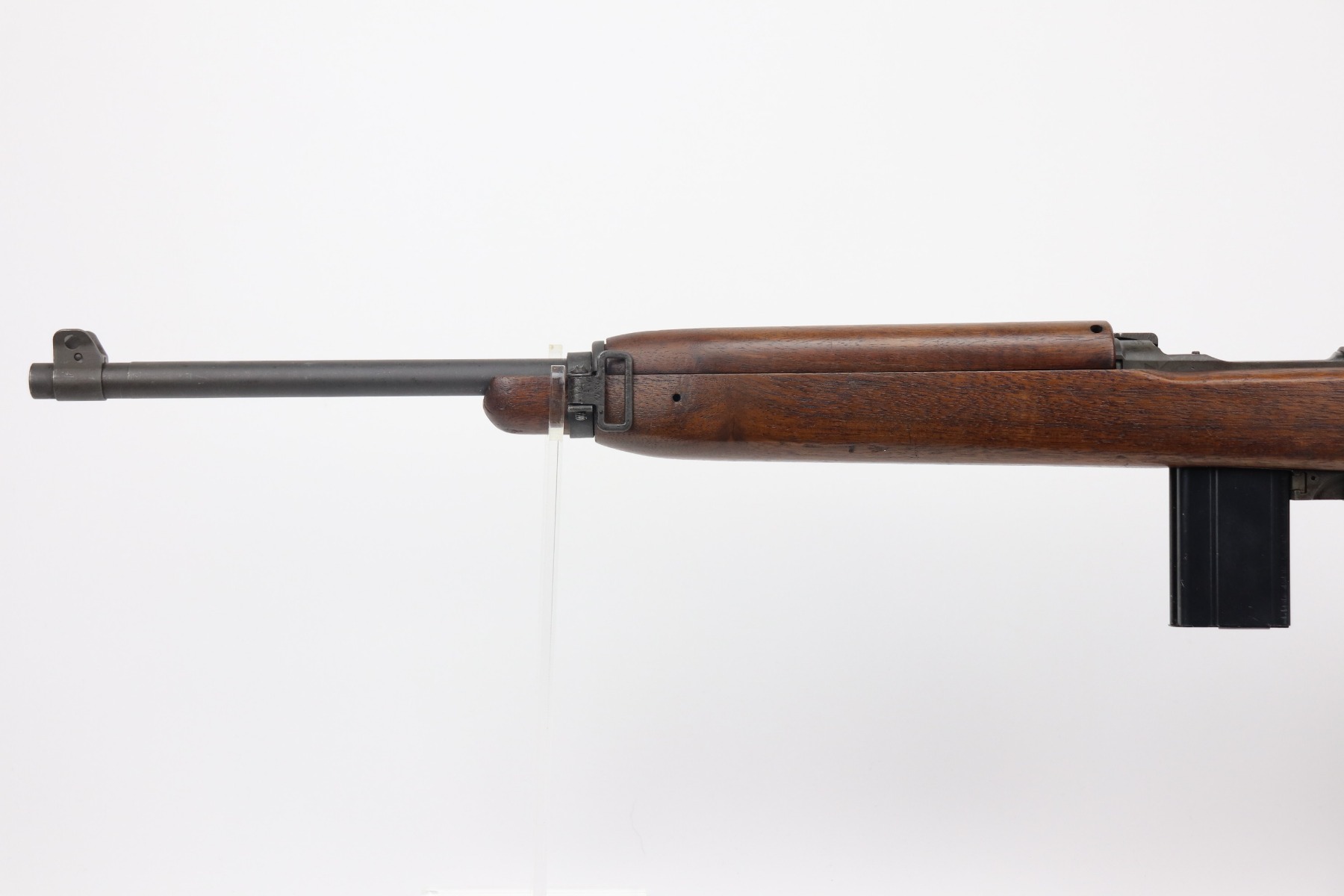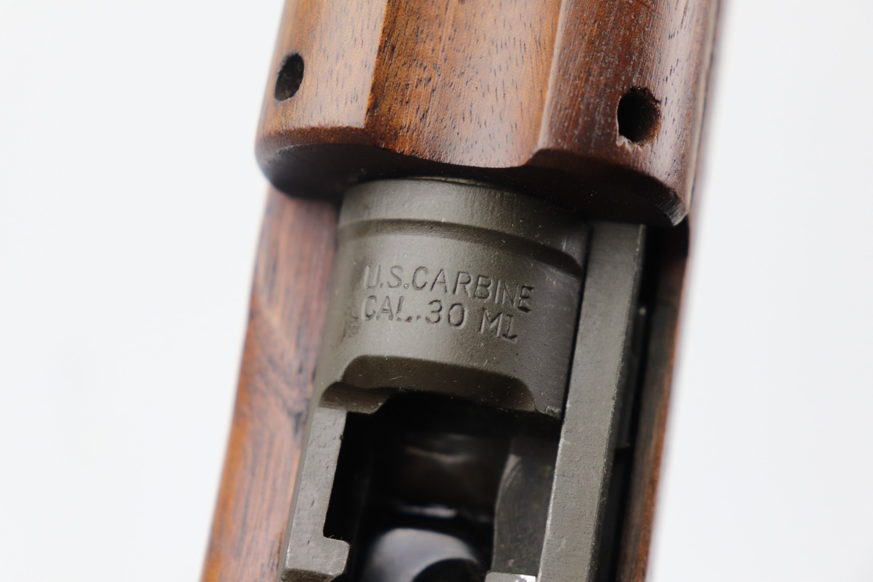 2/23/21 – This is an excellent example of a National Postal Meter M1 Carbine issued to the US military in early 1944. It has a proper Marlin barrel and stock. The hammer is marked “w”. The trigger group is Inland. The mag release is marked “EI”. It has an “IO” marked bolt. The bolt has been parkerized, which was done some time after WW2. It also has an adjustable rear sight that was likely added after the war as well. The gun is in excellent condition, retaining virtually all of its finish. There are some small areas of dark discoloration here and there, mostly on the barrel. The stock is excellent – just a few very minor dings. The bore is mint. Comes with one period-correct magazine.