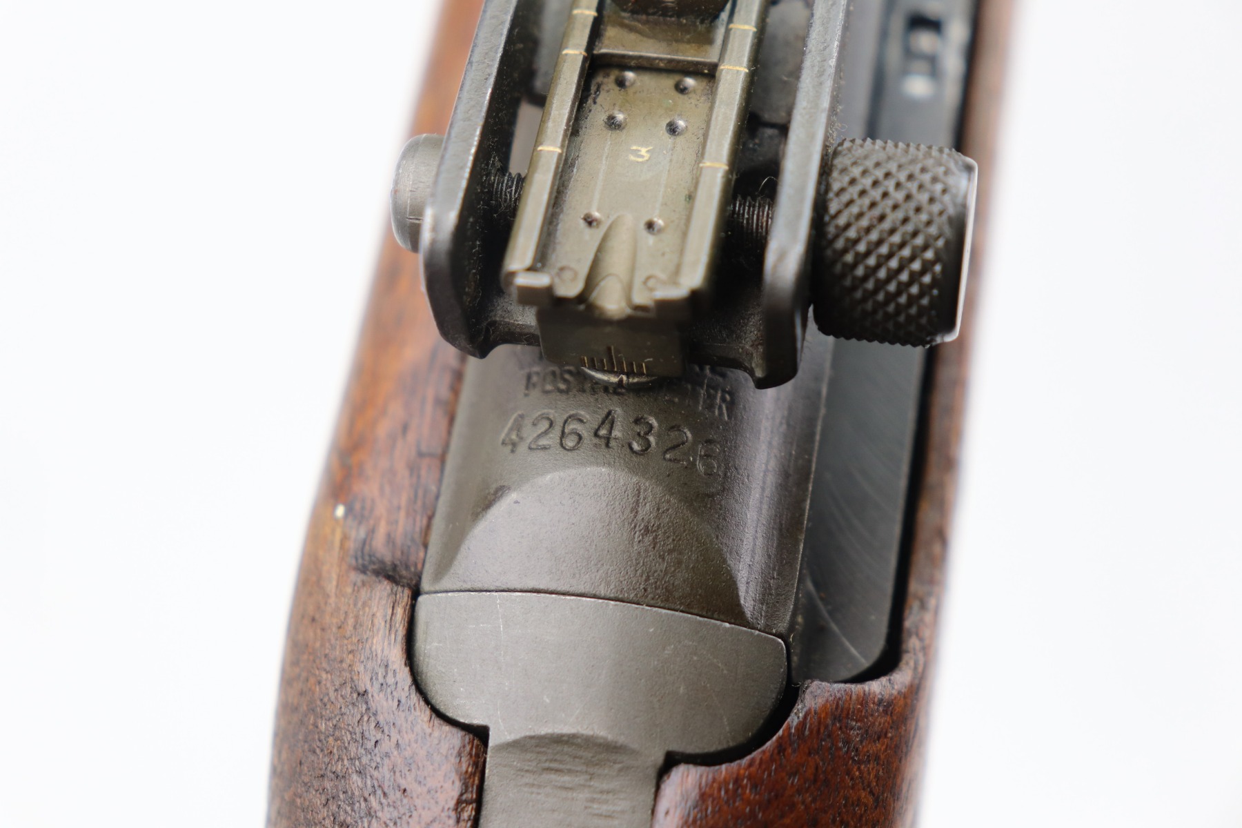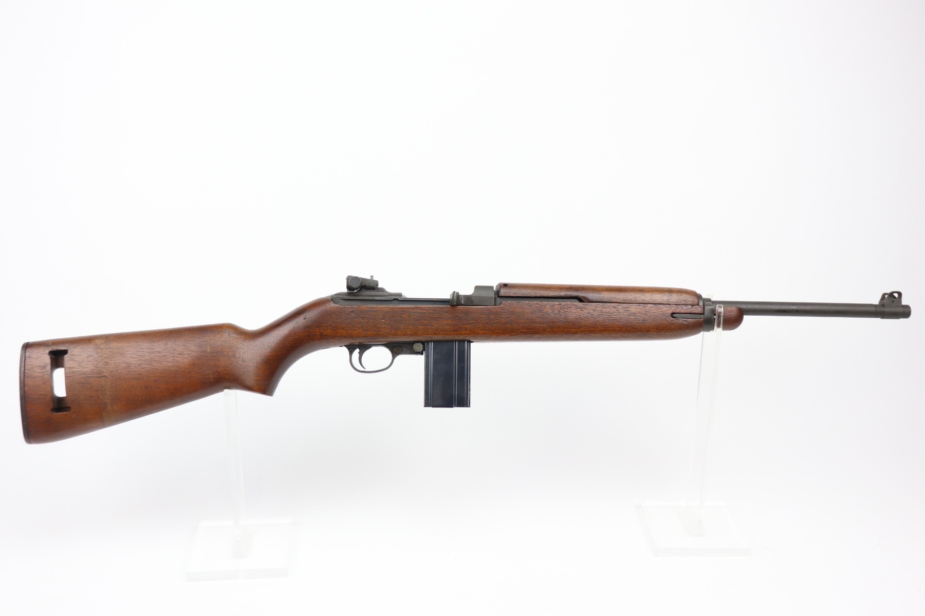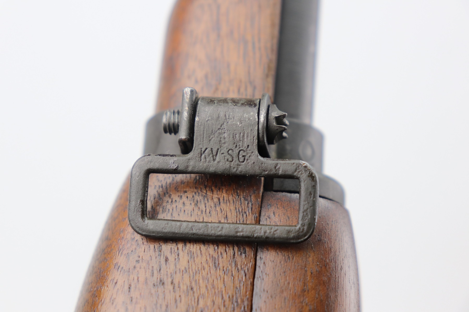 2/23/21 – This is an excellent example of a National Postal Meter M1 Carbine issued to the US military in early 1944. It has a proper Marlin barrel and stock. The hammer is marked “w”. The trigger group is Inland. The mag release is marked “EI”. It has an “IO” marked bolt. The bolt has been parkerized, which was done some time after WW2. It also has an adjustable rear sight that was likely added after the war as well. The gun is in excellent condition, retaining virtually all of its finish. There are some small areas of dark discoloration here and there, mostly on the barrel. The stock is excellent – just a few very minor dings. The bore is mint. Comes with one period-correct magazine.
