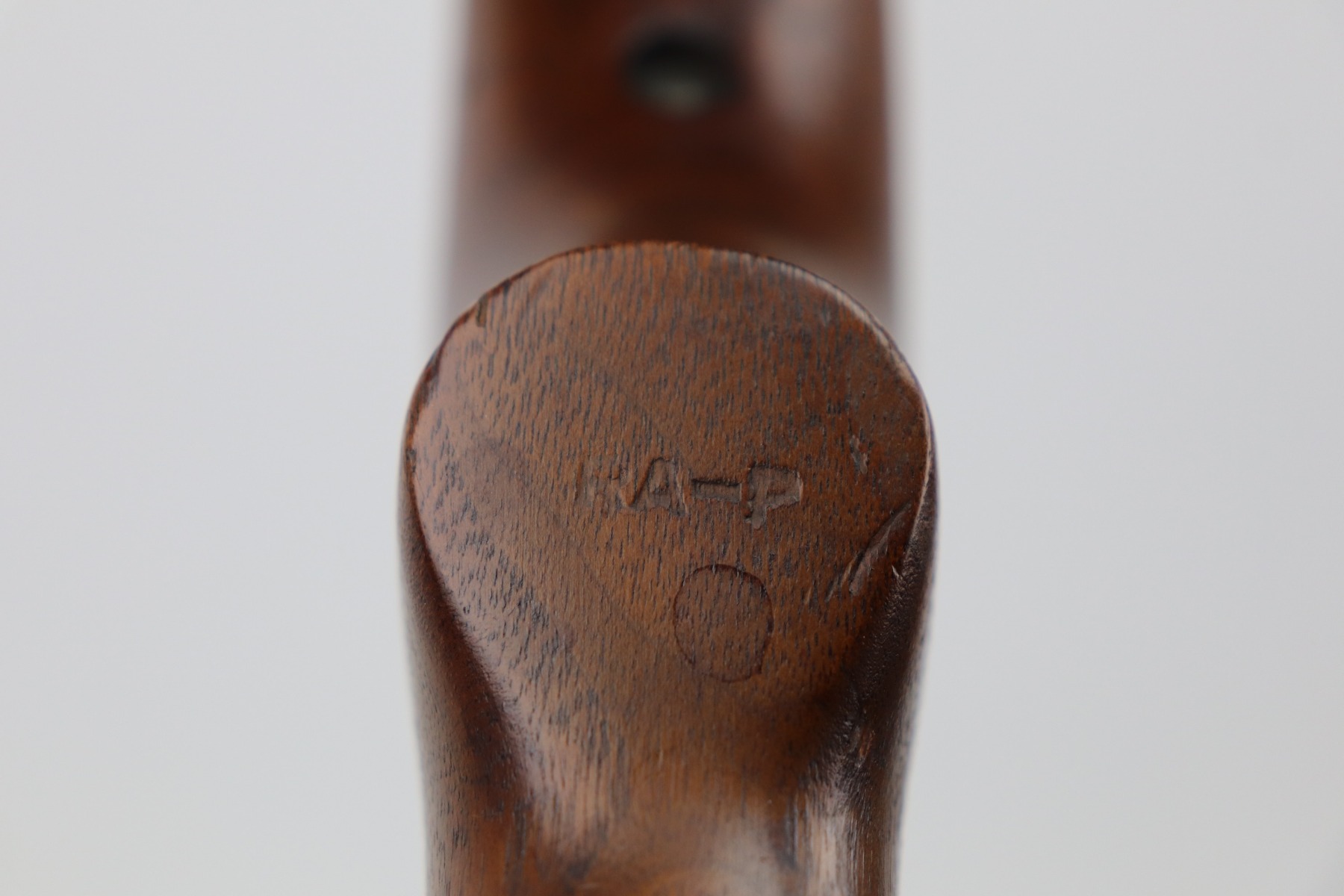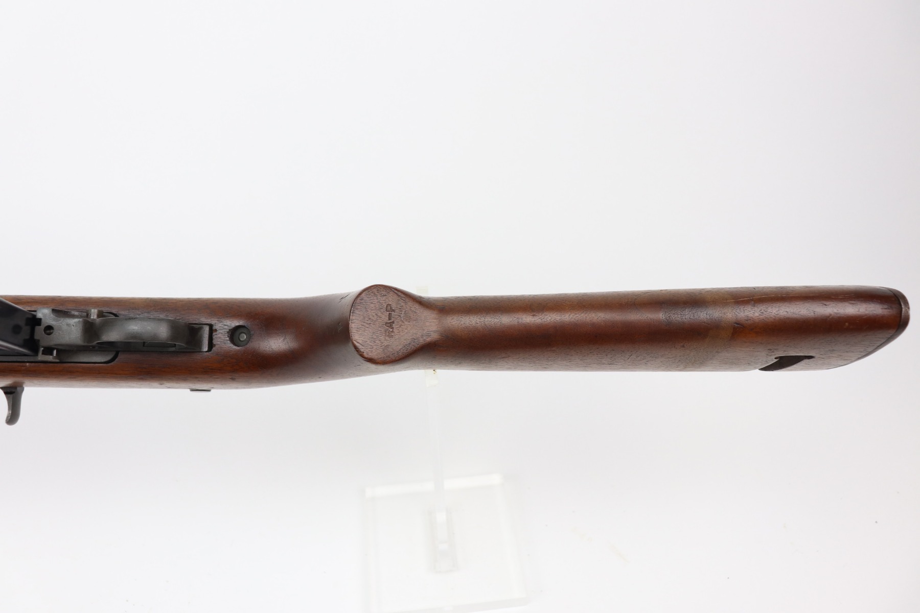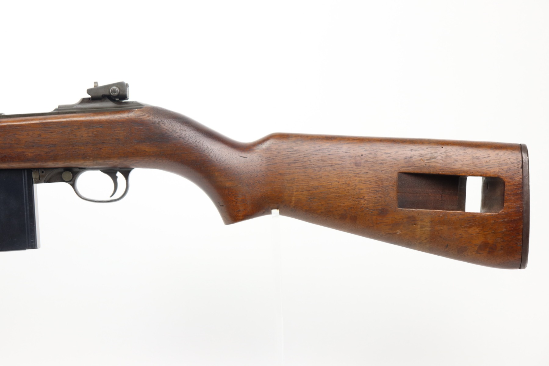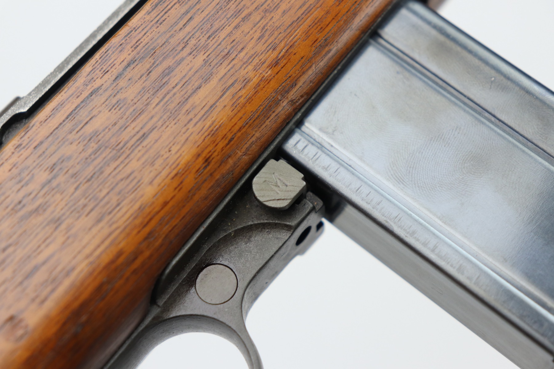 2/23/21 – This is an excellent example of a National Postal Meter M1 Carbine issued to the US military in early 1944. It has a proper Marlin barrel and stock. The hammer is marked “w”. The trigger group is Inland. The mag release is marked “EI”. It has an “IO” marked bolt. The bolt has been parkerized, which was done some time after WW2. It also has an adjustable rear sight that was likely added after the war as well. The gun is in excellent condition, retaining virtually all of its finish. There are some small areas of dark discoloration here and there, mostly on the barrel. The stock is excellent – just a few very minor dings. The bore is mint. Comes with one period-correct magazine.