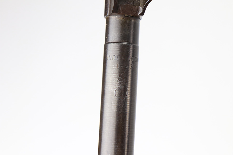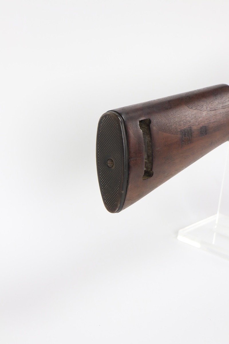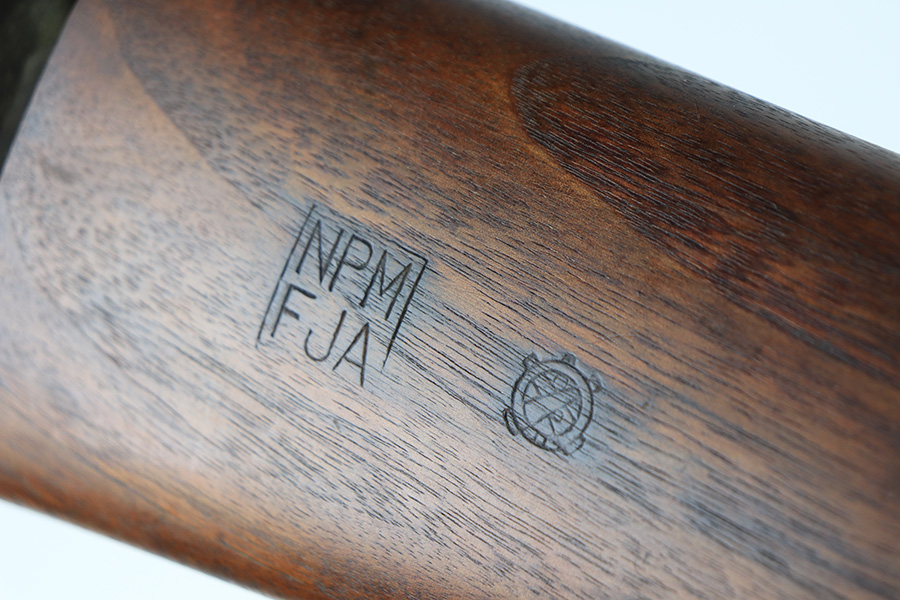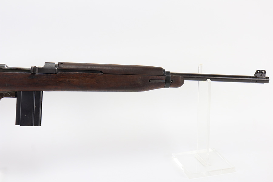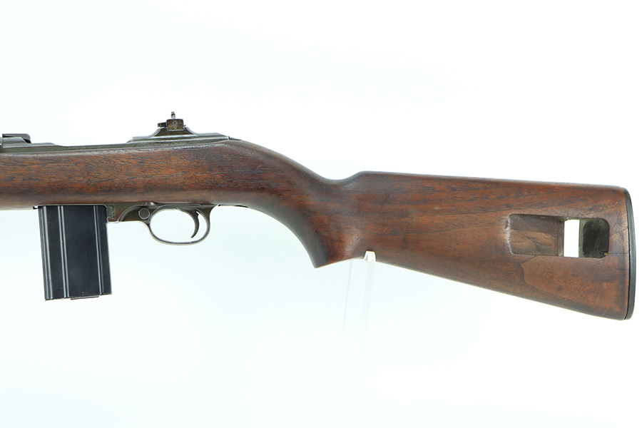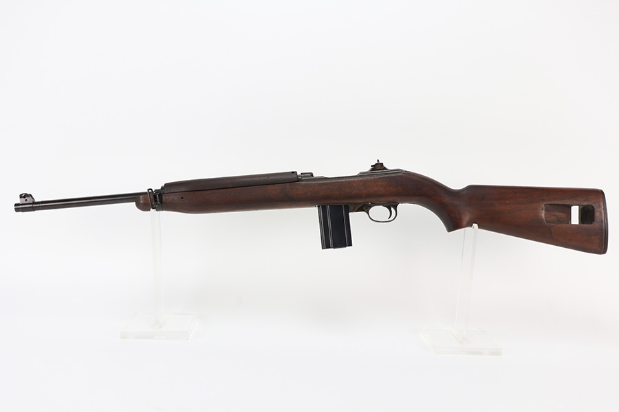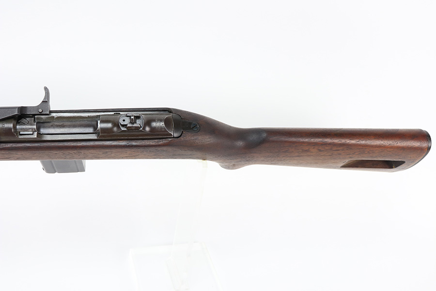 3/1/22 – This is a scarce National Postal Meter M1 Carbine from 1943 with original parts throughout. Excellent original finish on metal parts. Sharp cartouches on stock, though the handguard has some overhang so may have been mated. Early dog leg hammer, with original NPM internals. I-cut stock. Sling swivel may be a replacement. Strong bore with minor frost.