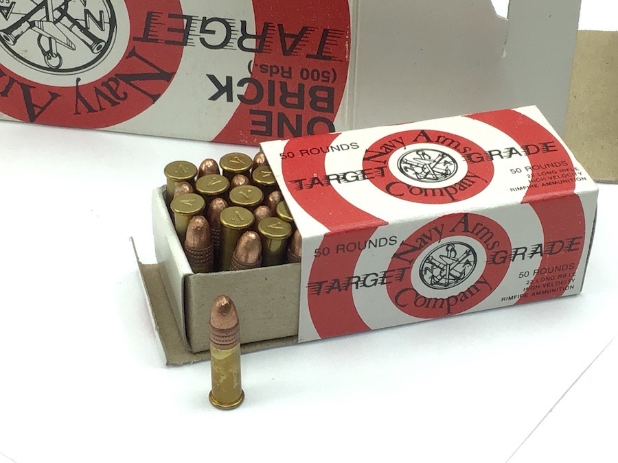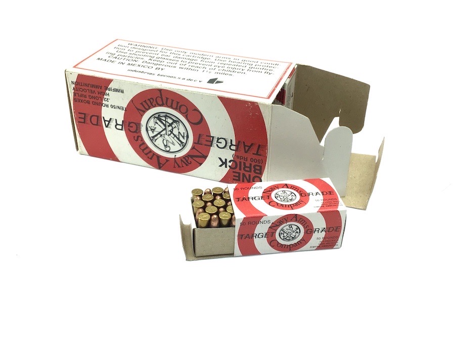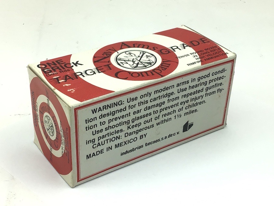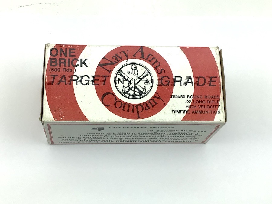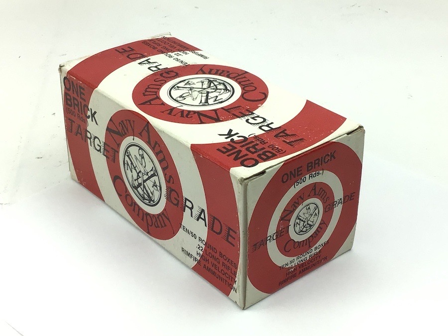6/12/23 – Multiple boxes available. Price is for one brick of 500 rounds. Navy Arms Company, .22LR Caliber, 1960’s vintage ammunition in a 500 Round Brick. The brick consists of ten, 50 round boxes. The cartridges are in like new condition. The box is in great condition with no tears. Beautiful graphics and bright colors.