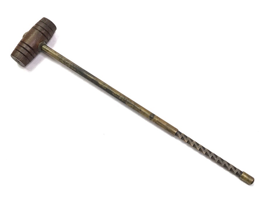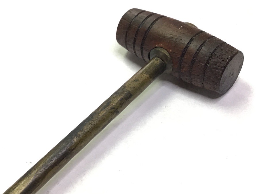 2/28/24 – Very nice Navy Luger Cleaning rod with zig-zag pattern on the tip. Identical to original cleaning rods, but the wood handle rotates on the rod indicating a post war reproduction.
