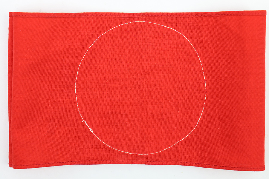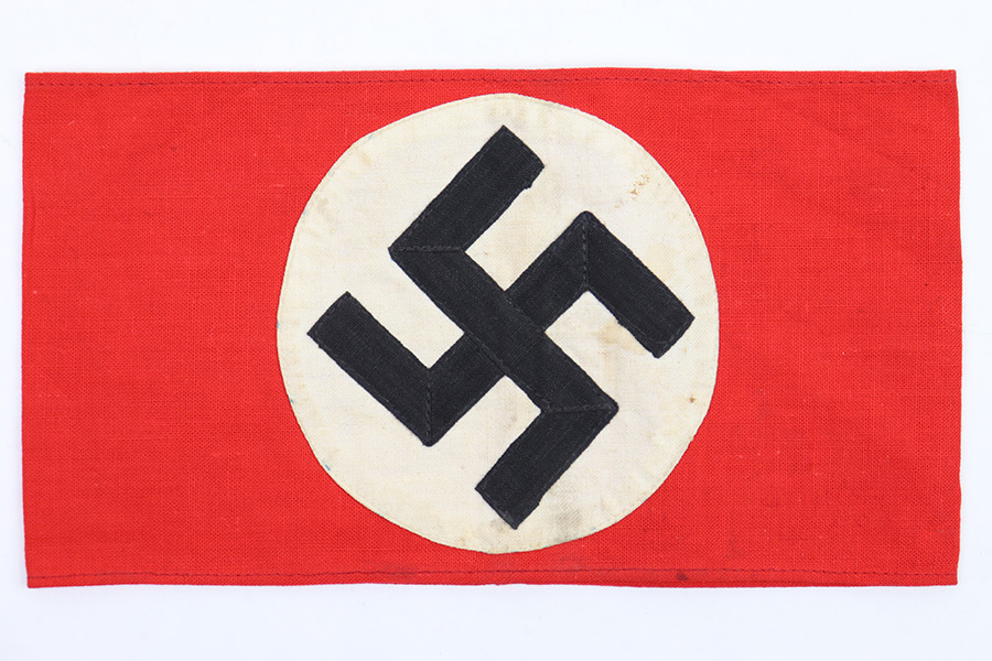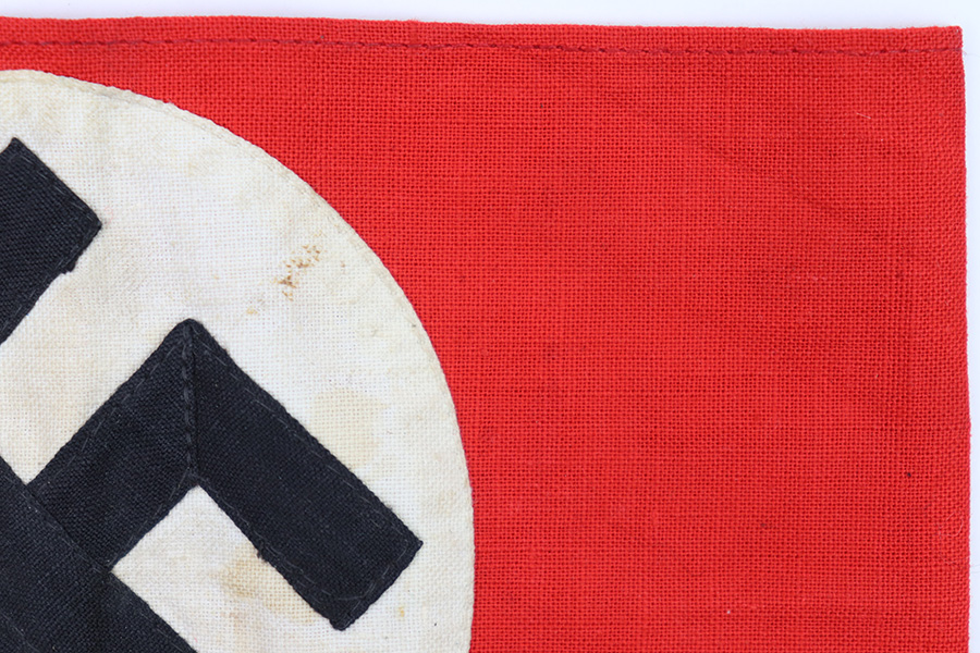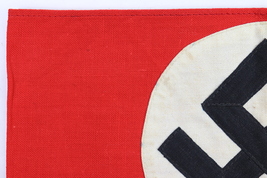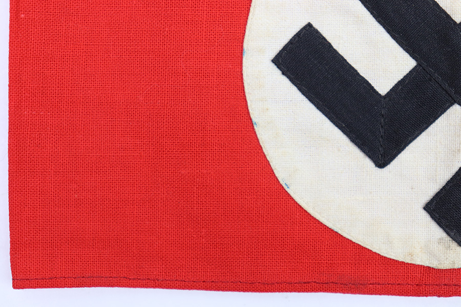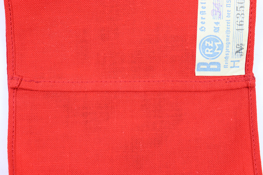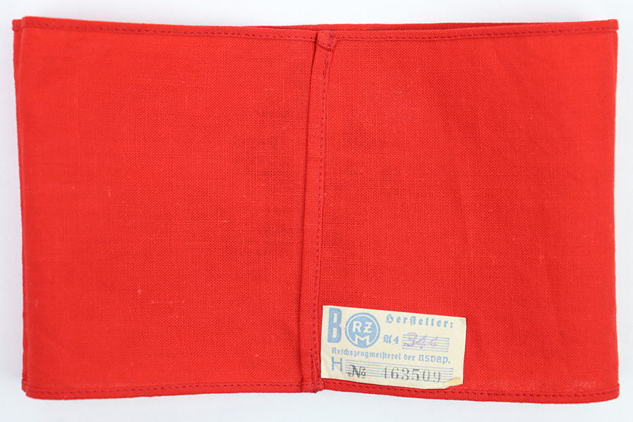 11/4/22 – This is an original WW2 German armband. The armband has a sewn-on central circle and sewn-on swastika logo. The stitching is excellent throughout the armband with no loose or missing stitches. The white circle has some mild stains but no major discoloration. The interior has an original RZM tag as shown.