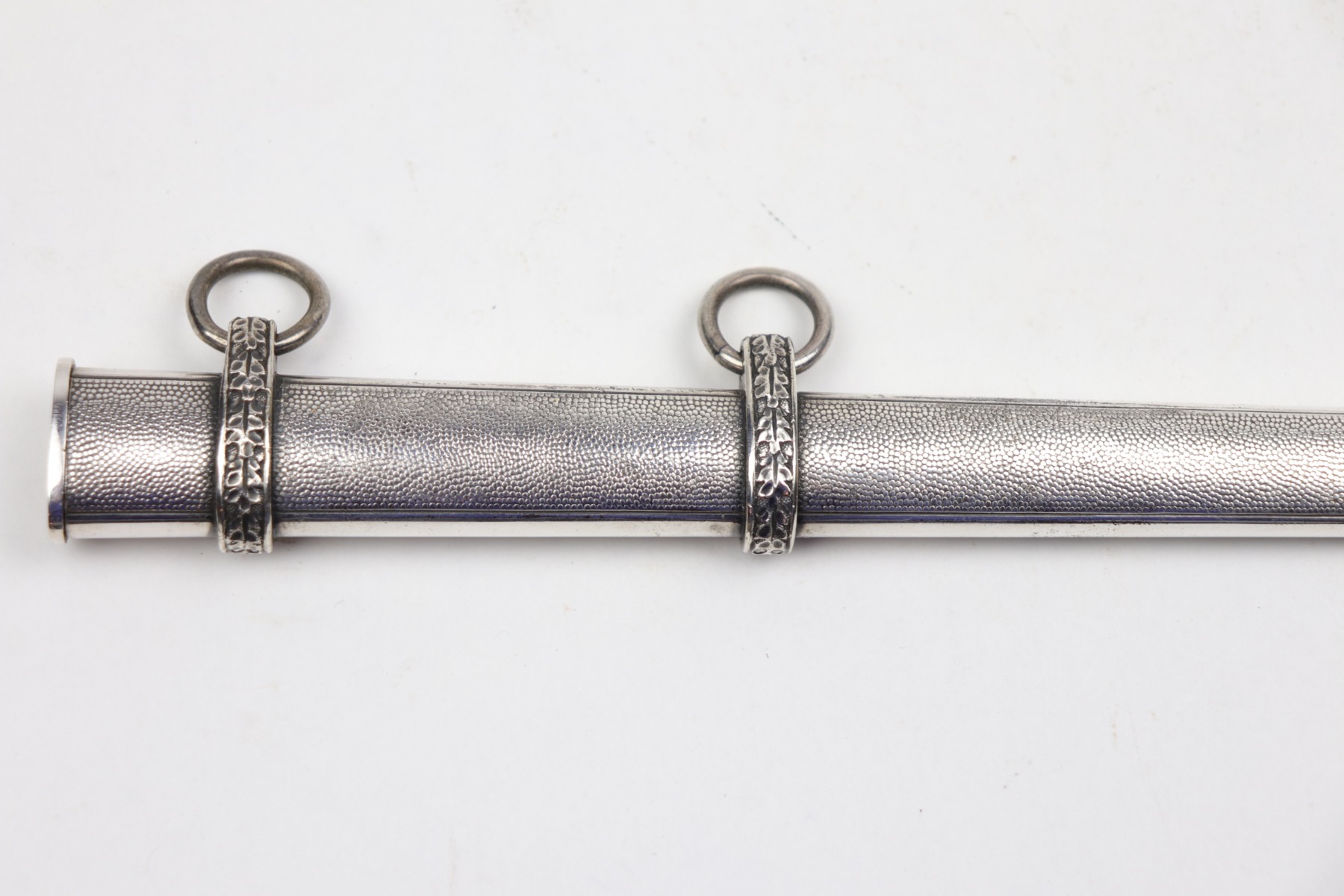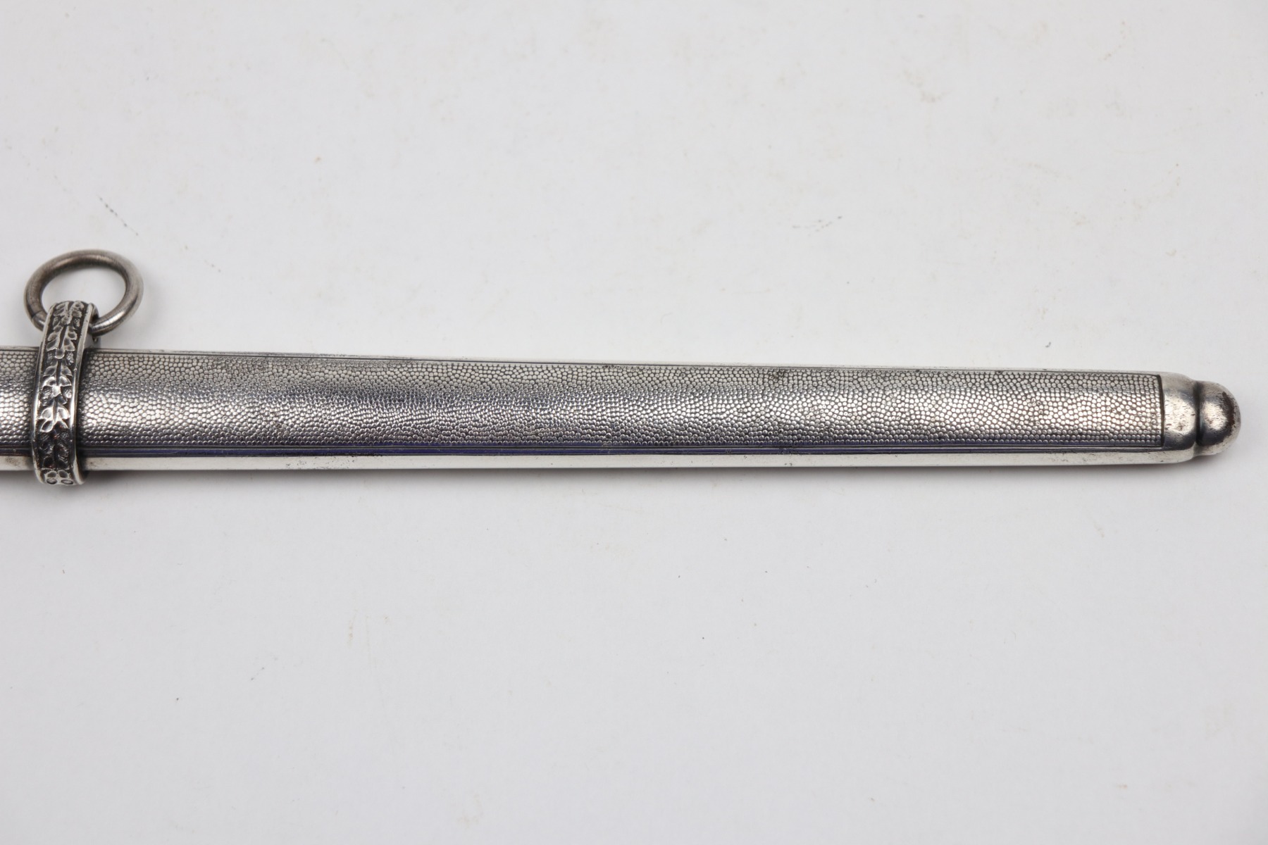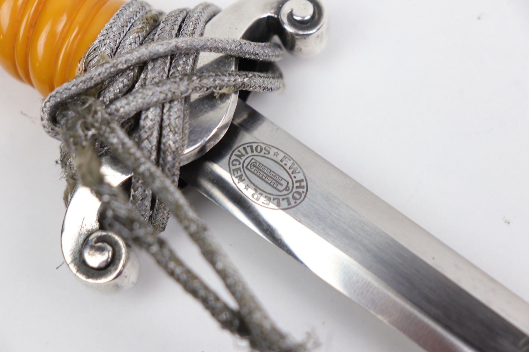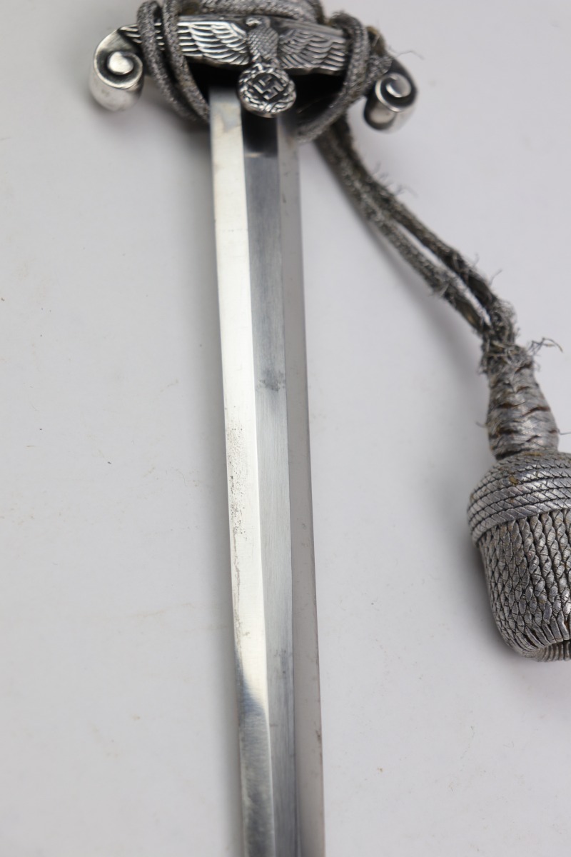 12/23/20 – This is an original, excellent condition nazi army dagger. This dagger comes with an original sheath and portepee. The dagger has a 1st variation hand guard and a burnt orange bakelite handle with no cracks or chips. The blade is excellent and very clean. Cross graining is evident and the maker marking is crisp. Only some mild surface scratching from the sheath. The portepee has some fraying, as shown. Excellent sheath with no dents or issues.