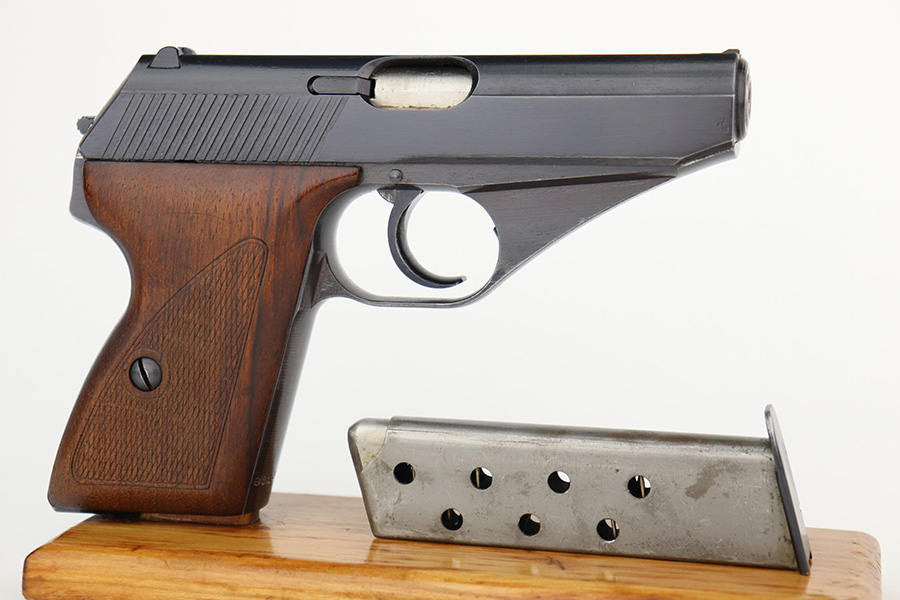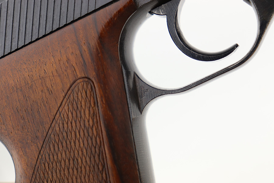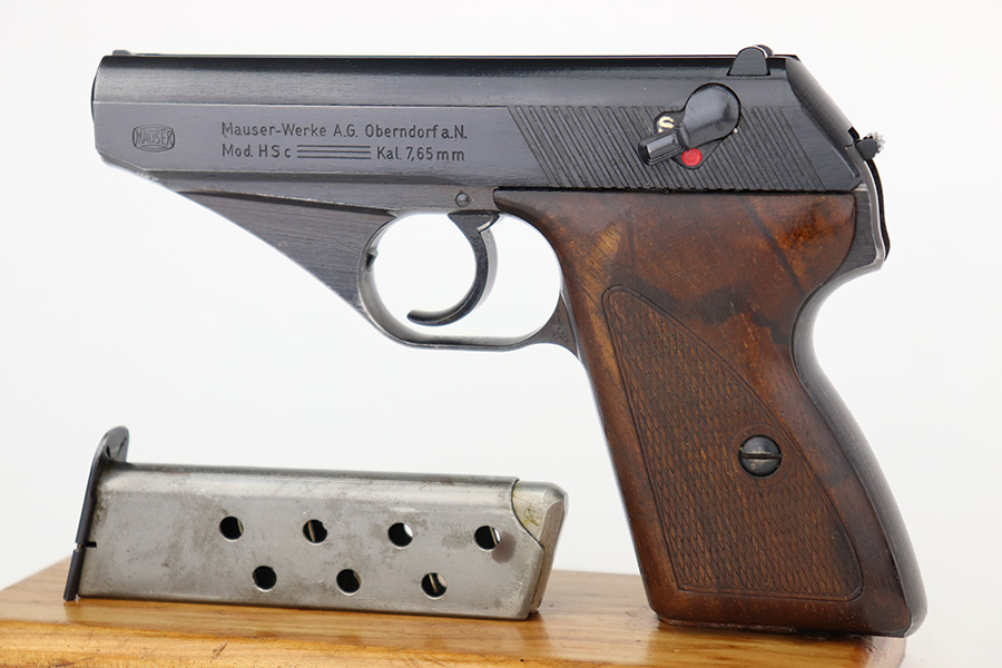 8/15/22 – This is a near-mint example of a Mauser HSC issued to the Nazi military in 1943. The gun is all matching and has the proper “Eagle 135” military acceptance proof on the left side of the trigger guard. It has retained nearly all of its original bluing with just hints of wear on the grip straps. Comes with excellent wood grips and one period-correct magazine. The bore is factory-new.