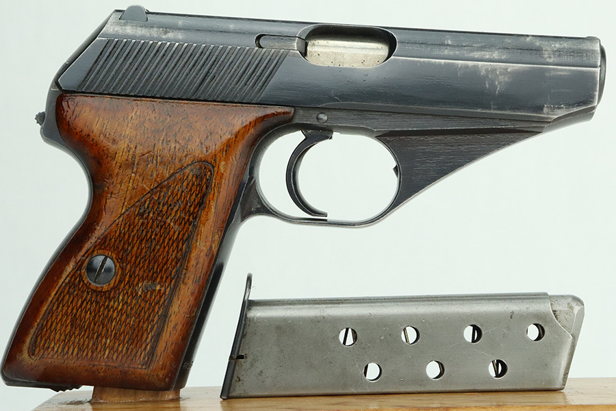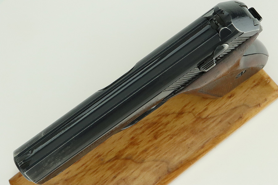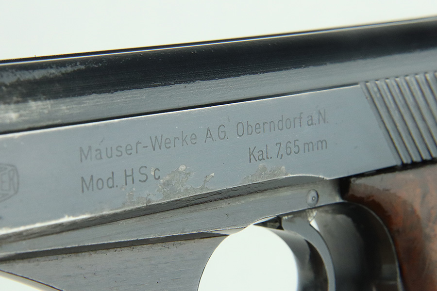 3/5/24 – This is a very nice Mauser HSC issued to the Nazi military in 1943. It is matching and has the proper “Eagle 135” military acceptance proof on the trigger guard. Its original high polish finish rates about 90% with some spotty wear on both sides of the slide, mostly around the muzzle. It is fitted with period-correct grips that have been lightly lacquered. Comes with a proper magazine. Mint bore.