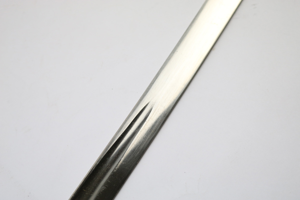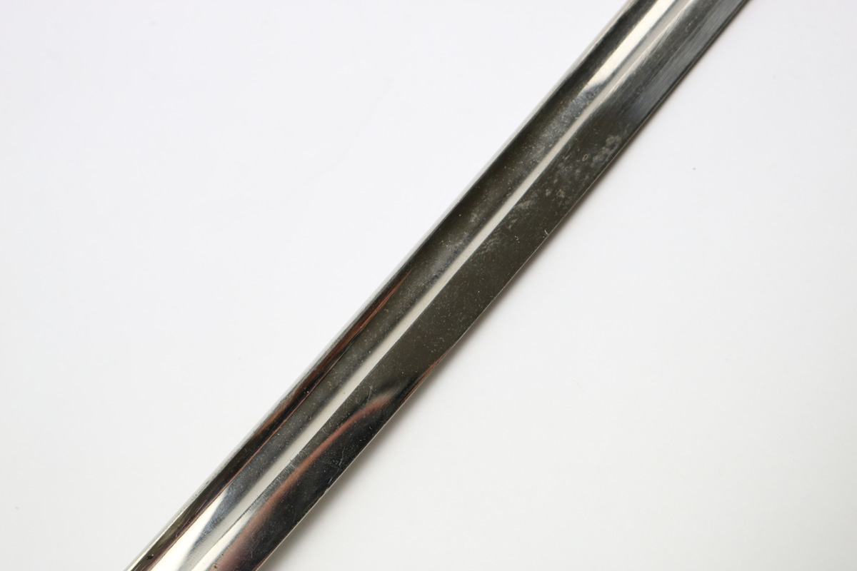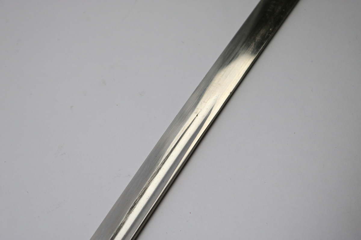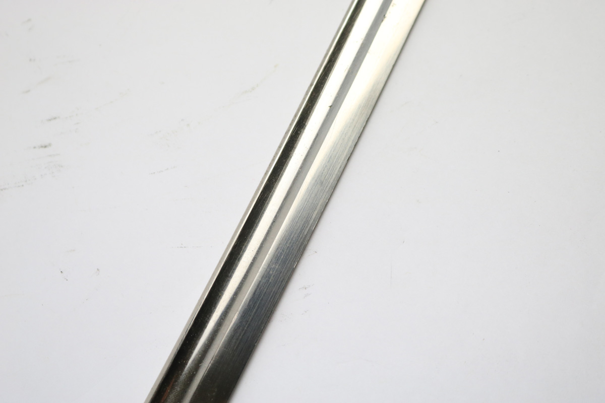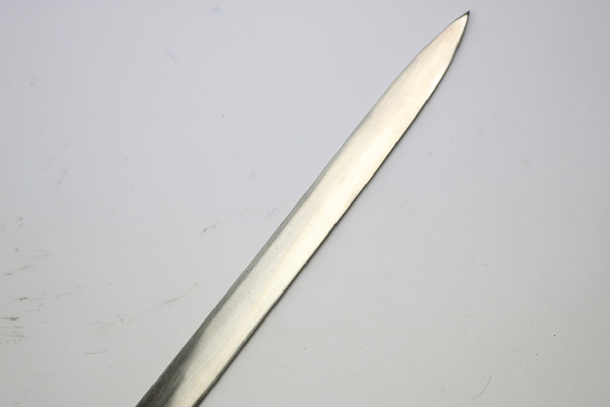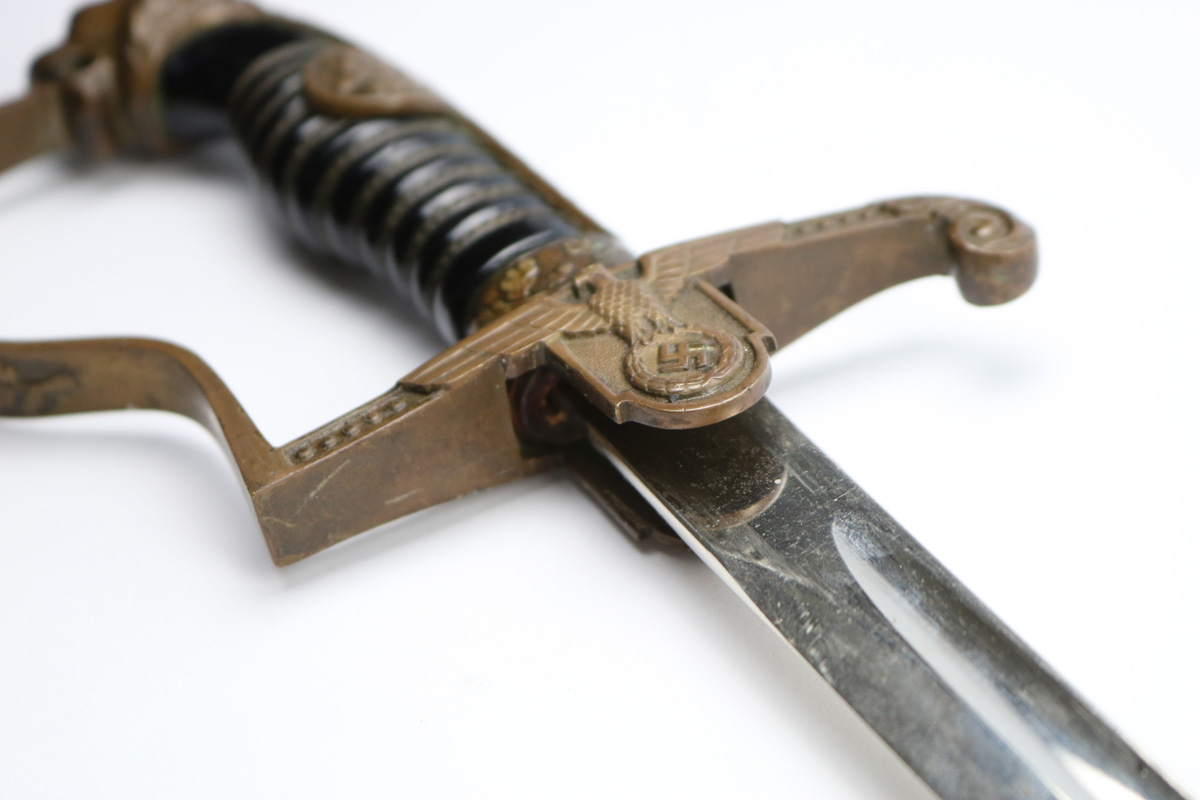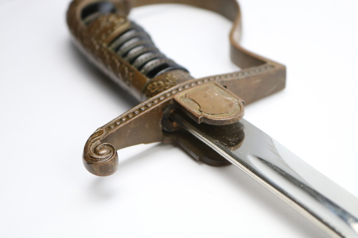 6/15/18 – Deluxe ‘Lion Head’ with red glass eyes. “Anton Wingen” manufacturer. Extra high quality with the ‘Lion Head’ handle was issued to army officers during WW2. Handle is heavily chiseled (engraved) and in excellent condition. Blade is mint bright with no defects except for some normal scabbard wear. Scabbard is black enamel feeling, but could possibly be repainted. Our guess is it has been since it’s so minty. Guaranteed original and authentic.