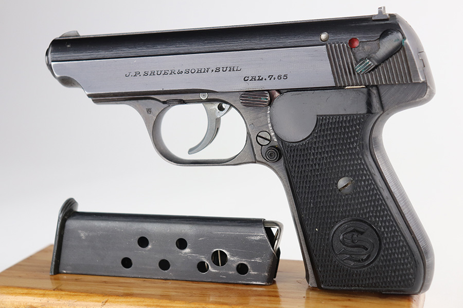 6/15/21 – This is a very nice example of a Sauer 38h issued to the Nazi military during WW2. The gun is all matching and has the proper “Eagle 37” military proof. It has retained about 93% of its original finish. There is minor thinning on the straps and a hint of wear around the muzzle. Comes with excellent grips and a period-correct magazine. The bore is mint.