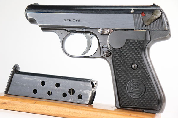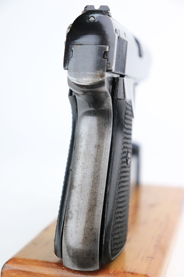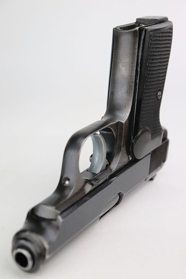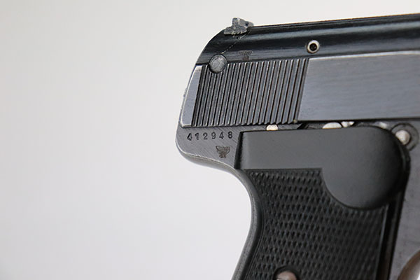 9/28/22 – This is an excellent example of a Sauer 38h issued to the Nazi military during WW2. It is all matching and has the proper “Eagle 37” military acceptance proof on the left side of the trigger guard. It has retained about 94% of its original finish. Most of the finish loss comes in the form of thinning on the grip straps, so the profile views are actually minty. Minor muzzle wear. Tiny scratch around the rear sight. Comes with nice black plastic grips and one proper magazine. The bore is near-mint. The safety lever was replaced.