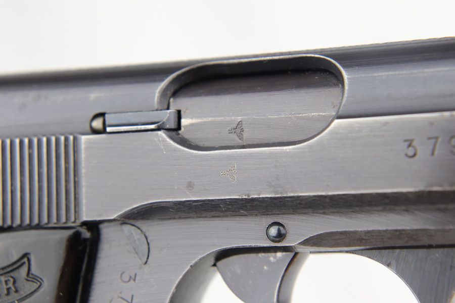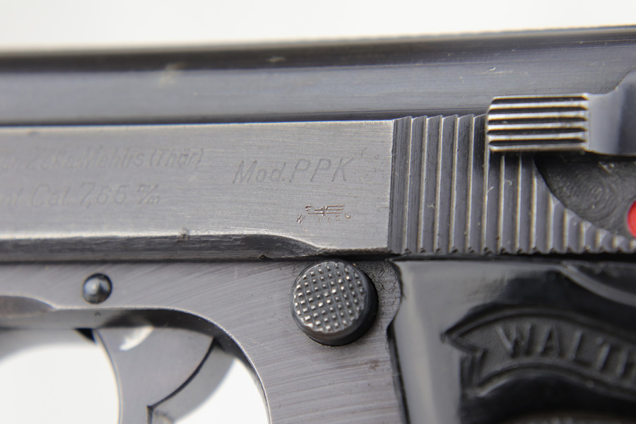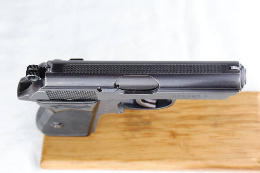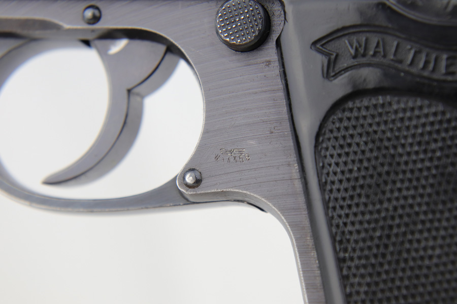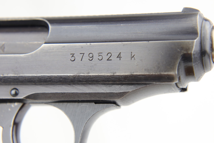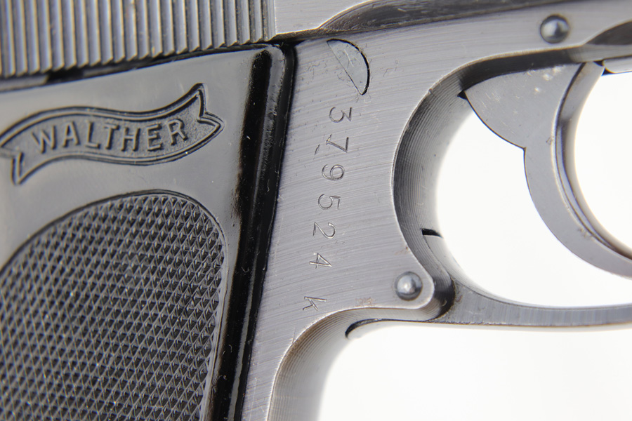 1/7/19 – This is a scarce Nazi Army issued Walther PPK from 1942. The pistol is all matching and original with about 93-94% military blue remaining. There is basic handling wear and thinning at high points. There were only ~12,500 of this third variation Army PPK produced. Very nice black grip, though it does have a small spine crack at the top. Excellent bore.