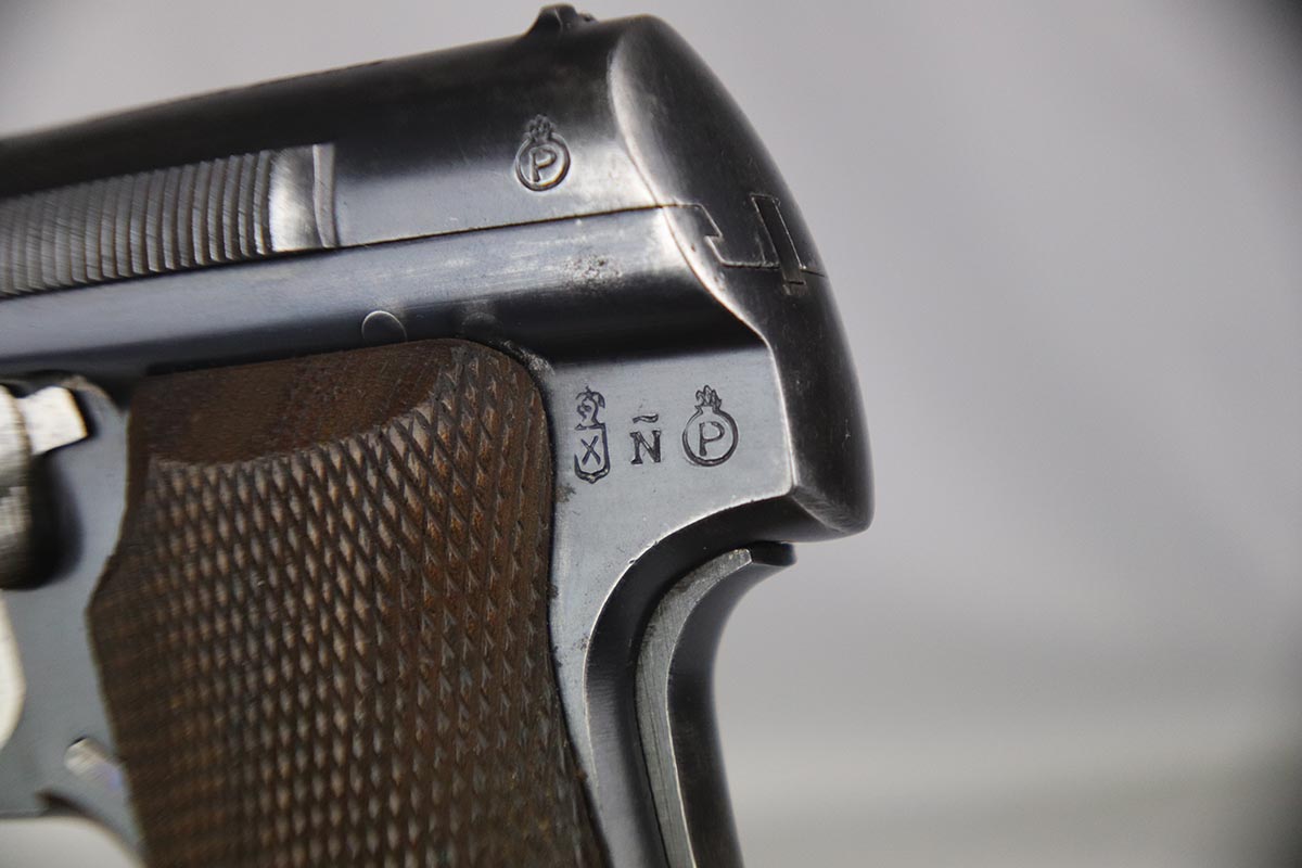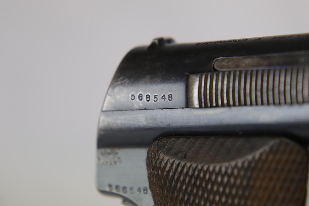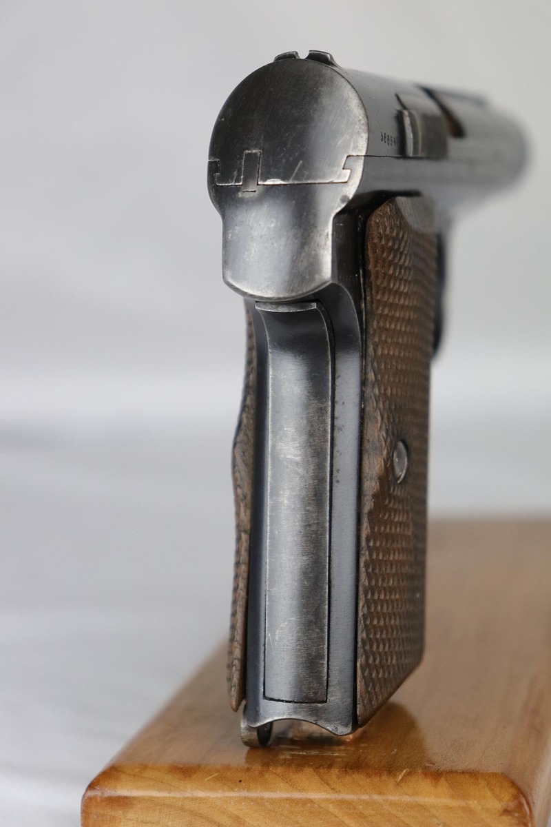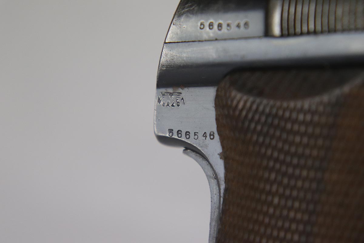 2/19/18 – This is an original and correct Nazi Astra 300 from 1942. It is WaA251 proofed on the frame, and has about 80-85% original blue, with finish wear spread evenly throughout. Axis Pistols shows this one to be part of a batch delivered on March 13, 1943. Nice grips and magazine. Strong bore that shows strong rifling and minor use.