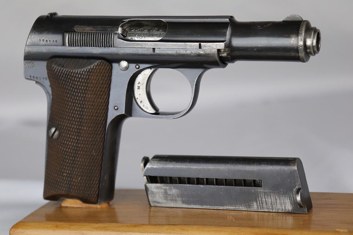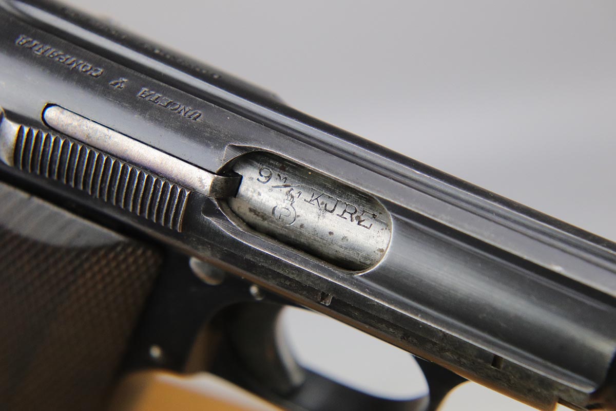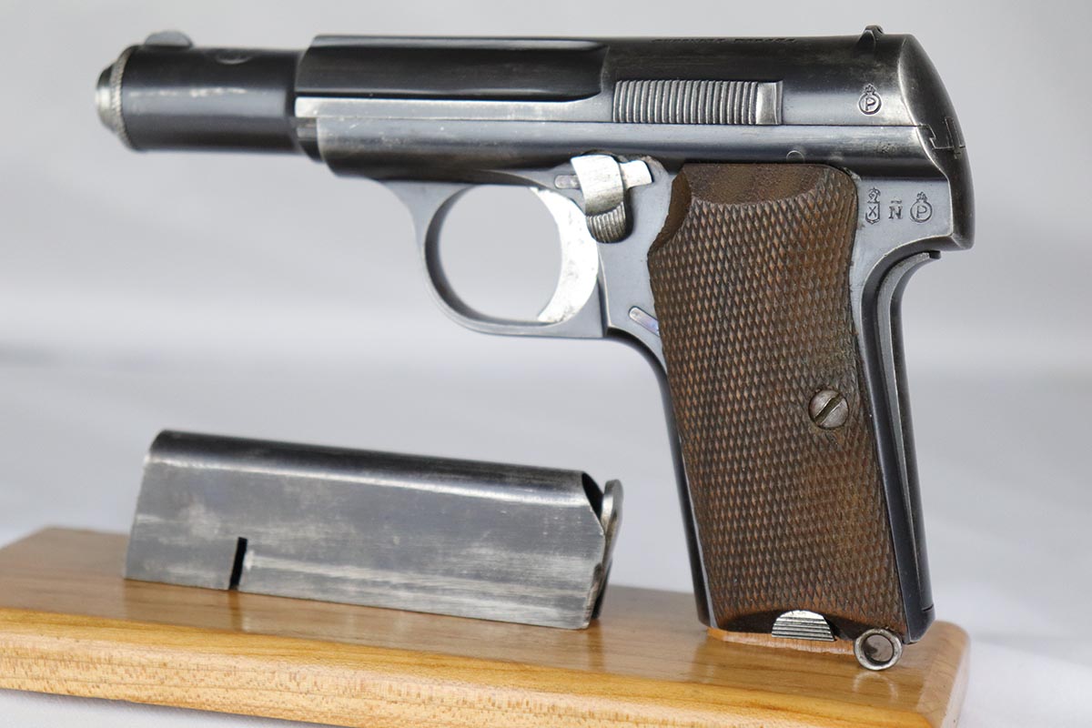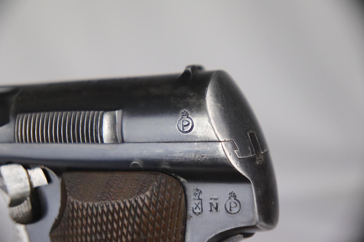 2/19/18 – This is an original and correct Nazi Astra 300 from 1942. It is WaA251 proofed on the frame, and has about 80-85% original blue, with finish wear spread evenly throughout. Axis Pistols shows this one to be part of a batch delivered on March 13, 1943. Nice grips and magazine. Strong bore that shows strong rifling and minor use.