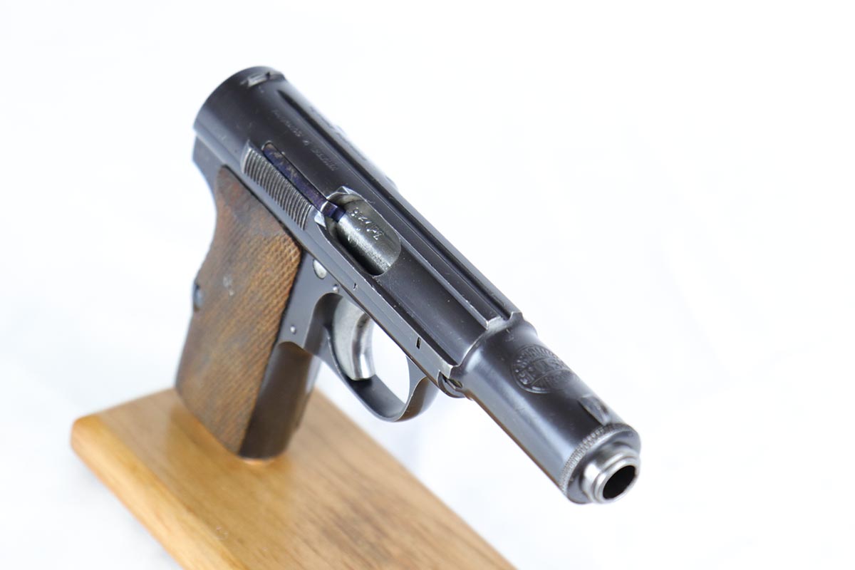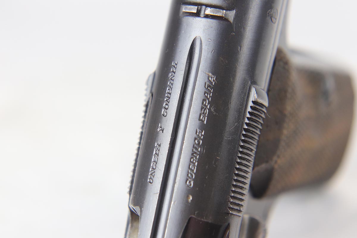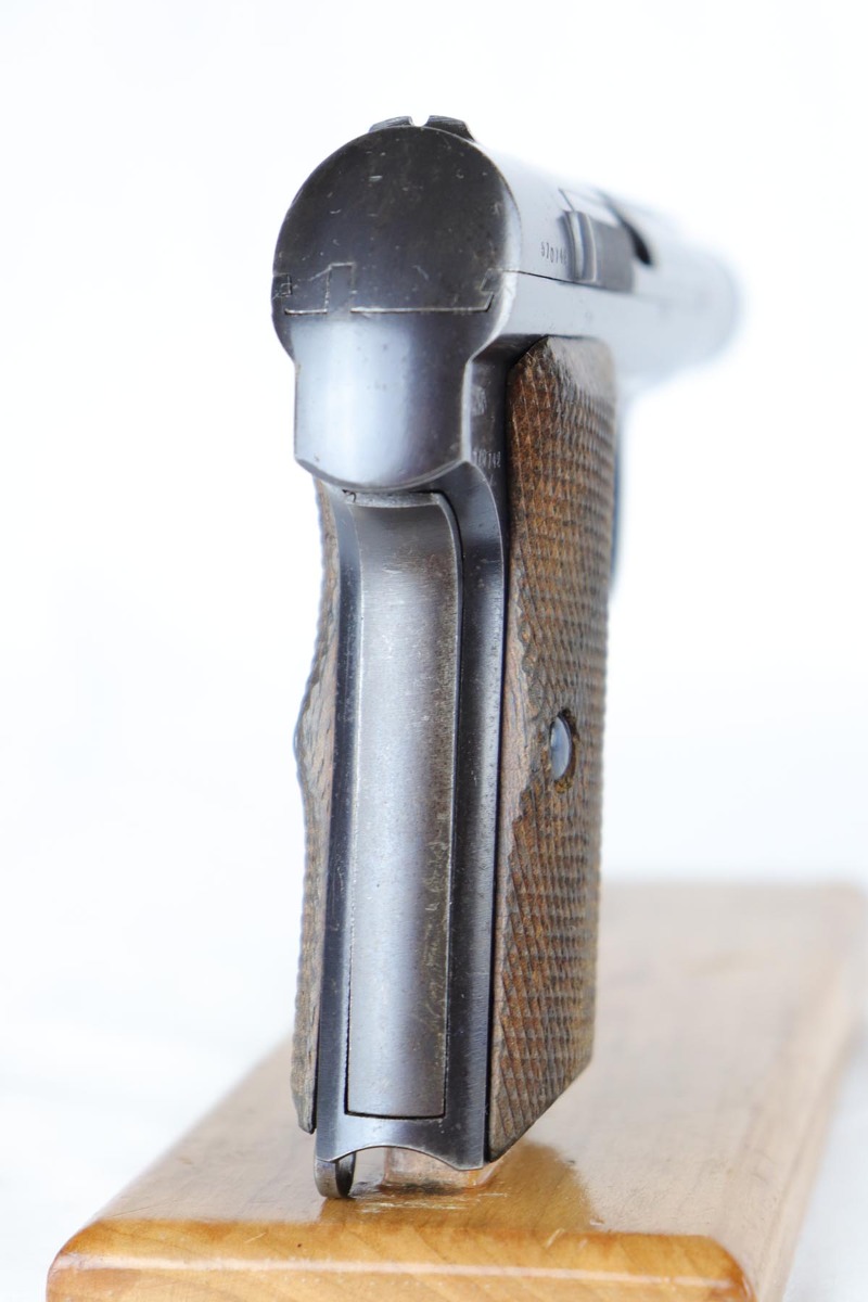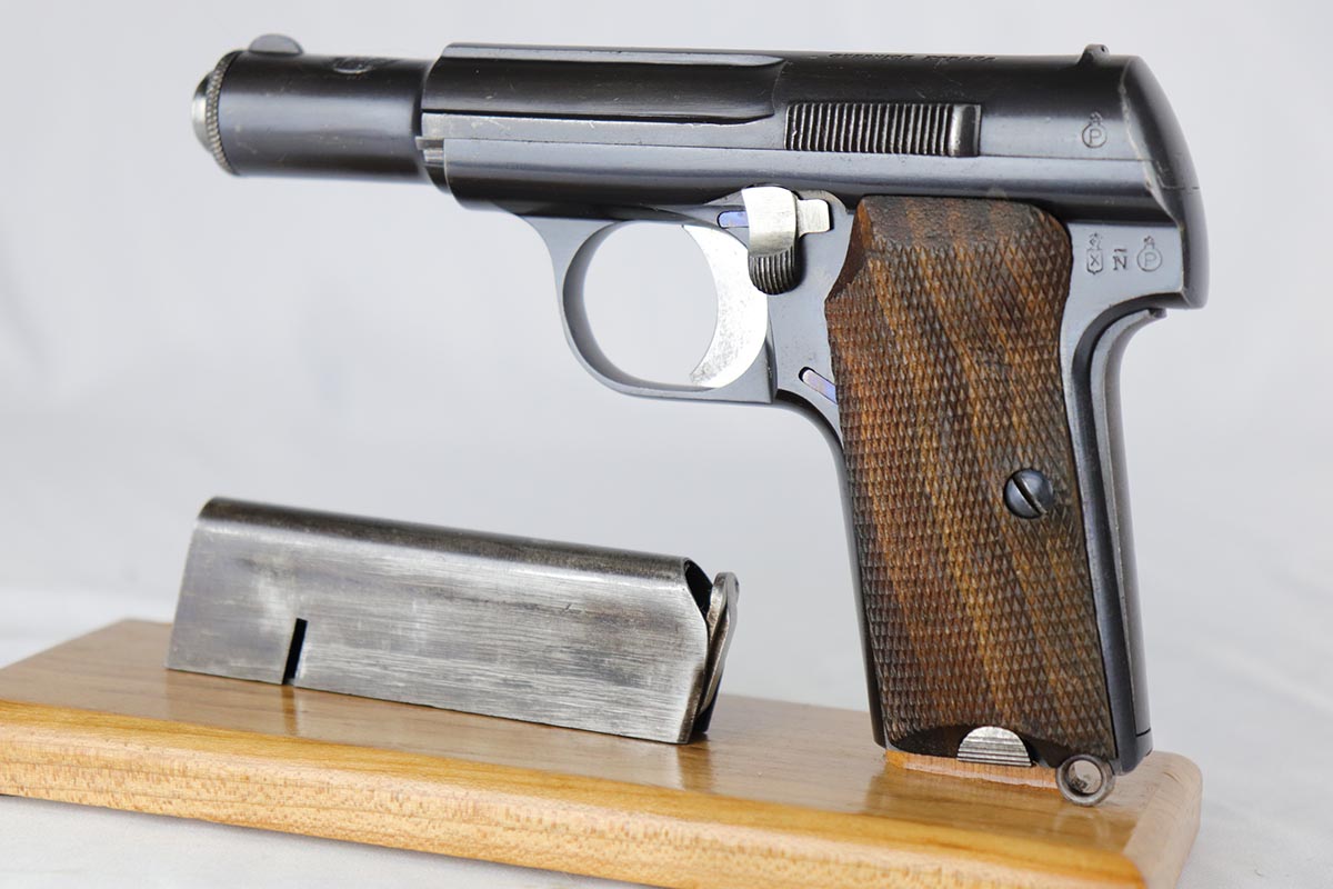 6/7/18 – This is a Nazi issued Spanish Astra 300, in all original and matching condition. The original finish rates at 95-97% with high edge thinning and some thinning to the grip safety. Fire blue still present on the L-pints and extractor. Excellent grips and minty bore.