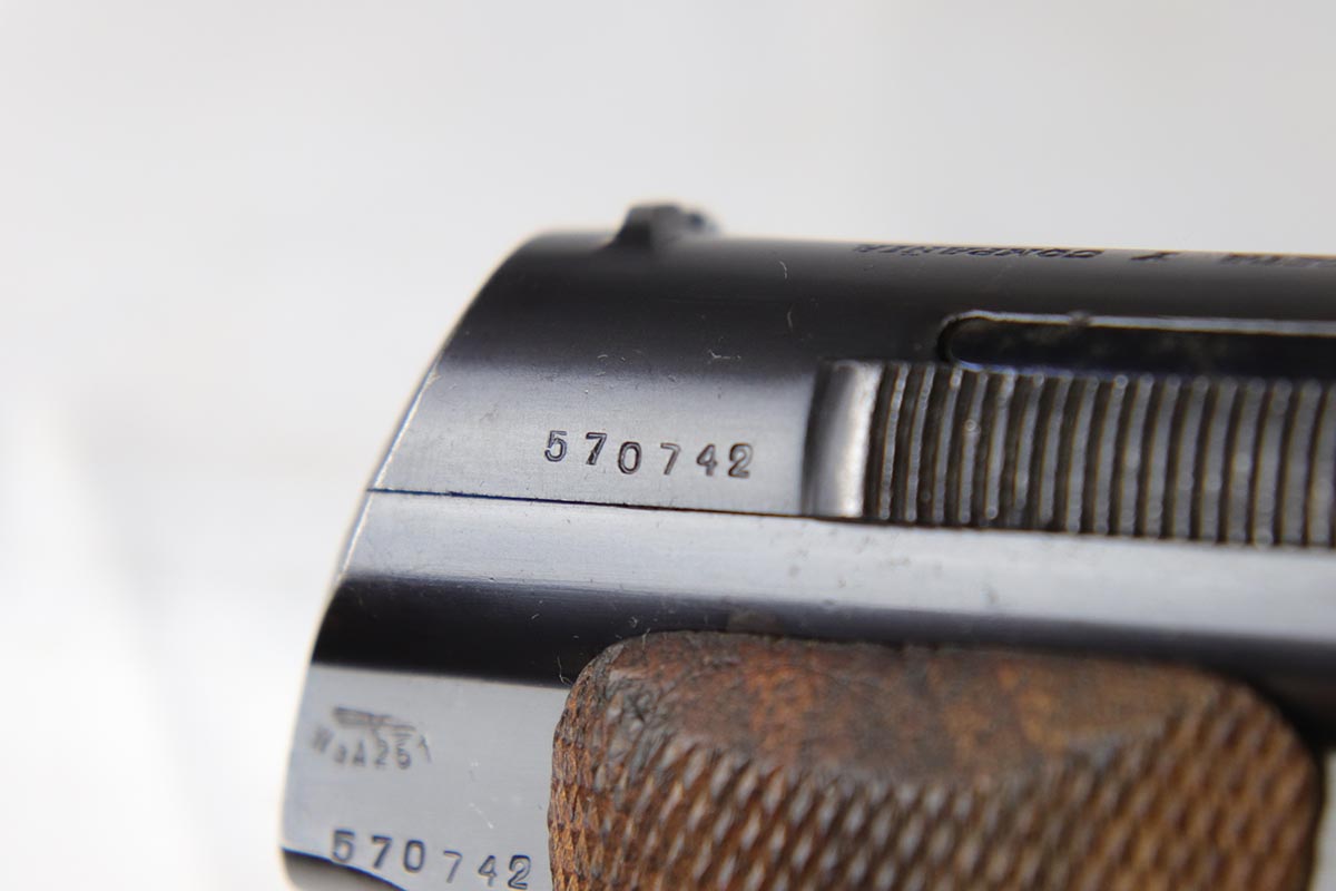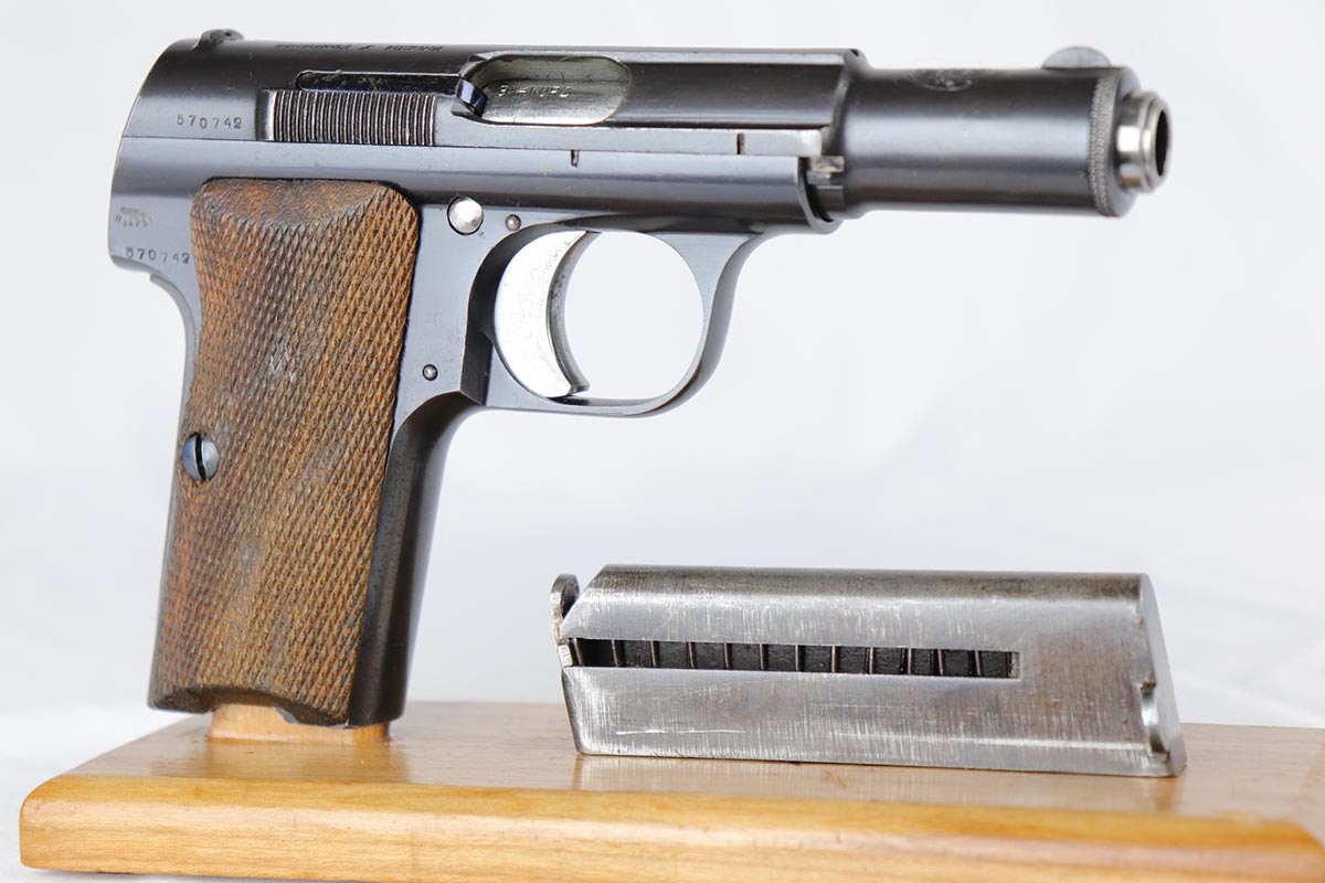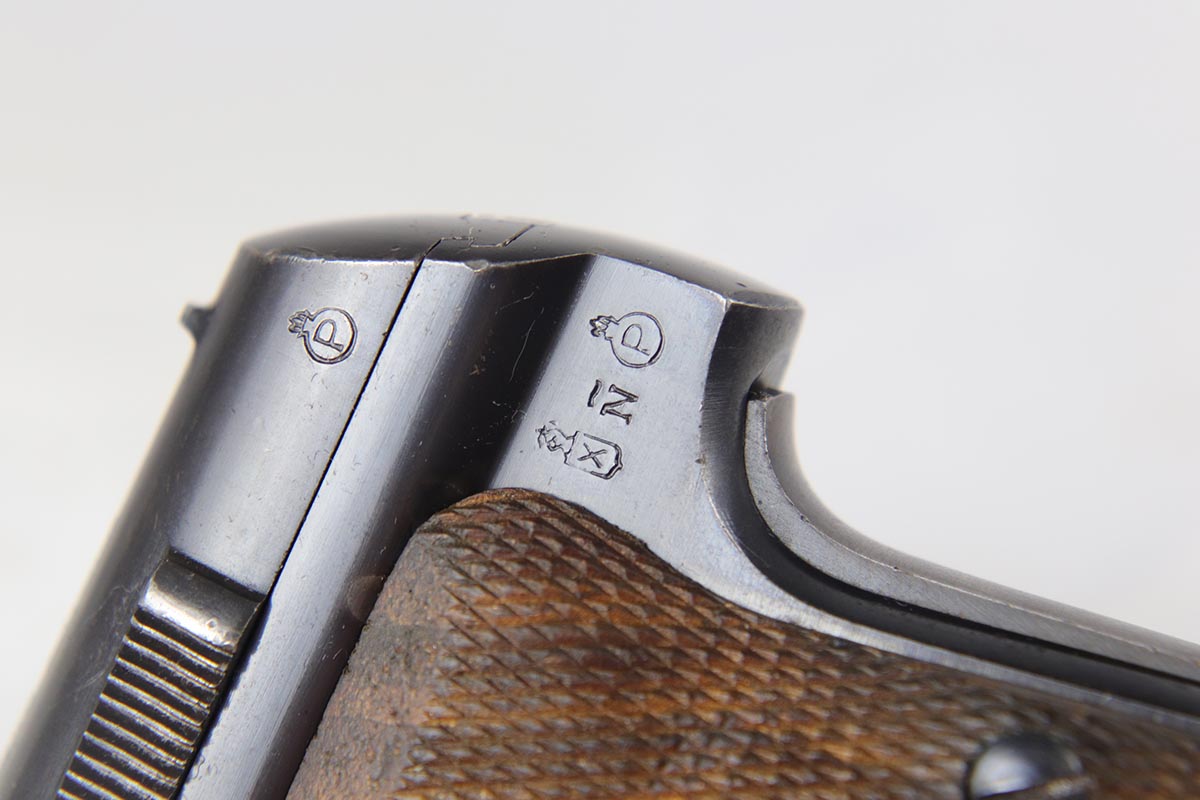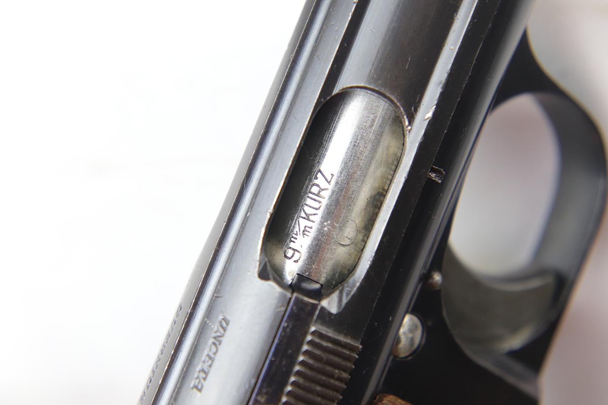 6/7/18 – This is a Nazi issued Spanish Astra 300, in all original and matching condition. The original finish rates at 95-97% with high edge thinning and some thinning to the grip safety. Fire blue still present on the L-pints and extractor. Excellent grips and minty bore.