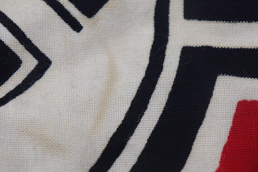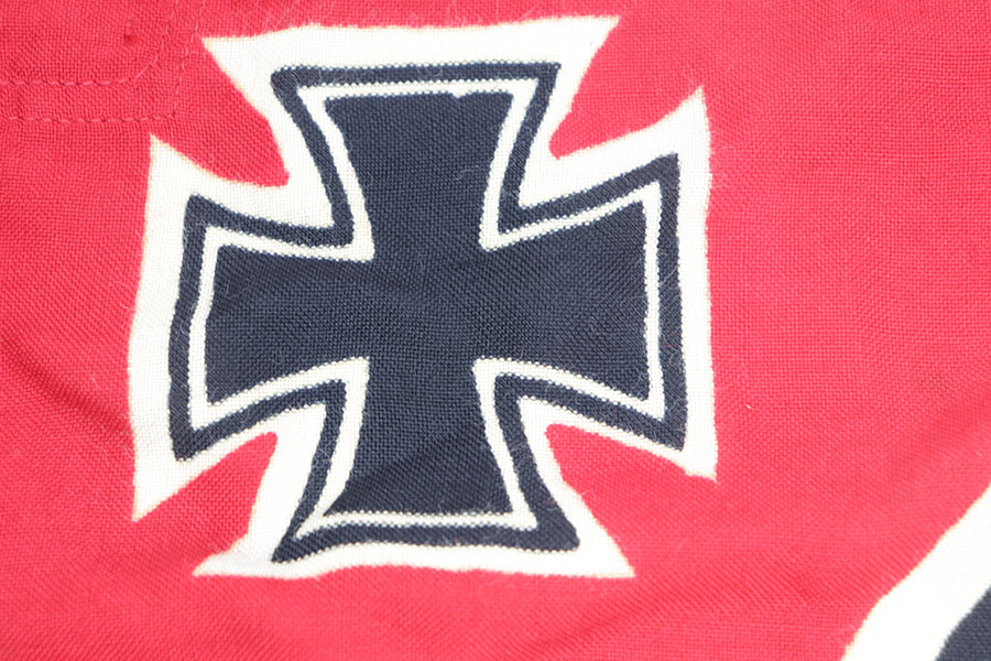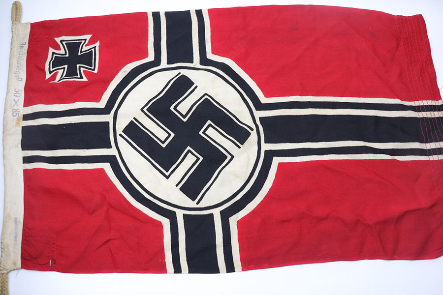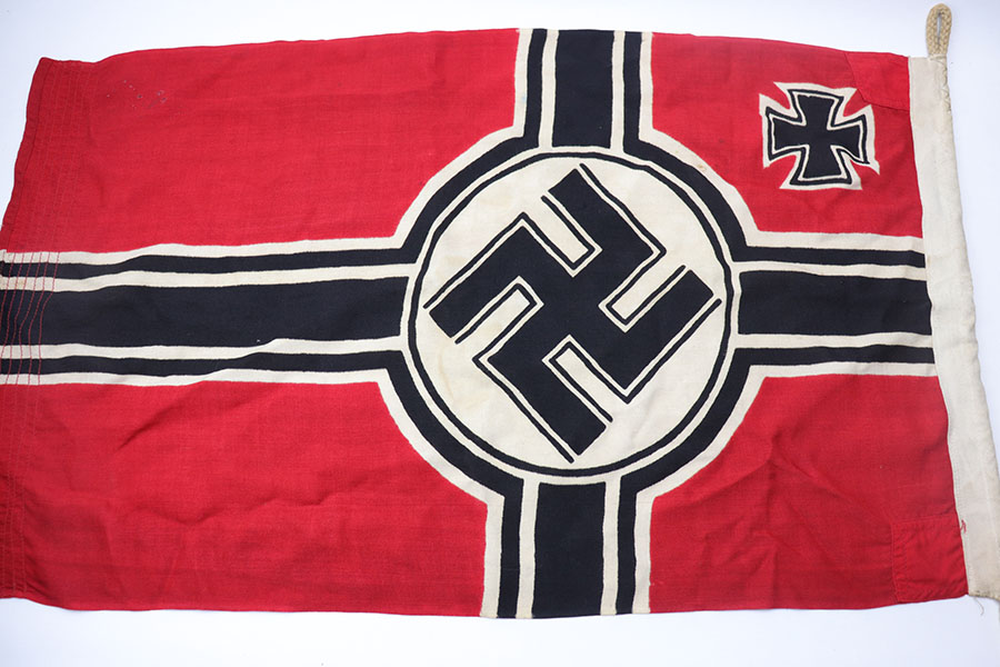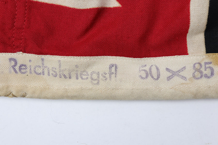 8/20/20 – This is an original, relatively small nazi battle flag from WW2. The flag is 50x85cm, roughly 19.7 x 33.5 inches. There is some mild staining in a few areas, but overall in excellent condition. original hanging rope still in tact as well. No major holes or tares. Excellent stitching throughout.