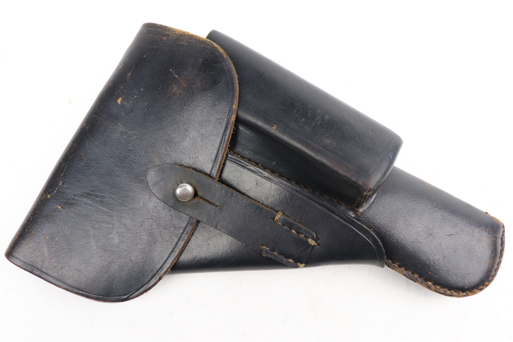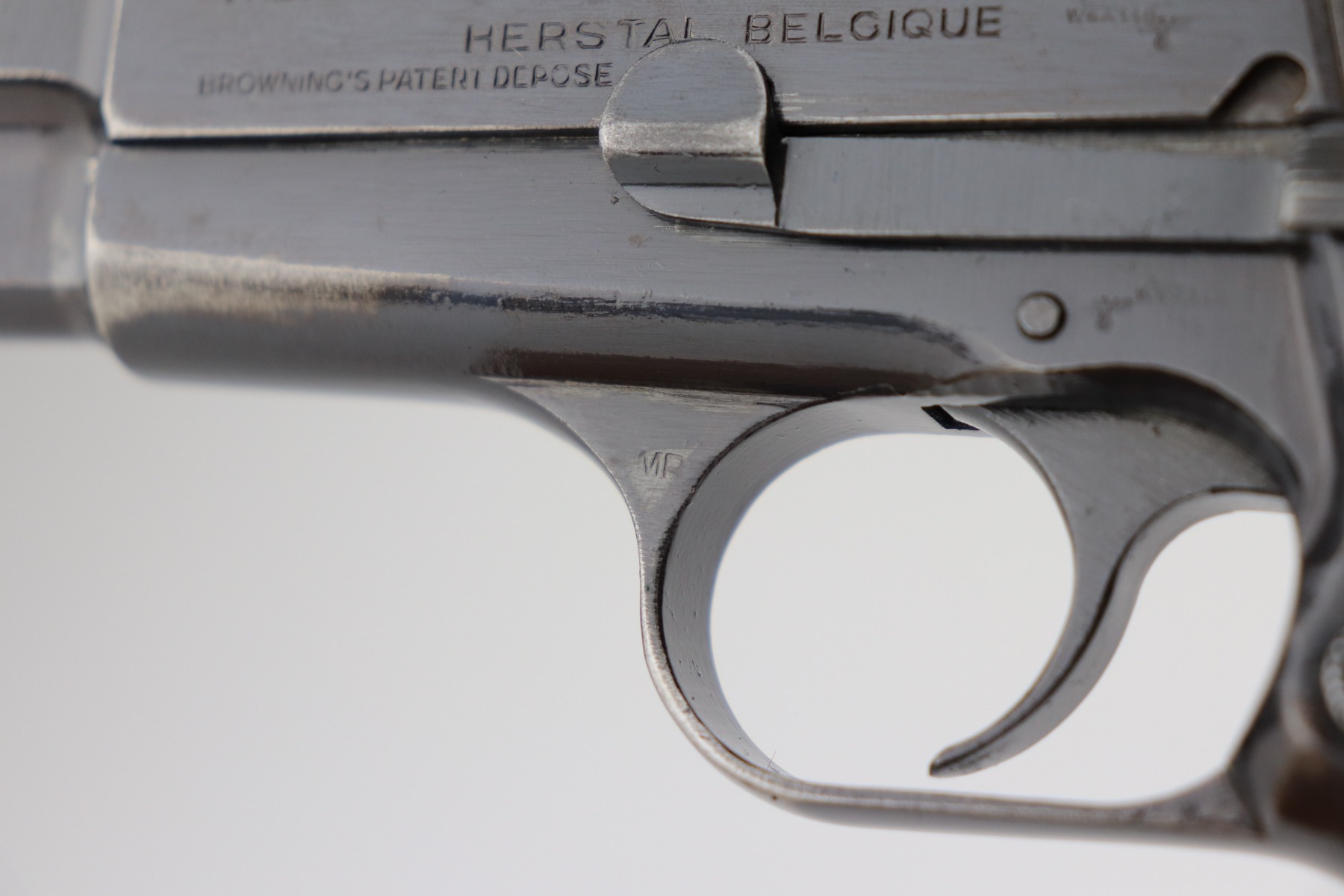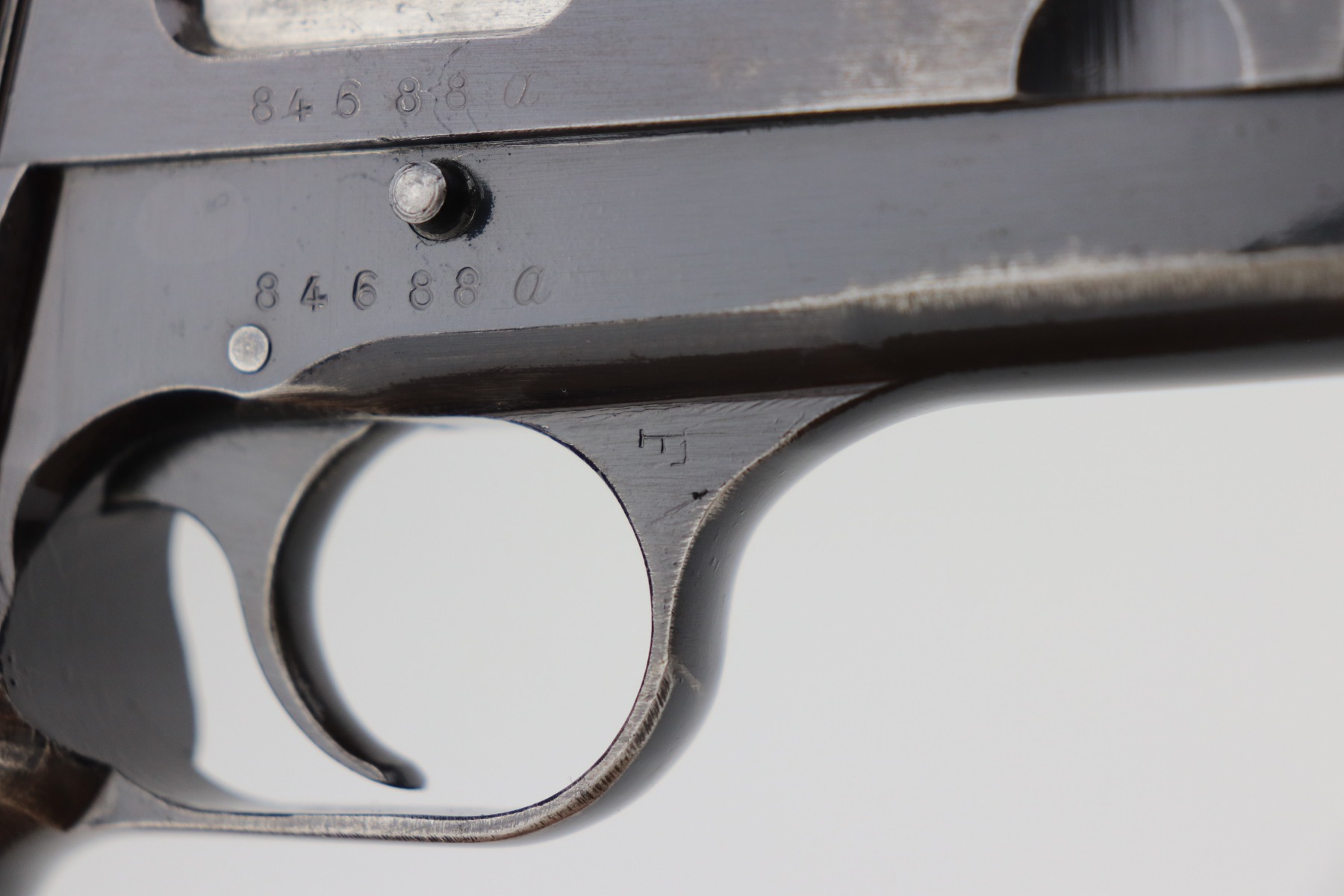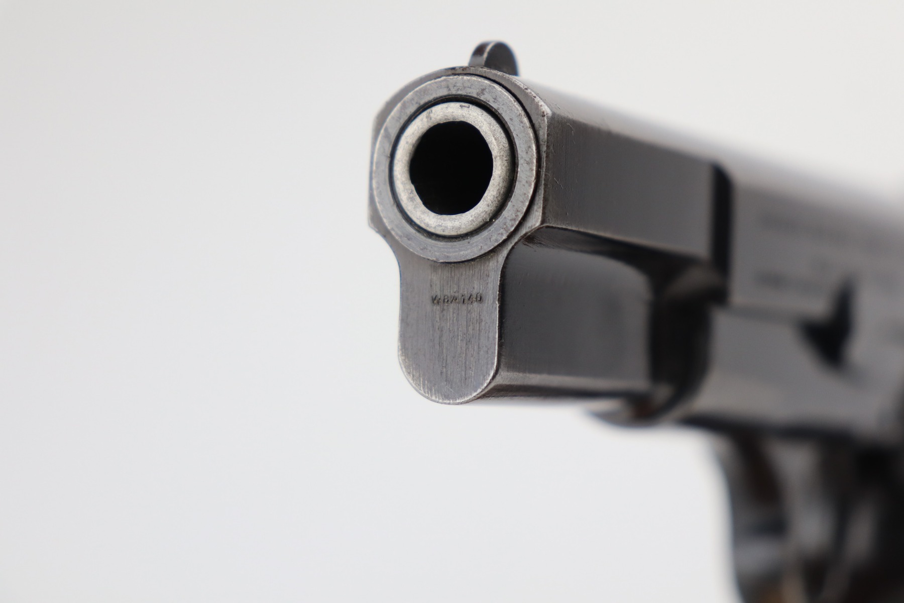 3/8/21 – This is a nice example of an FN Browning High Power Rig issued to the Nazi military during WW2. It is all matching and has the proper “Waffen 140” military proofs. It comes with a period-correct holster and an un-marked period-correct magazine. The gun has retained roughly 85% of its original finish. There is spotty wear on the front strap, around the muzzle, and on the high edges of the slide. There is also an area of wear on the right side of the slide. Brown patina on the back strap. Excellent grips. The bore is very nice with strong rifling.