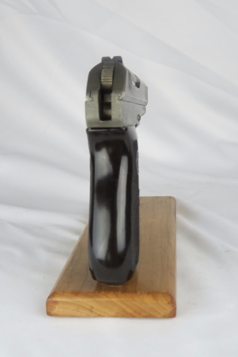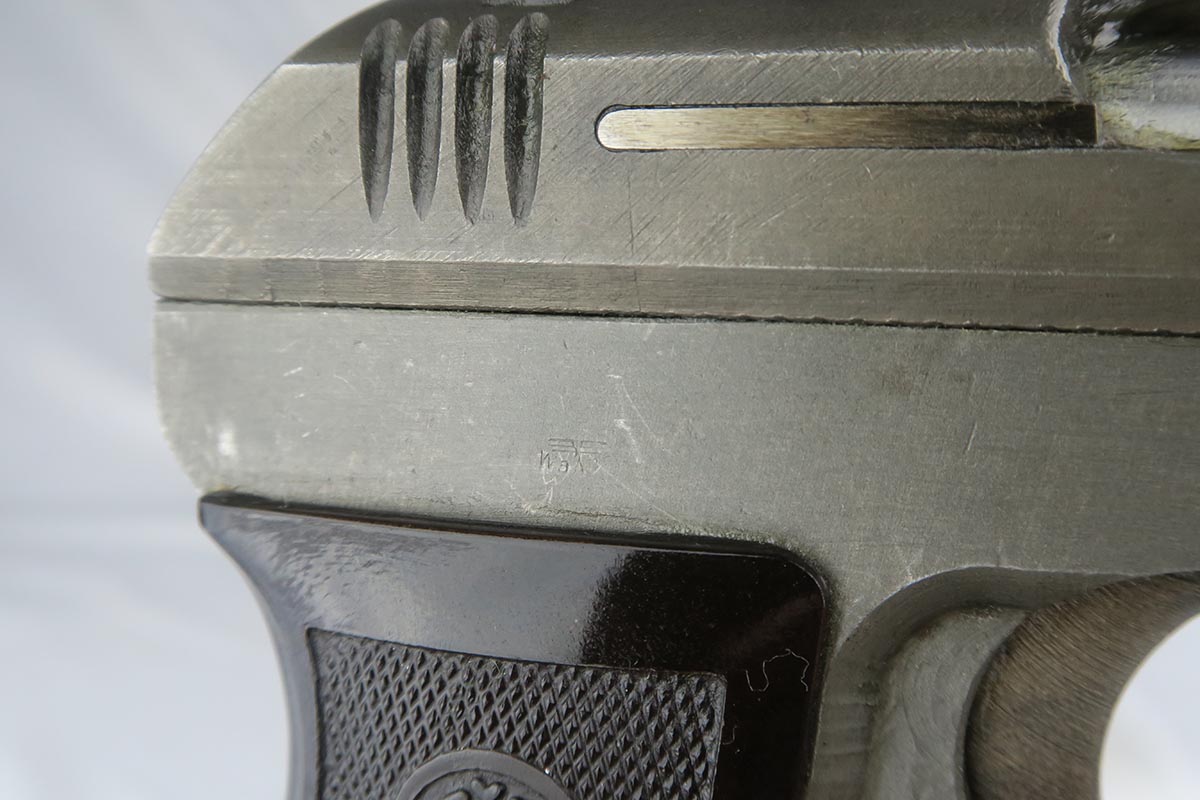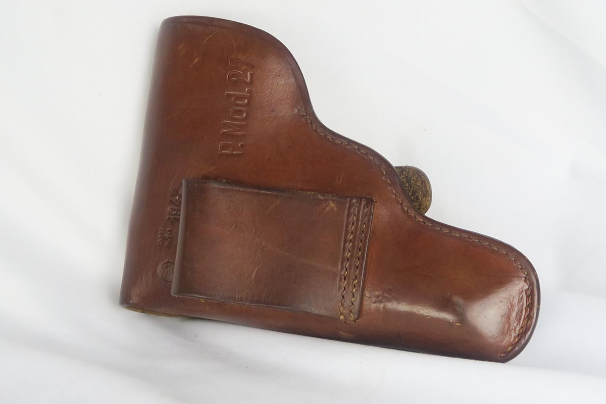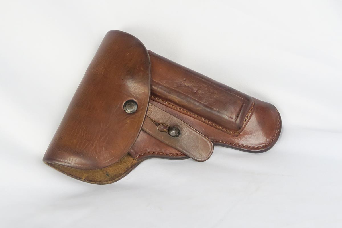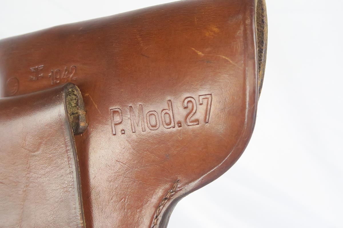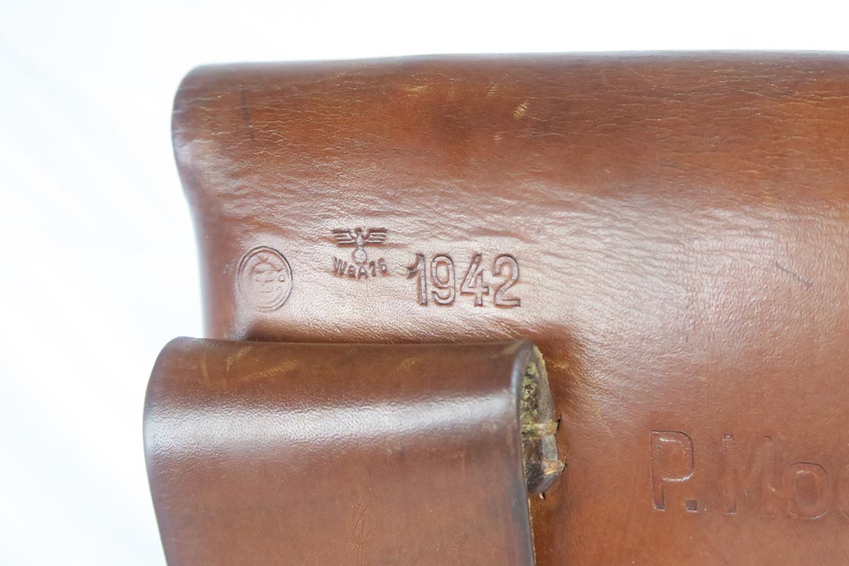 9/19/17 – This is a minty late-war CZ 27 with similarly excellent holster.  The pistol is an end-of-war phosphate variation that is in near factory new condition.  There is virtually no wear or thinning of the phosphate.  Frame is waffen proofed and matching to the slide.  Excellent grip and minty bore.  The holster is beautiful as well with nearly flawless leather.  It is 1942 dated, marked P. Mod. 27 and waffen marked.  This pairing would be very difficult to upgrade!