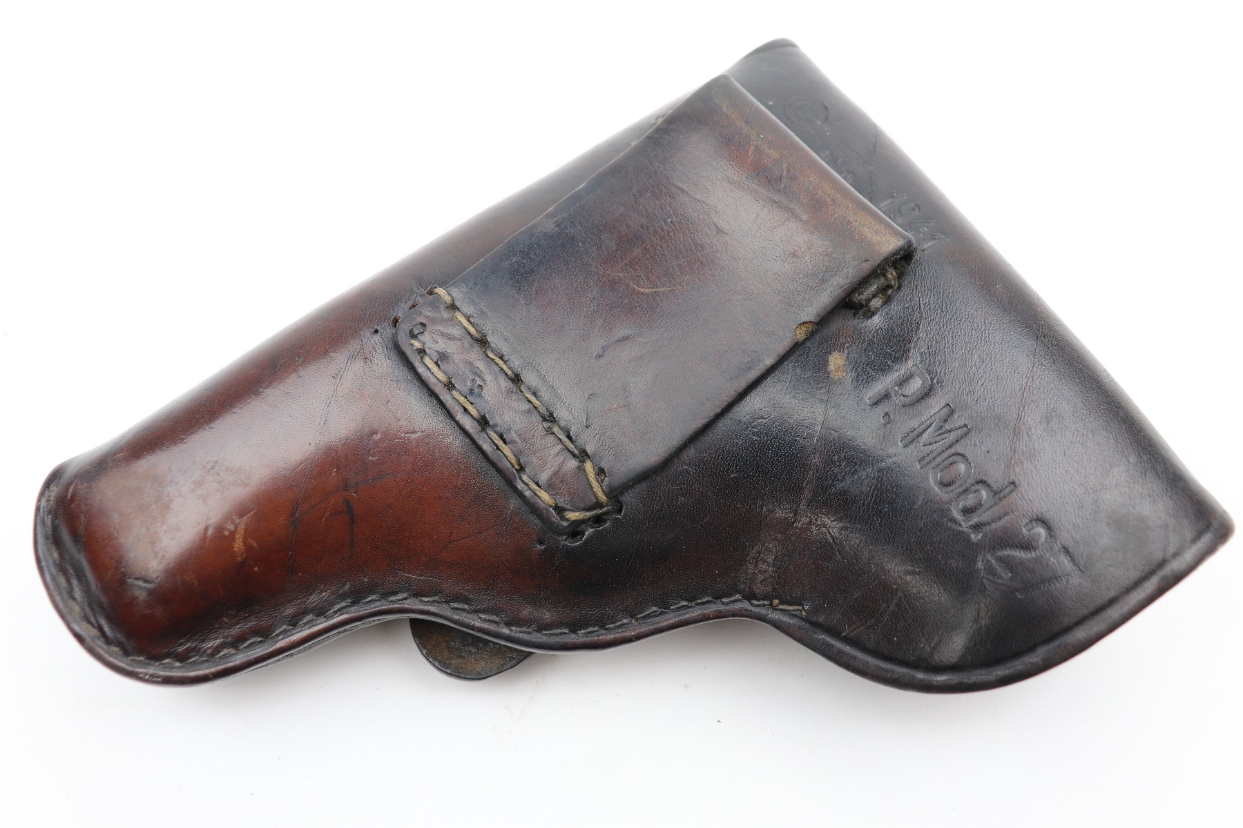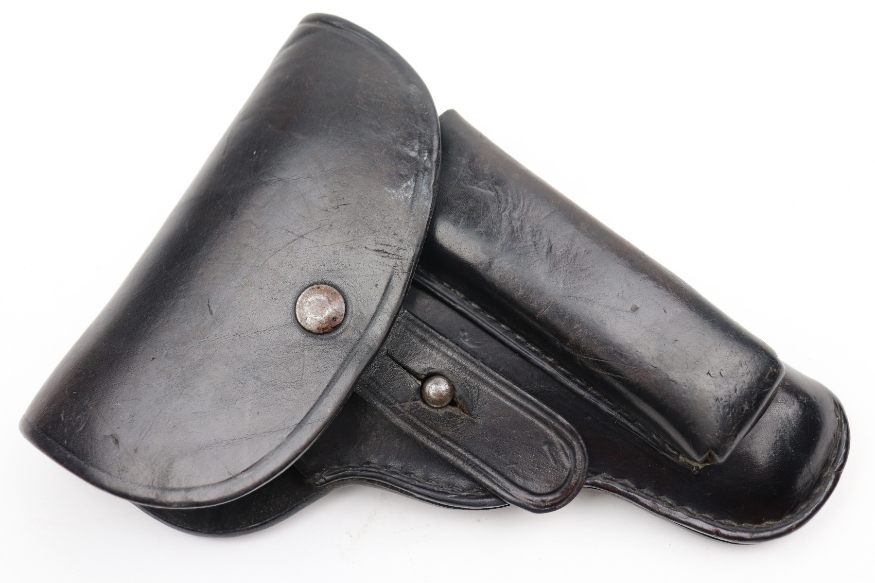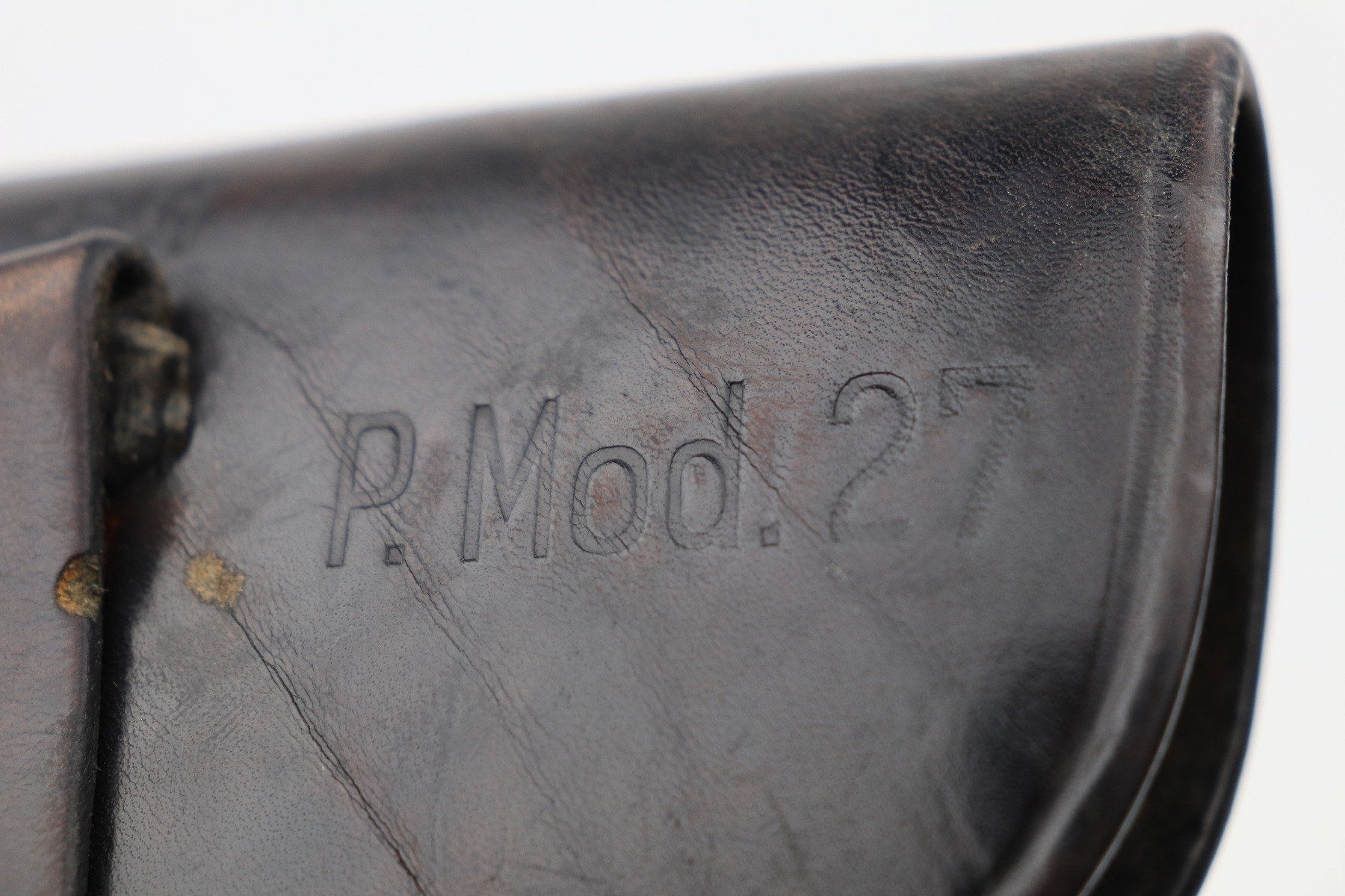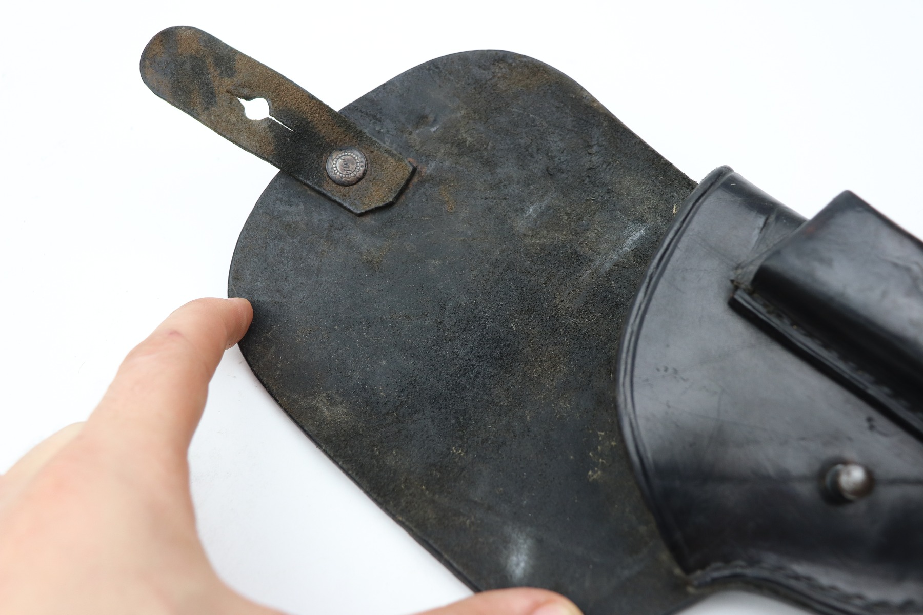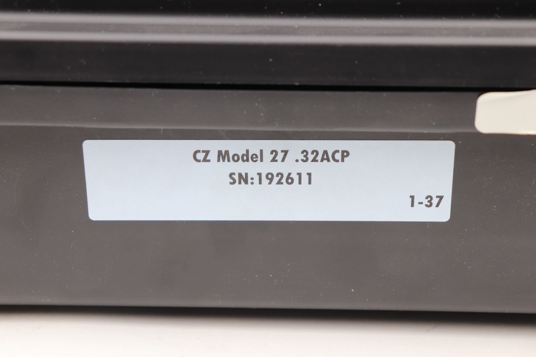 3/29/21 – This is a very nice example of a CZ 27 Rig issued to the Nazi military during WW2. The gun is all matching and has the proper waffen military proof. The rig comes with an excellent 1941-dated waffen-proofed holster, two period-correct magazines, and a custom Pelican-style hard case. The gun has retained roughly 85% of its high polish finish. There are areas of wear on the front strap and left side of the frame. Thinning and light patina on the slide throughout. Excellent grip – no cracks or chips. Excellent bore – shiny with strong rifling with very minor freckling here and there.