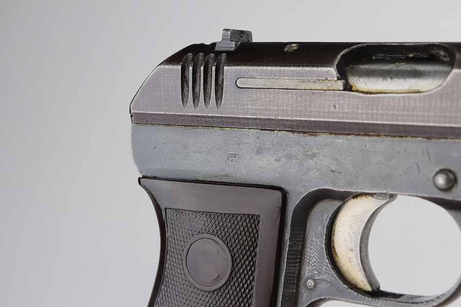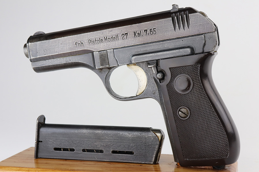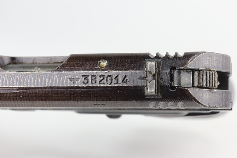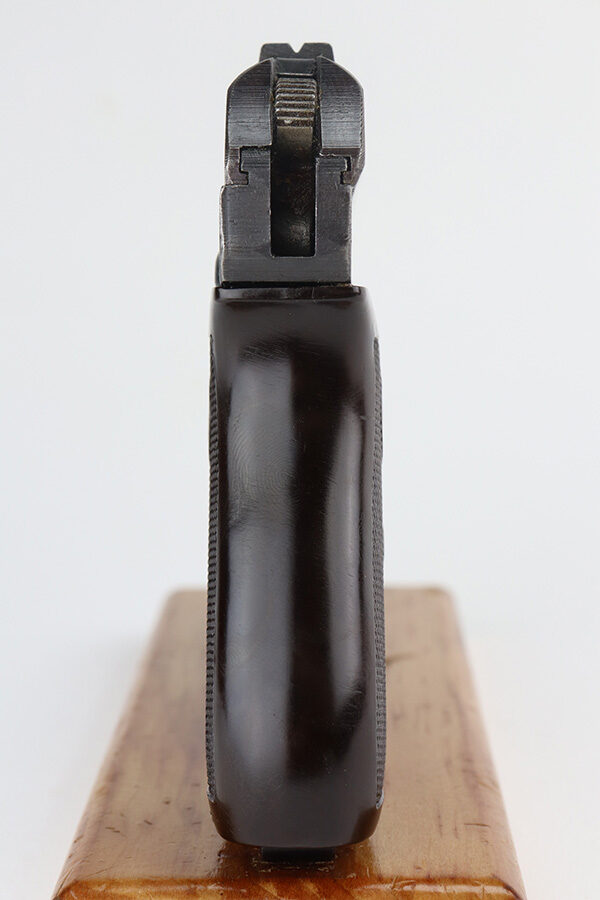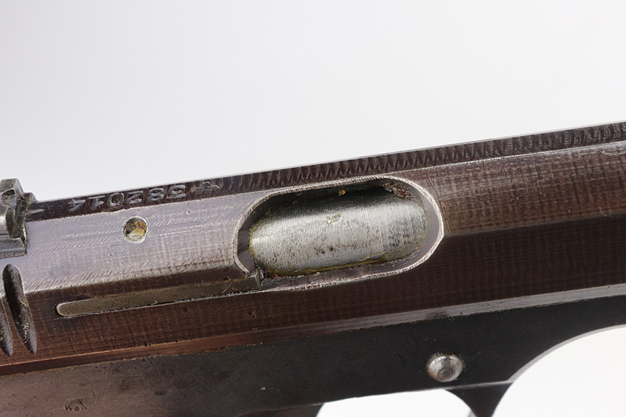 6/10/21 – This is a nice example of a CZ 27 issued to the Nazi military during WW2. It is all matching and has the proper “Waffen 76” military proof. It has retained about 75% of its original military finish. There is minor thinning throughout with a few small dots of minor oxidation here and there. Comes with a very nice grip – one very small chip in the bottom right corner. Period-correct magazine. Mint bore.