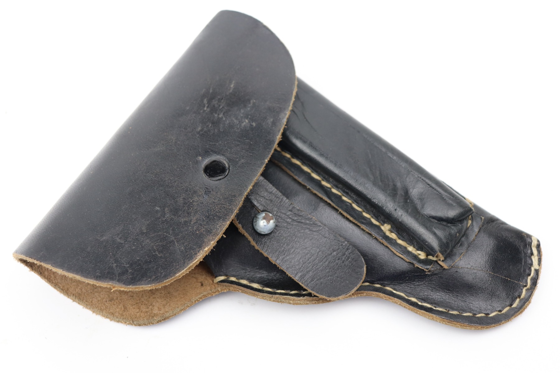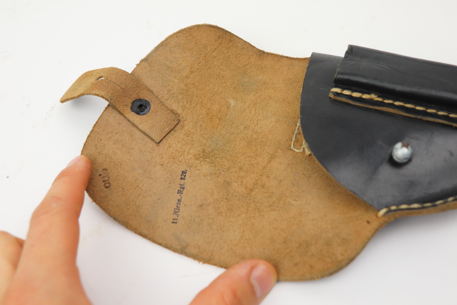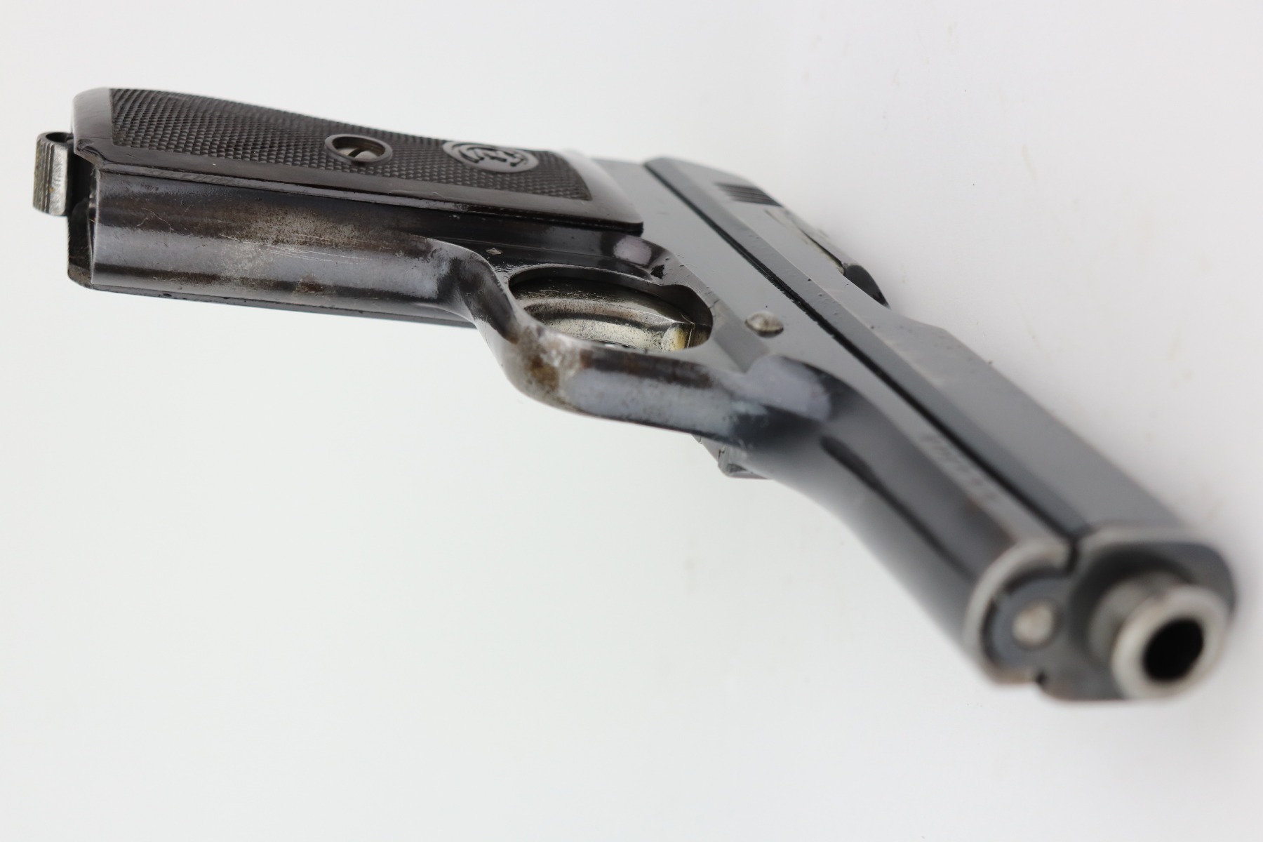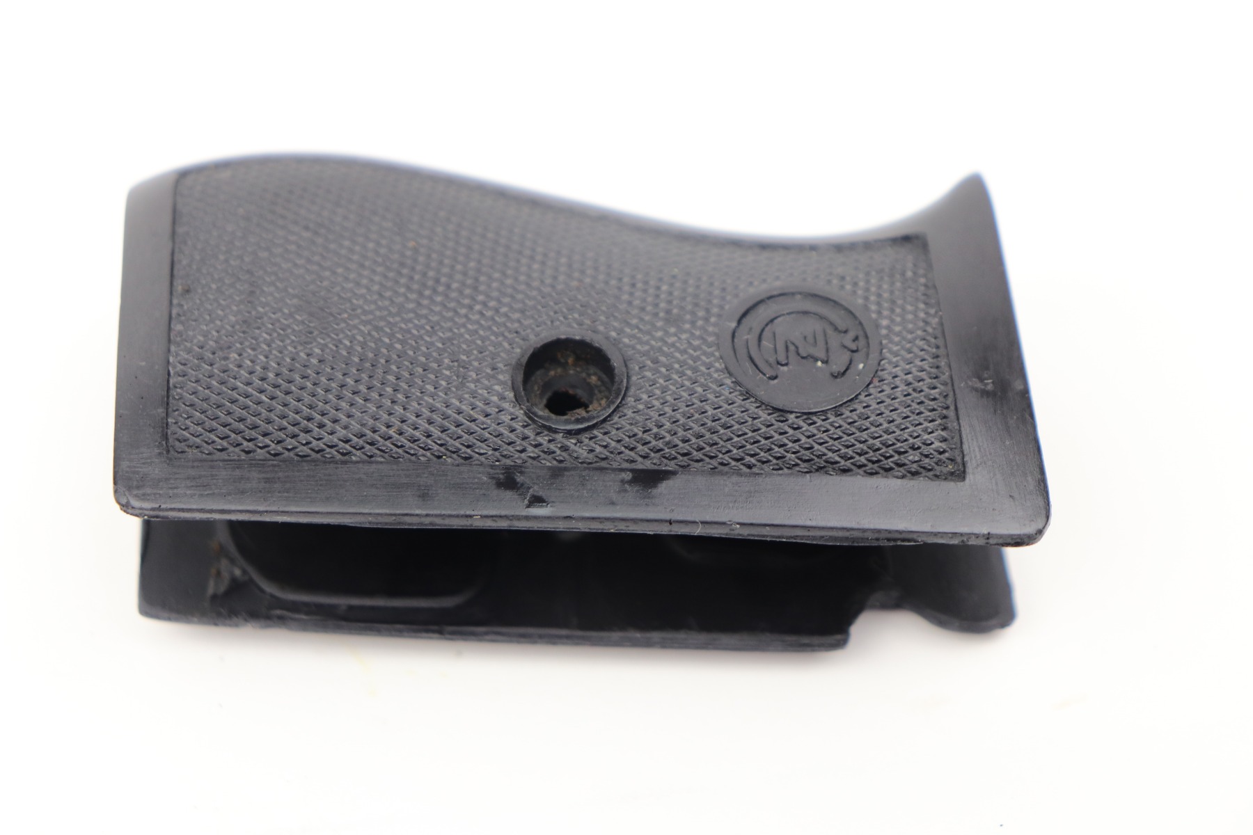 4/27/21 – This is a very nice example of a CZ 27 rig issued to the Nazi military during WW2. It is all matching and has the proper “Waffen 76” military proof. The gun comes with a nice holster, two period-correct magazines, a period-correct magazine with a Beretta finger extension, a spare post-war grip, a set of spare springs, and a very nice Pelican-style hard case. The gun has retained roughly 75-80% of its original high polish bluing. There is spotty wear and oxidation throughout, concentrated on the front strap, underside of the trigger guard, and the high edges of the slide. Comes with a nice grip that is chipped in the bottom corners. Mint bore.