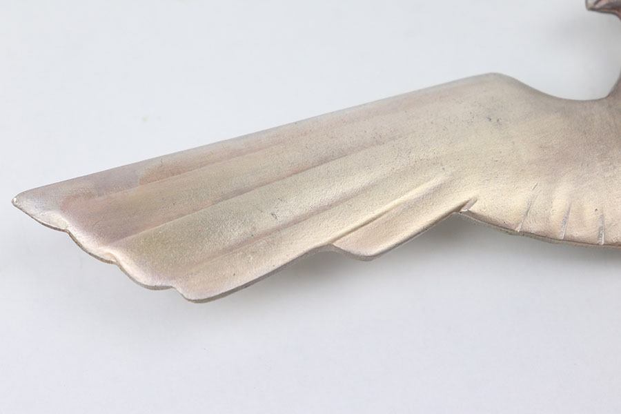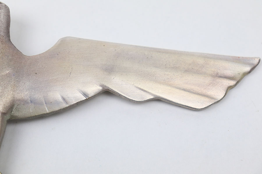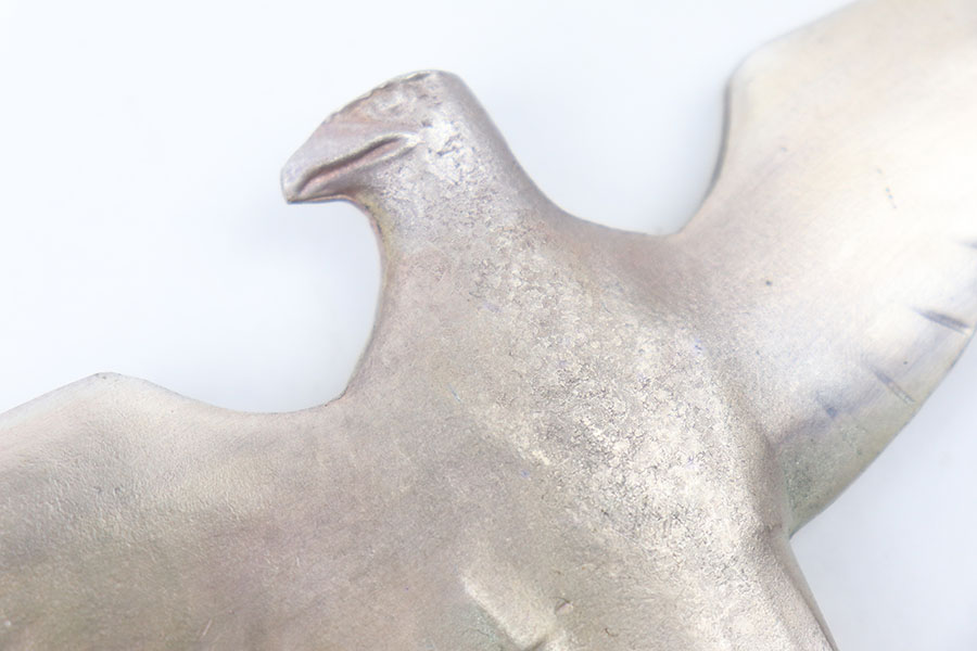 11/4/21 – This is a WW2 era Nazi eagle emblem / wall plaque. The eagle is metal construction, non magnetic, and weighs about 11oz (312g). The wingspan is about 9.25 inches. Height is about 5 inches. There is some mild patina but no major rust or pitting.