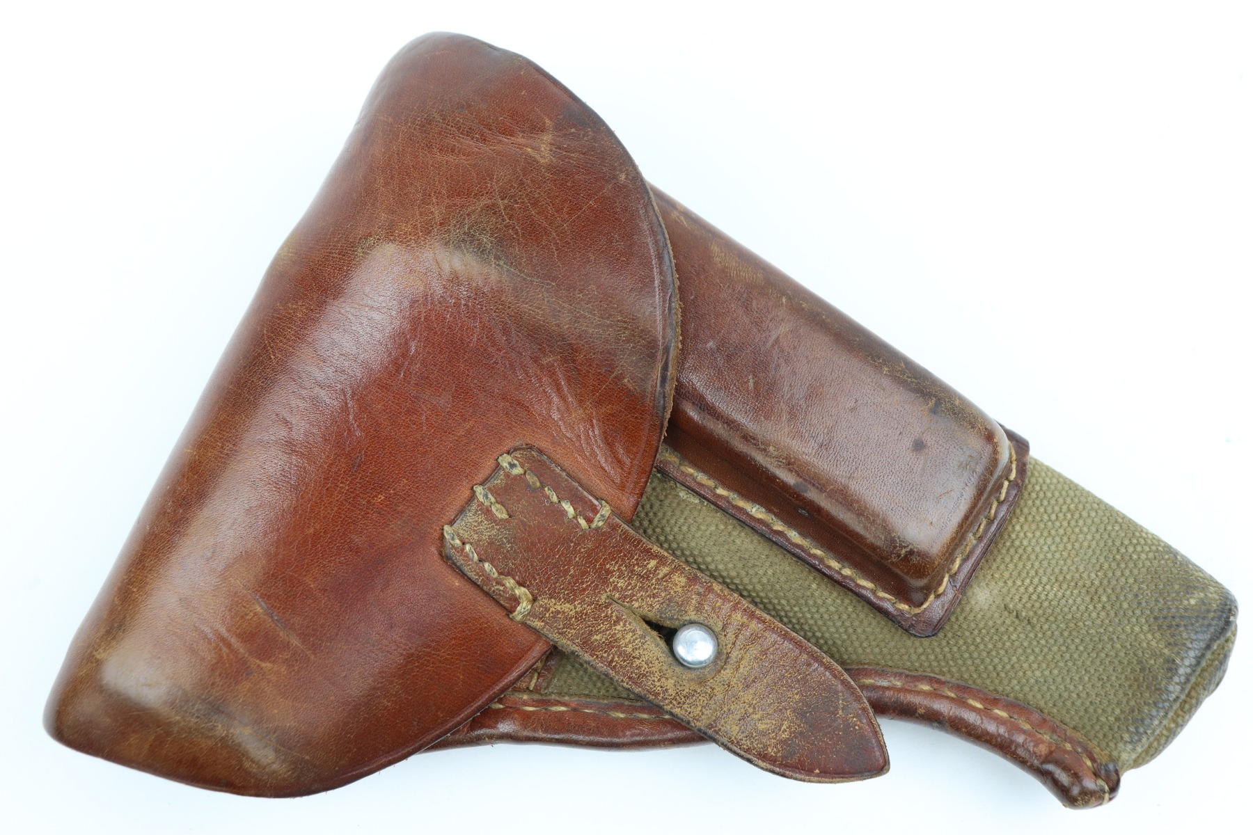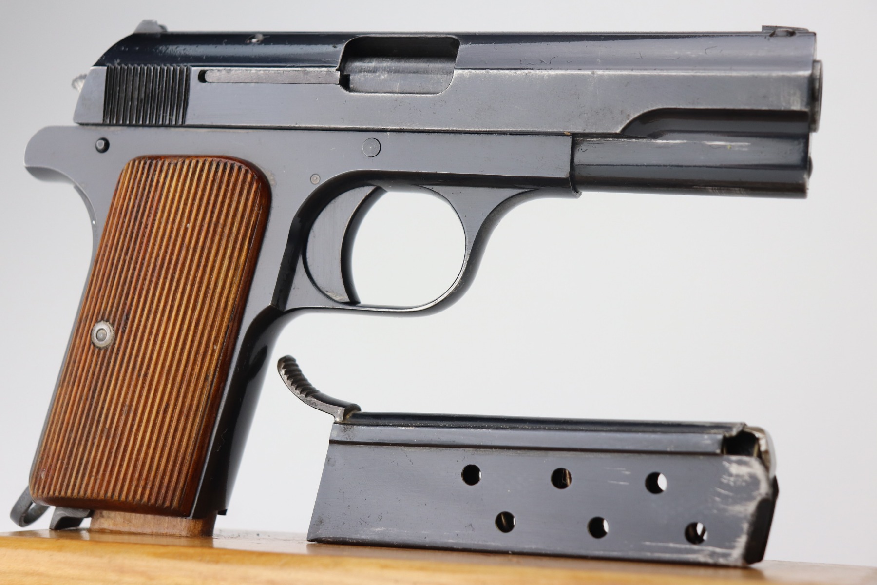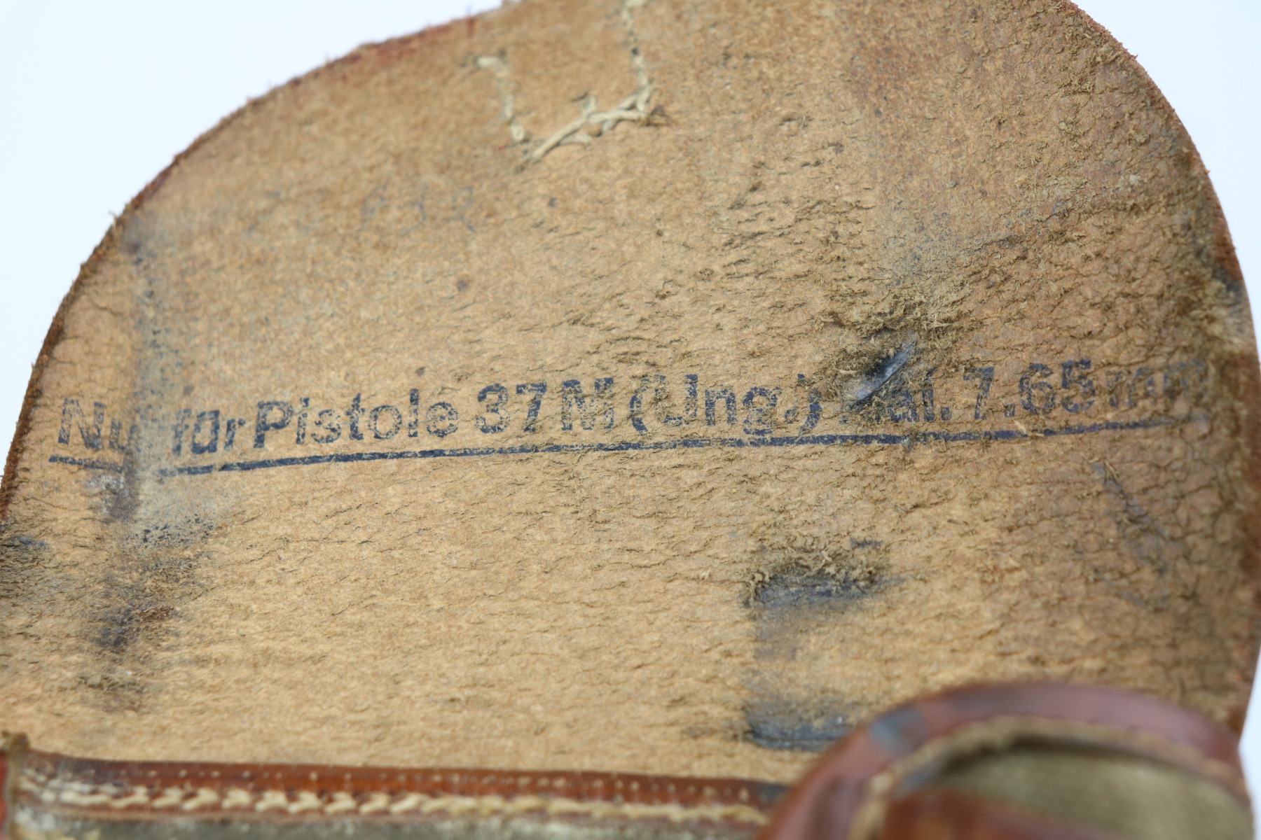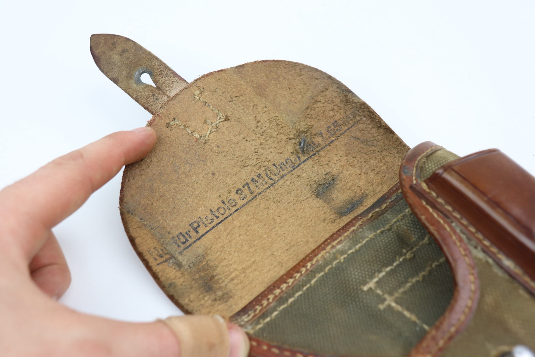 2/25/21 – This is an excellent example of a Femaru M37 Rig issued to the Luftwaffe in 1941. It comes with a 1941-dated Luftwaffe-marked holster and two matching magazines. It is all matching and has the proper military proofs. It has retained about 94-95% of its original finish. There is minor wear around the high edges and top edges of the slide. One area of wear on the underside of the slide. Excellent original grips. Minty bore.